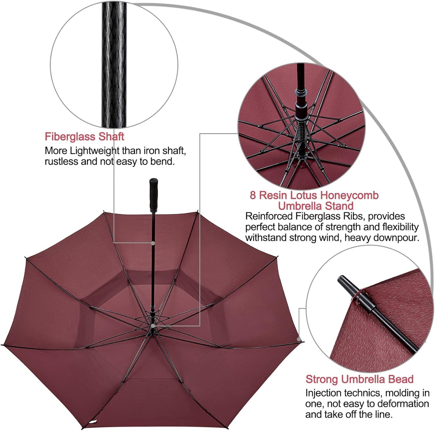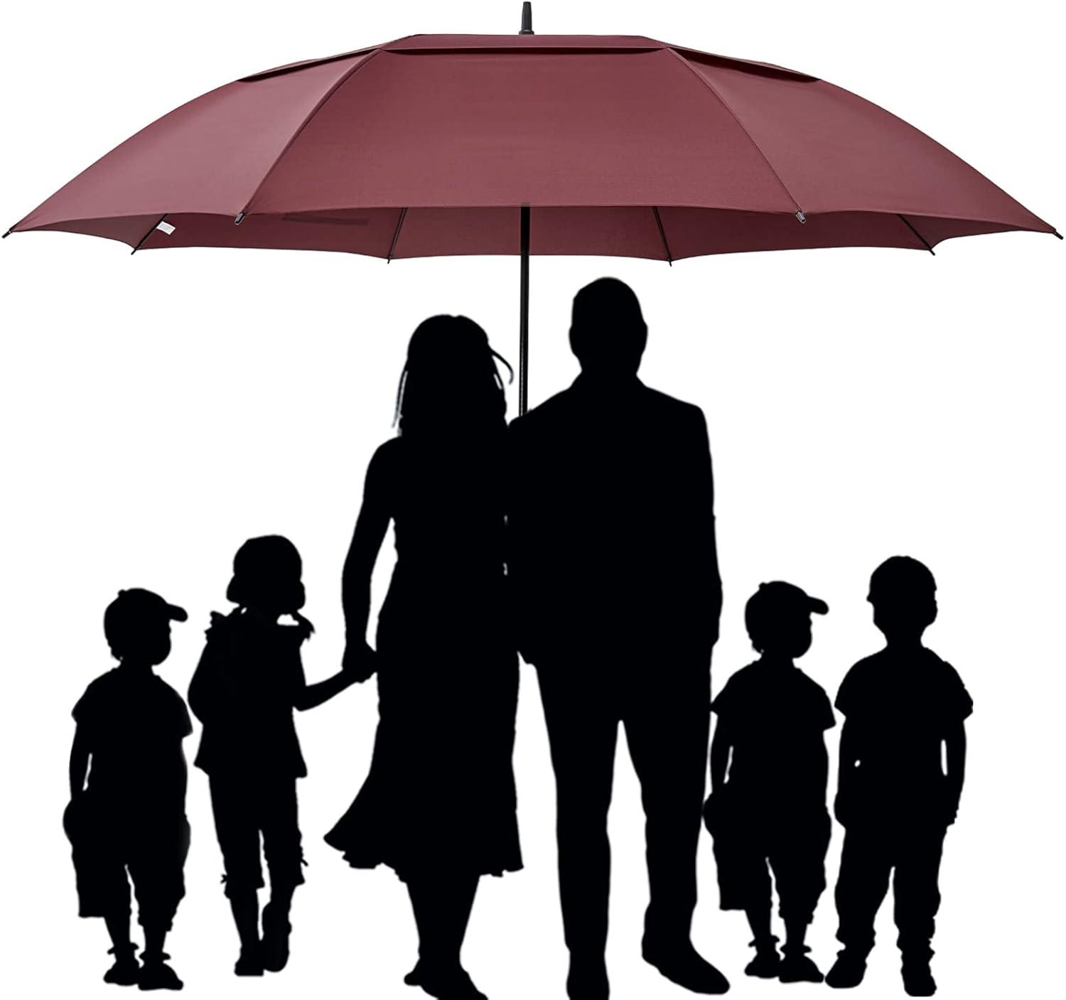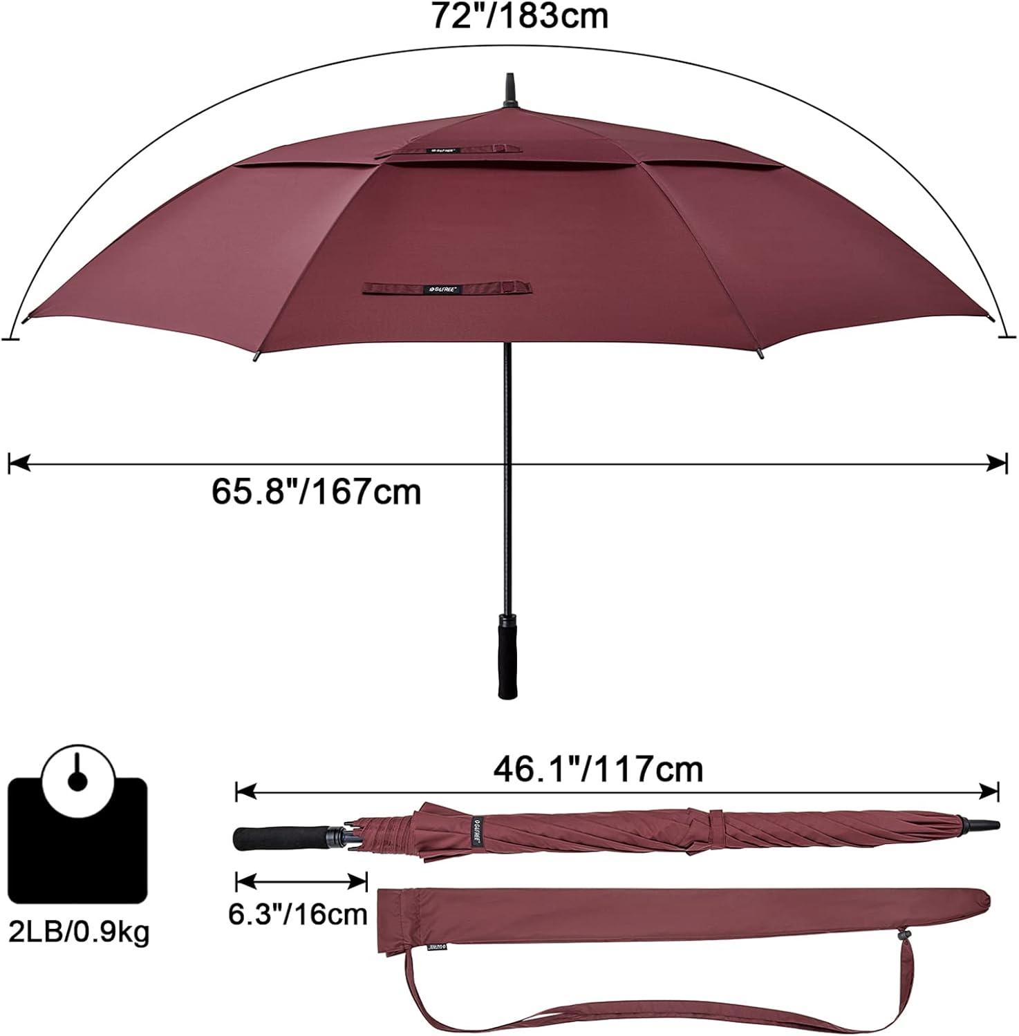 [72inch huge golf umbrellas] The oversized umbrella has a 72-inch arc and a 65-inch diameter. Bigger than 62 inch/68inch normal umbrella, amazing coverage. This giant umbrella can shelter 4~6 people standing tightly together. Perfect for a 6' tall man, a single couple, a family of 4 or two men and two ladies, keep you pretty dry.