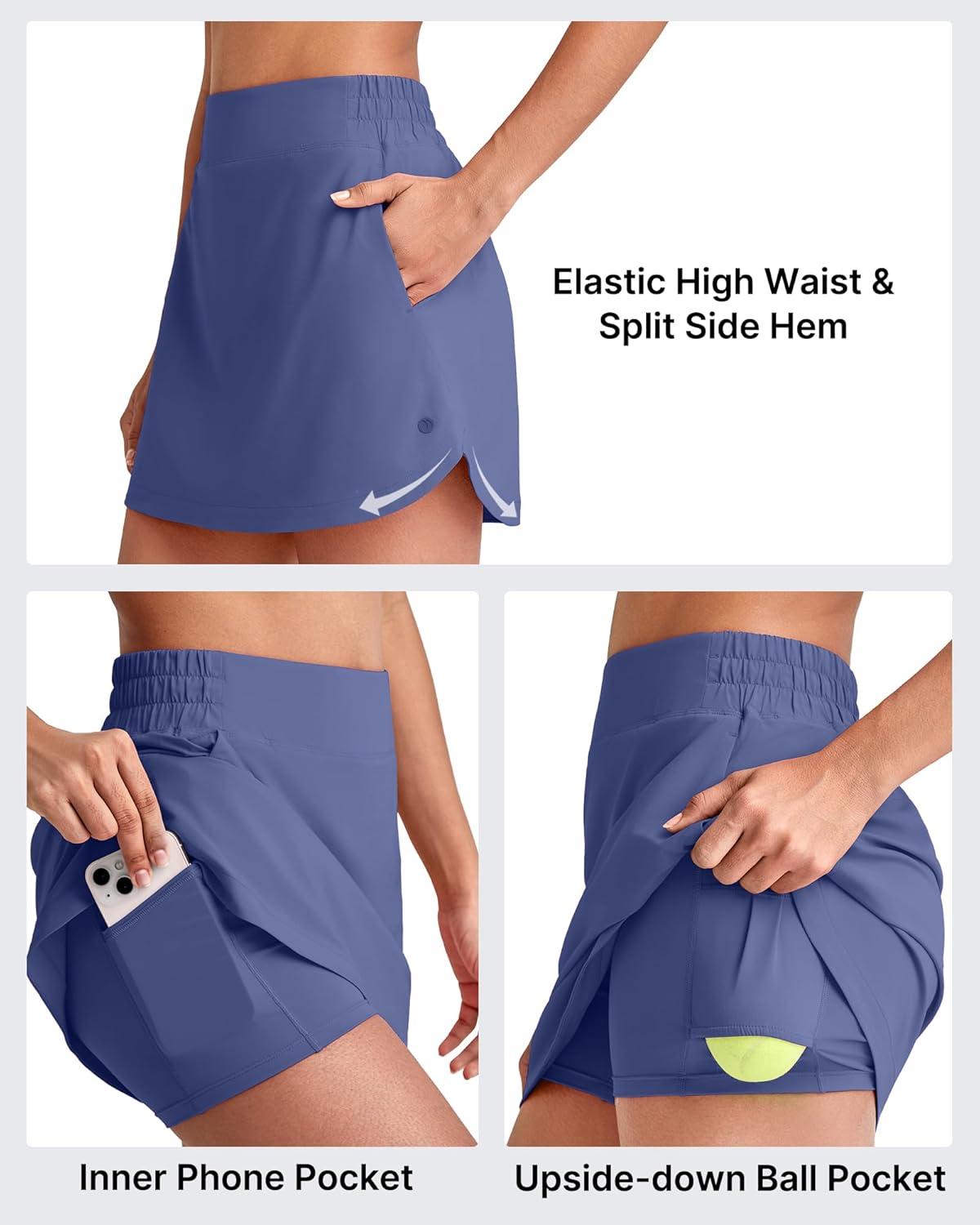 G4Free Chillwhisp High Waisted Tennis Skirts for Women – 15″ Flowy Golf Skort Athletic Inner Shorts with 4 Pockets(Dusky Purple)