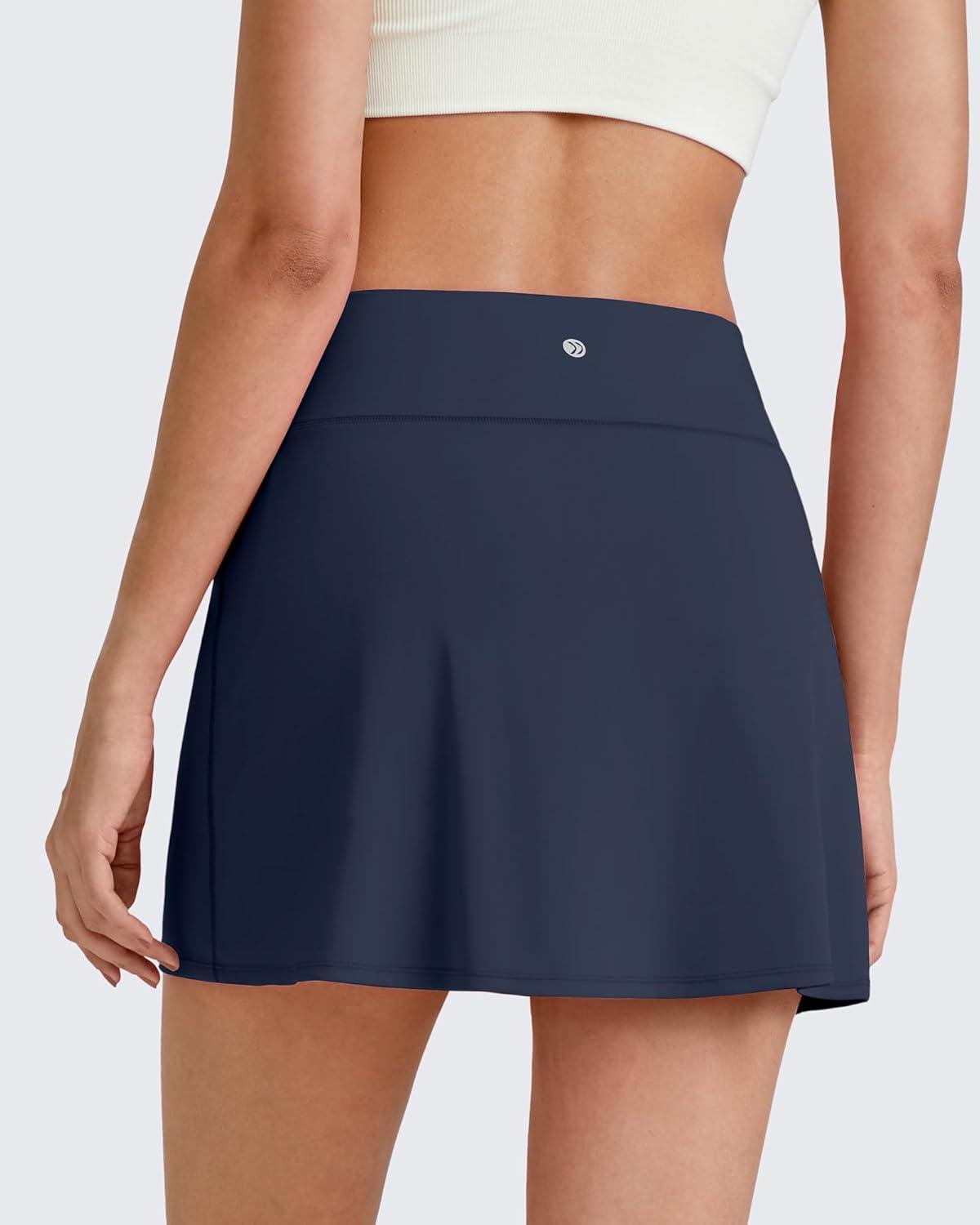 G4Free BareFeel 15" Golf Skirts for Women High Waisted A Line Casual Athletic Skorts Inner Shorts with 2 Pockets(Dark Navy)