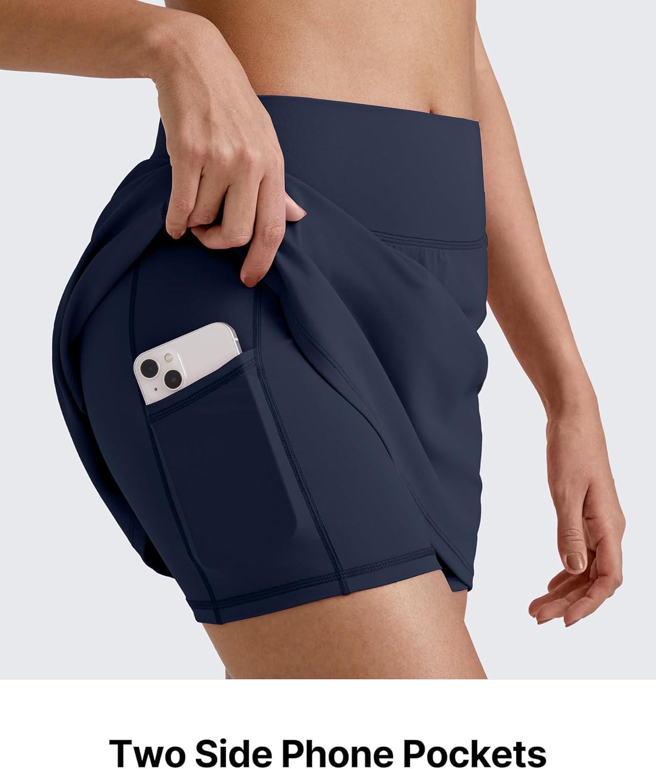 G4Free BareFeel 15″ Golf Skirts for Women High Waisted A Line Casual Athletic Skorts Inner Shorts with 2 Pockets(Dark Navy)