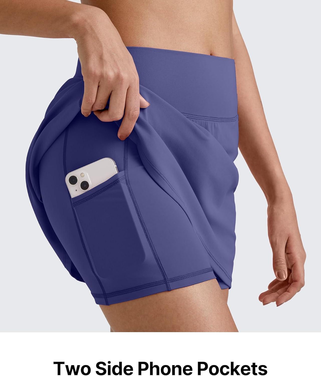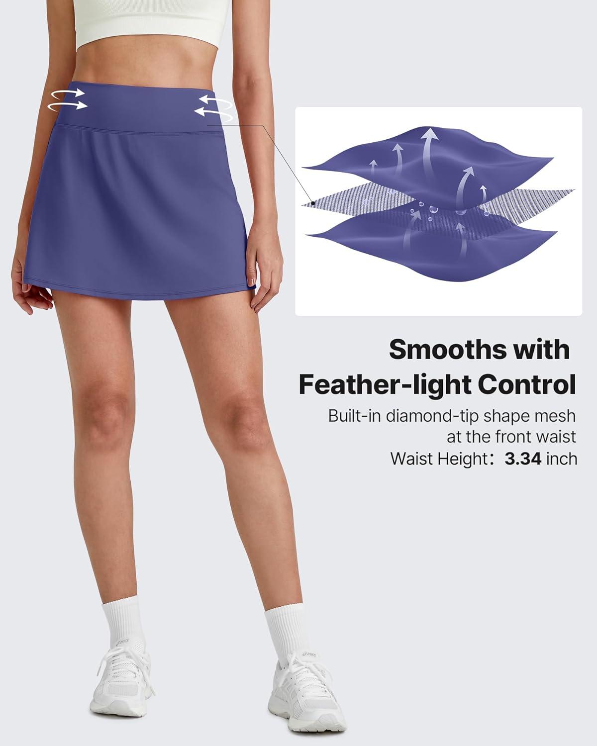 G4Free BareFeel 15″ Golf Skirts for Women High Waisted A Line Casual Athletic Skorts Inner Shorts with 2 Pockets(Dusky Purple)