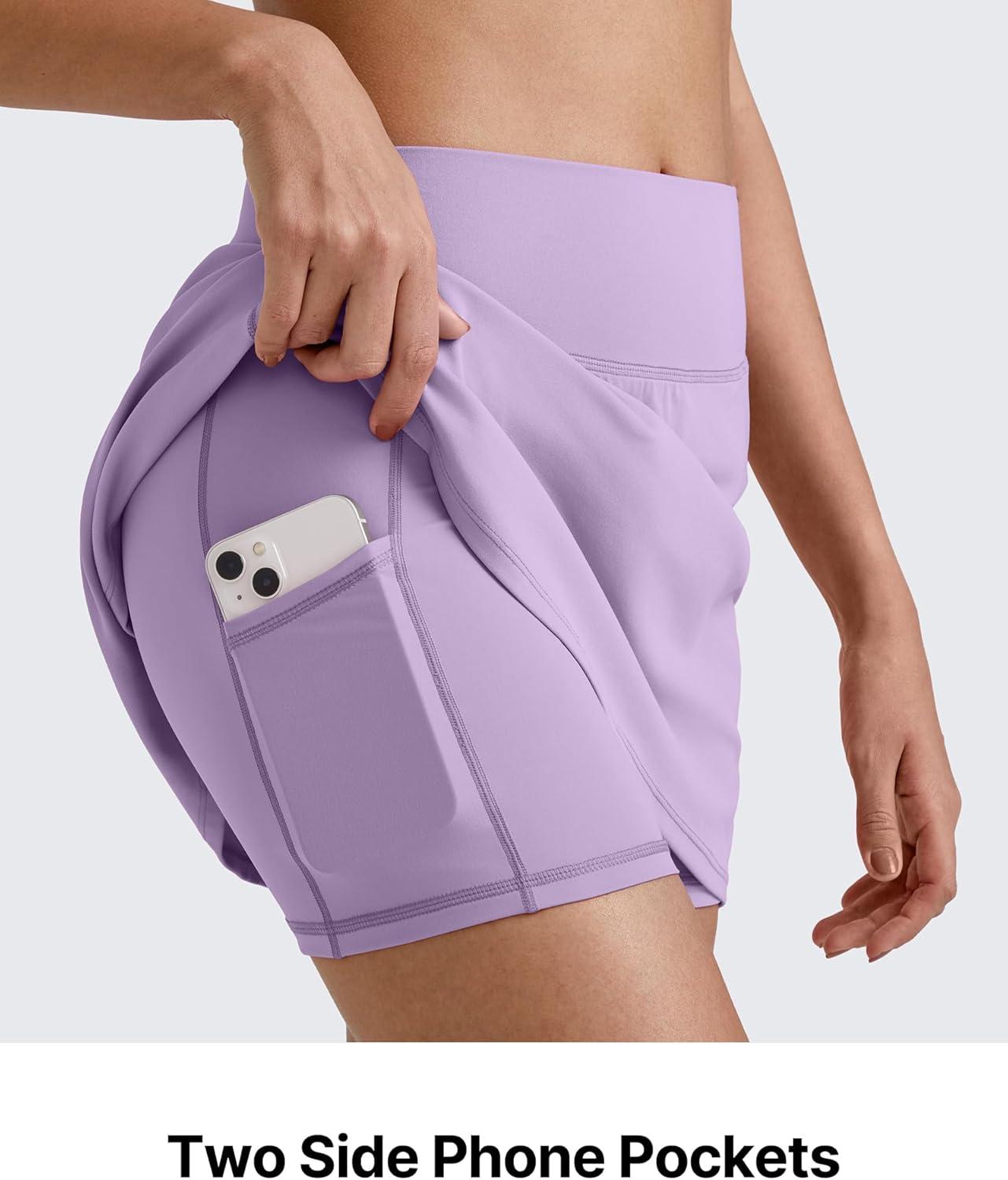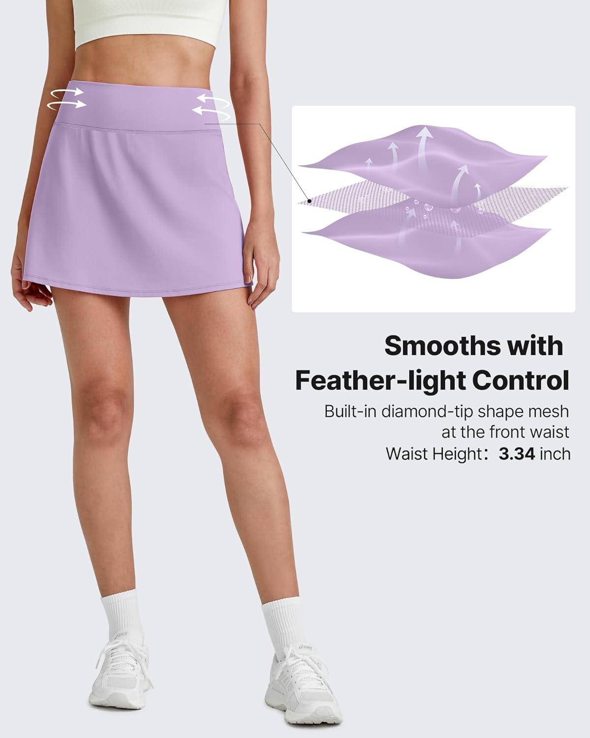 G4Free BareFeel 15″ Golf Skirts for Women High Waisted A Line Casual Athletic Skorts Inner Shorts with 2 Pockets(Light Purple)