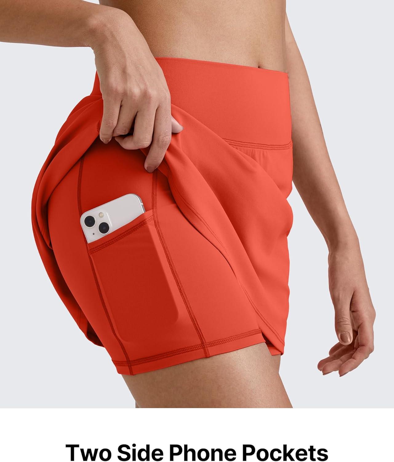 G4Free BareFeel 15″ Golf Skirts for Women High Waisted A Line Casual Athletic Skorts Inner Shorts with 2 Pockets(Rust Orange)