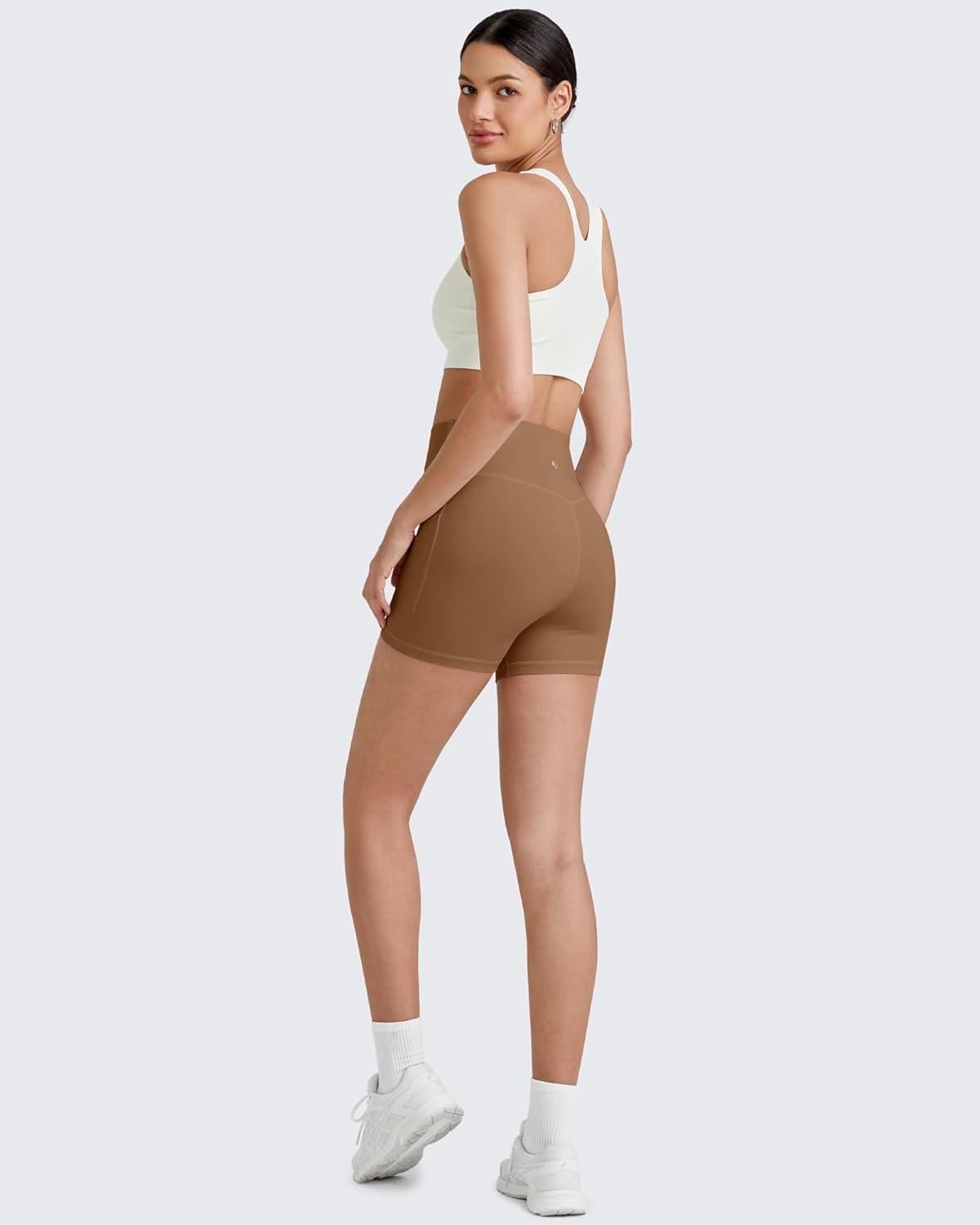 G4Free Barefeel Biker Shorts for Women with Pockets High Waisted Workout Athletic Gym Legging Shorts 4"/6"(Dark Coffee)