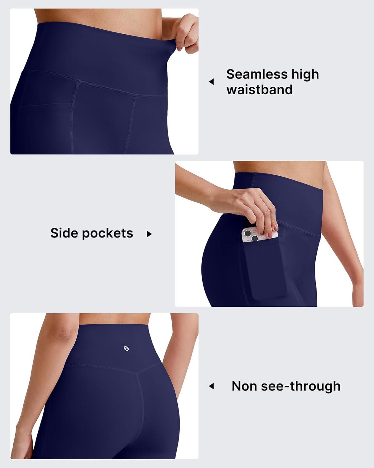G4Free BareFeel Biker Shorts for Women with Pockets High Waisted Workout Athletic Gym Legging Shorts 4″/6″(Dark Navy)