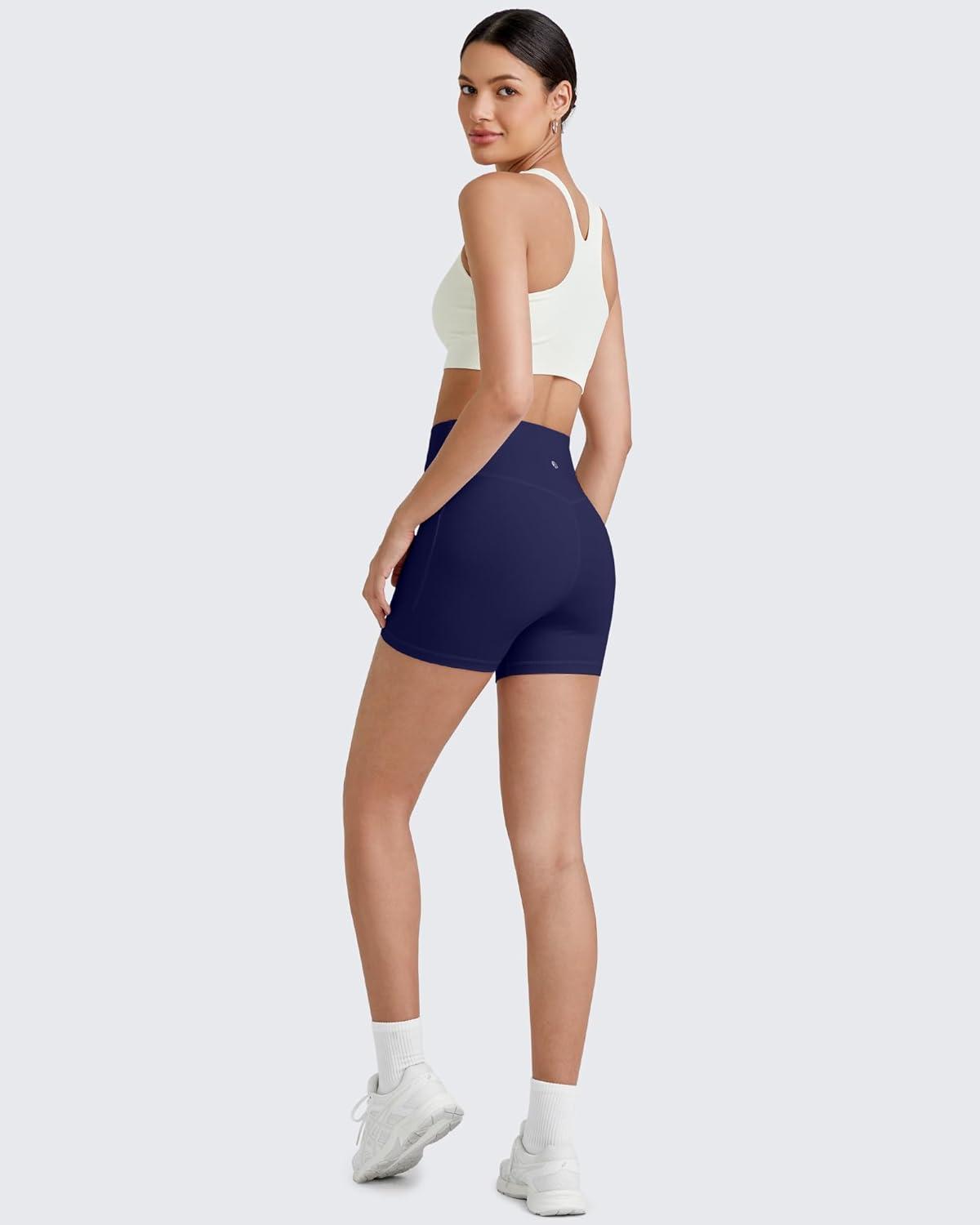 G4Free BareFeel Biker Shorts for Women with Pockets High Waisted Workout Athletic Gym Legging Shorts 4"/6"(Dark Navy)