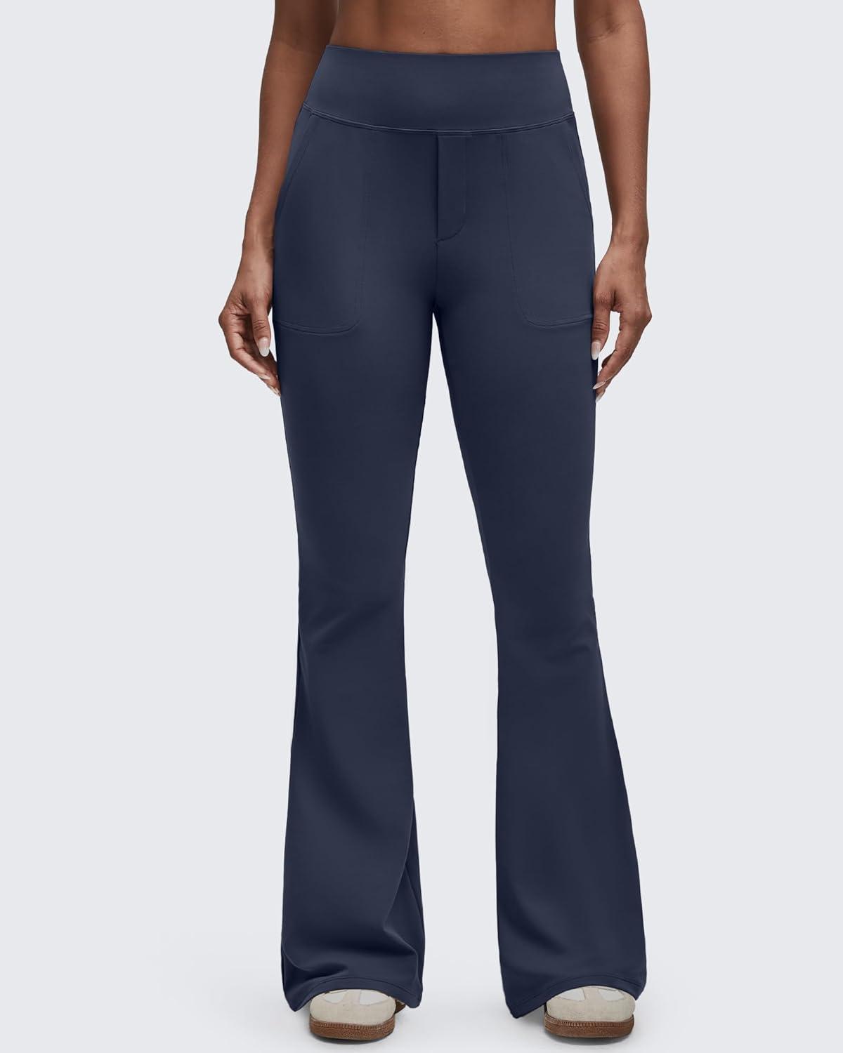imageG4Free BareFeel Flare Yoga Pants Women High Waisted Bootcut Leggings with Pockets Dress Work Pant PetiteRegularTallDark Navy