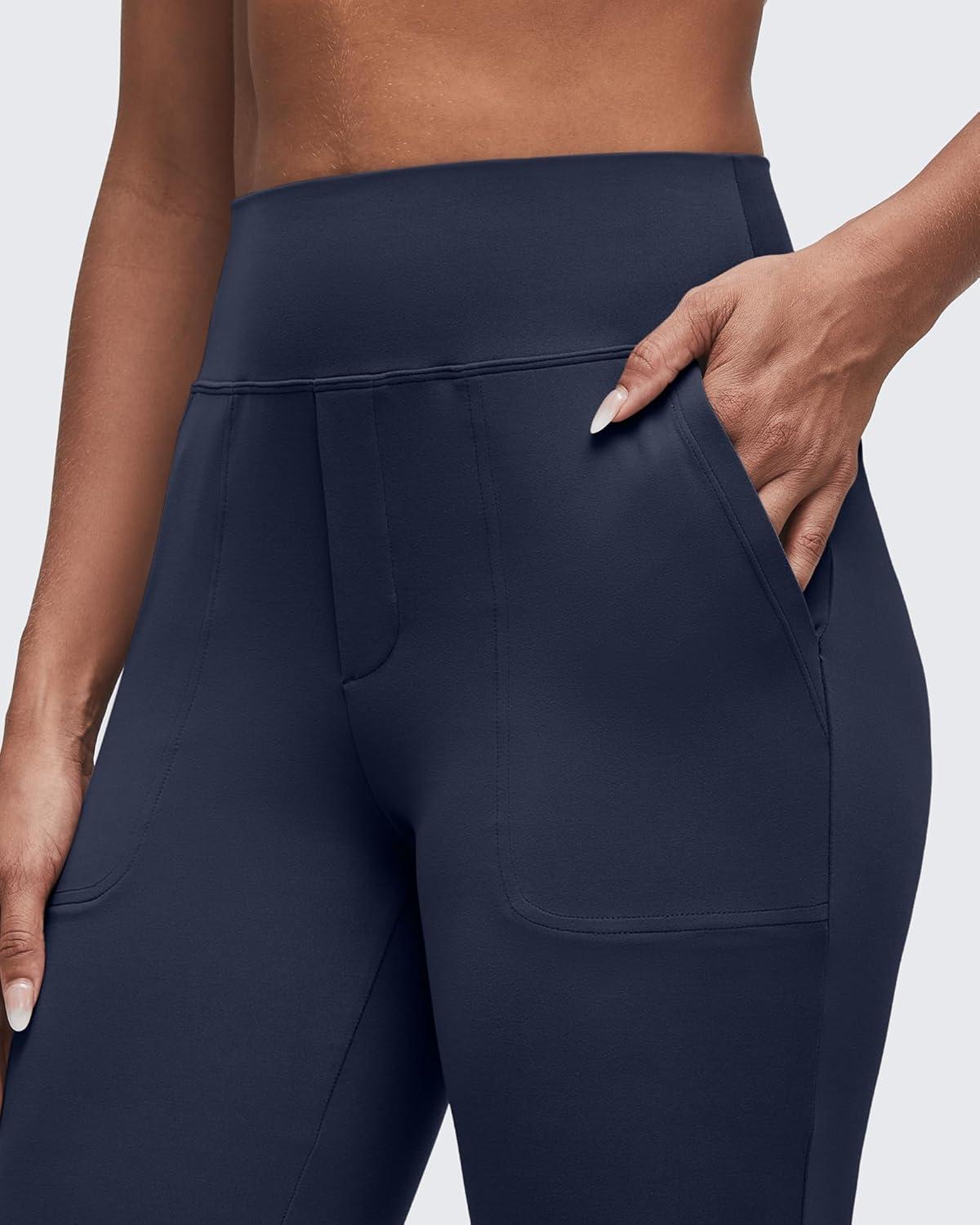 G4Free BareFeel Flare Yoga Pants Women High Waisted Bootcut Leggings with Pockets Dress Work Pant Petite/Regular/Tall(Dark Navy)