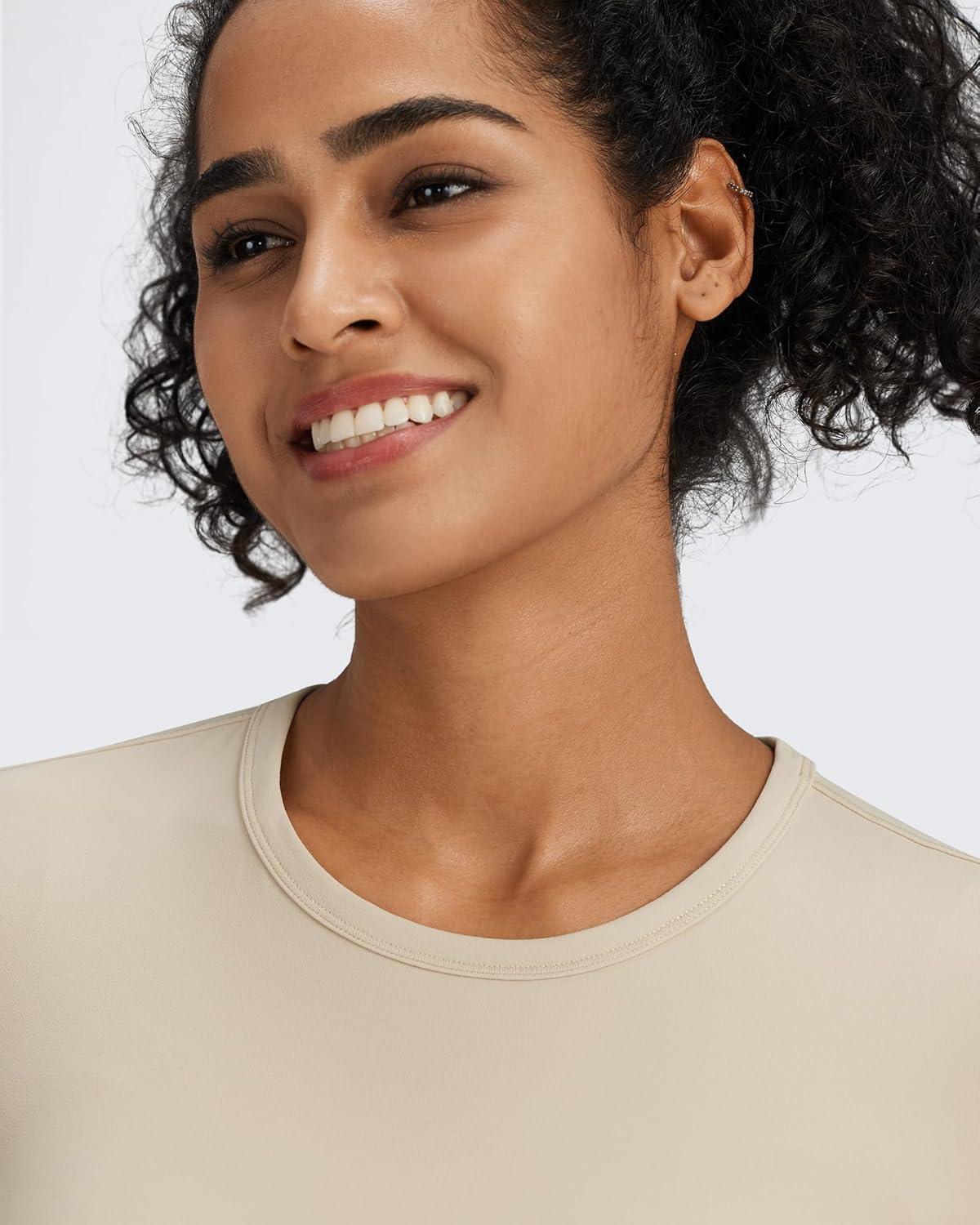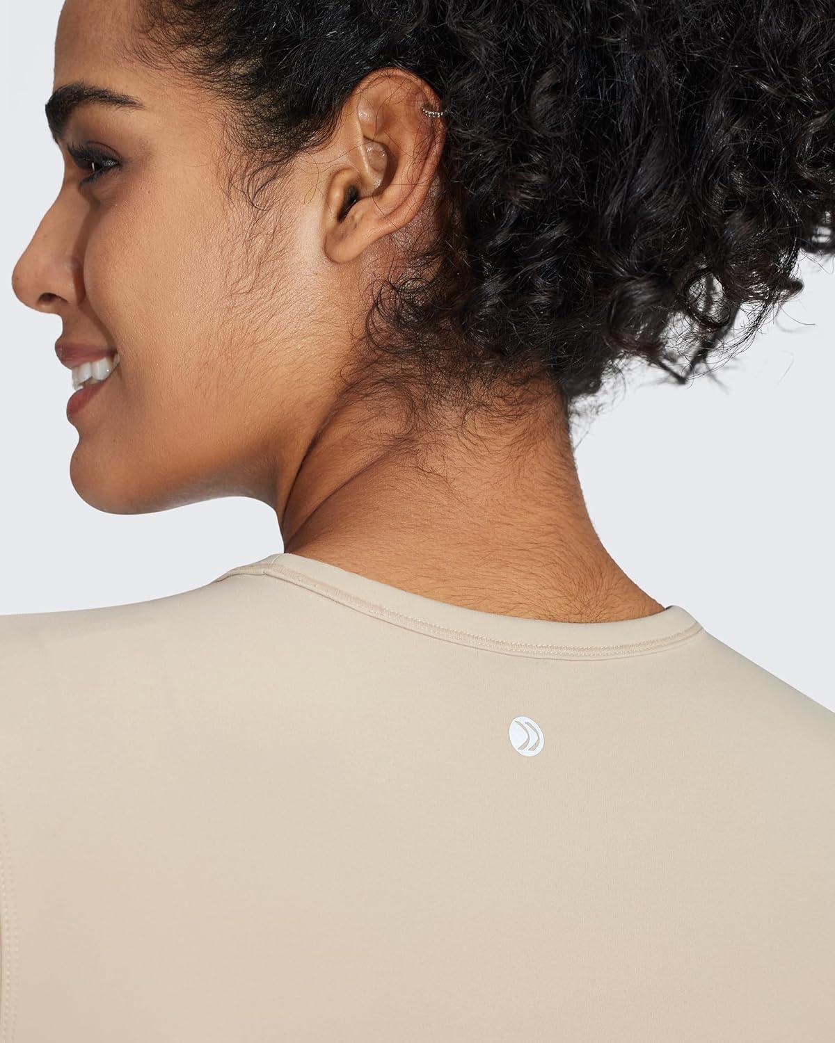G4Free BareFeel Long Sleeve Workout Tops for Women Slim Athletic Gym Yoga Shirt Cropped Basic Tight Shirt(Khaki)