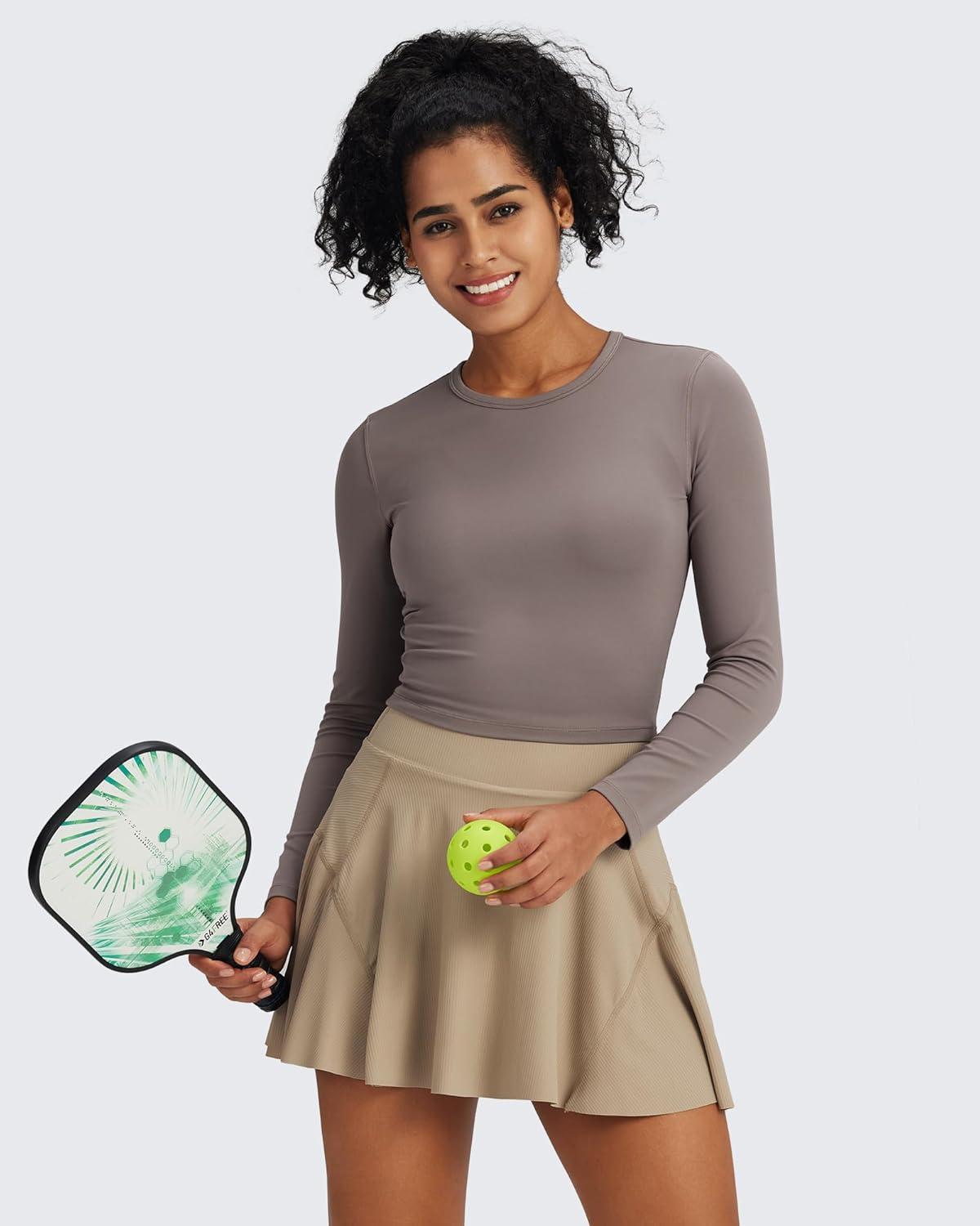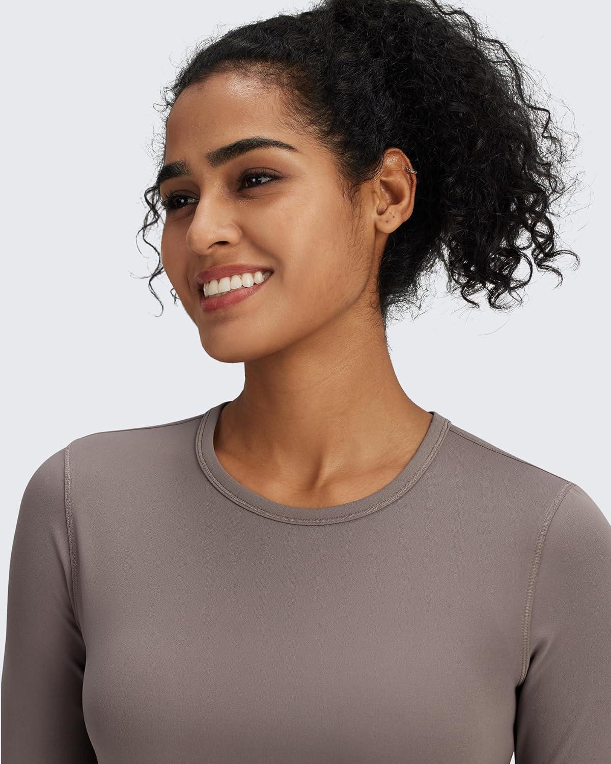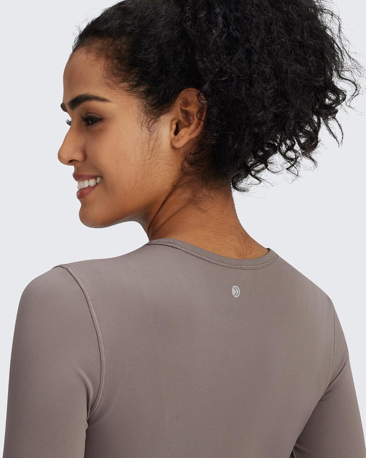 G4Free BareFeel Long Sleeve Workout Tops for Women Slim Athletic Gym Yoga Shirt Cropped Basic Tight Shirt(Taupe)