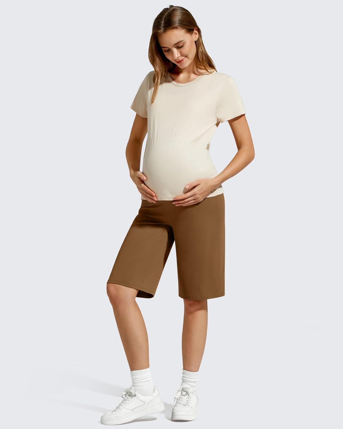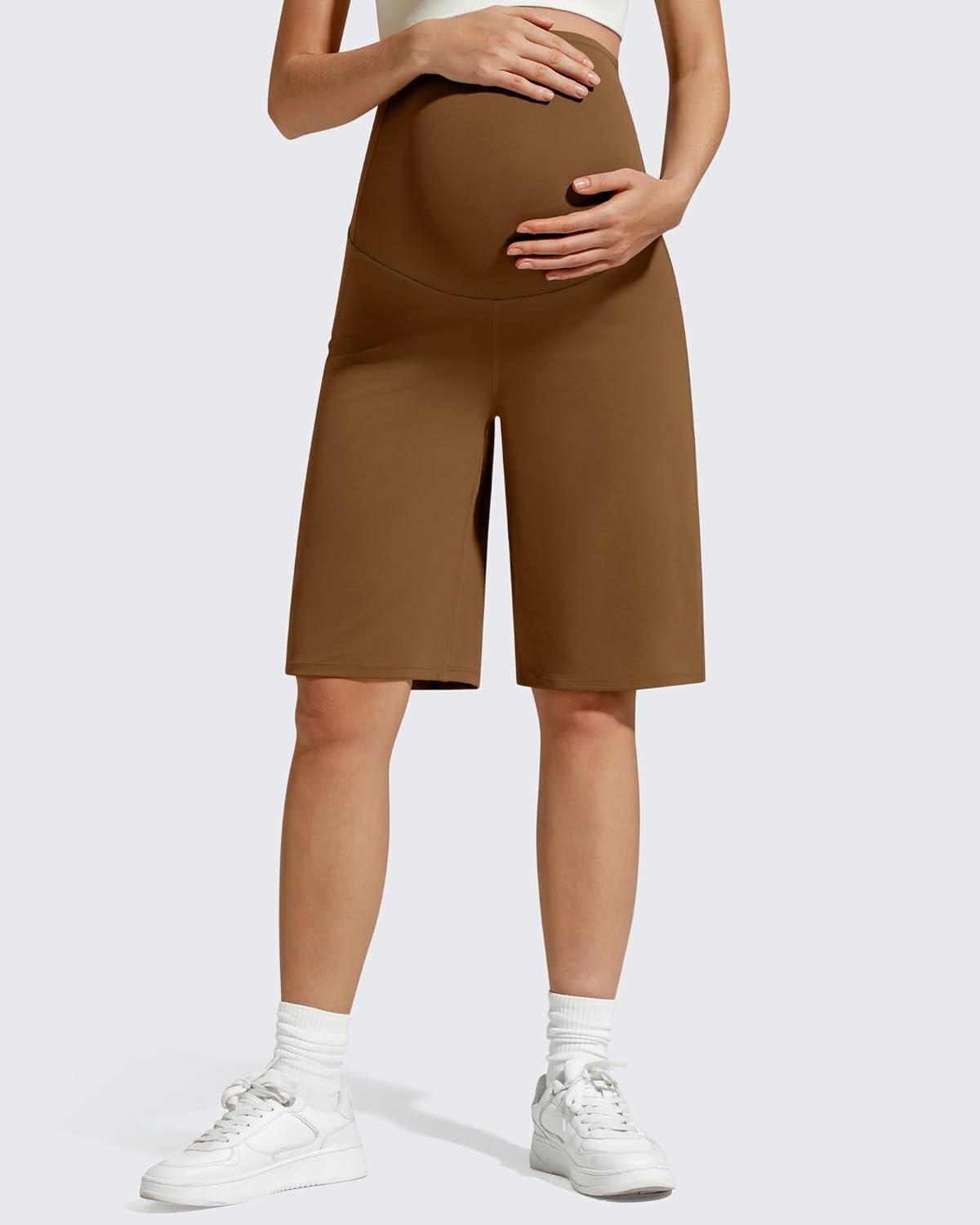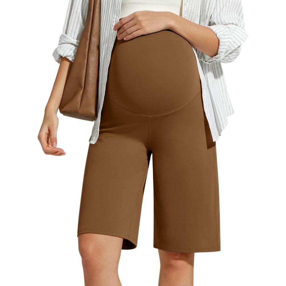 G4Free BareFeel Maternity Bermuda Shorts Over The Belly Loose Wide Leg Pregnancy Workout Shorts Casual Work(Dark Coffee)