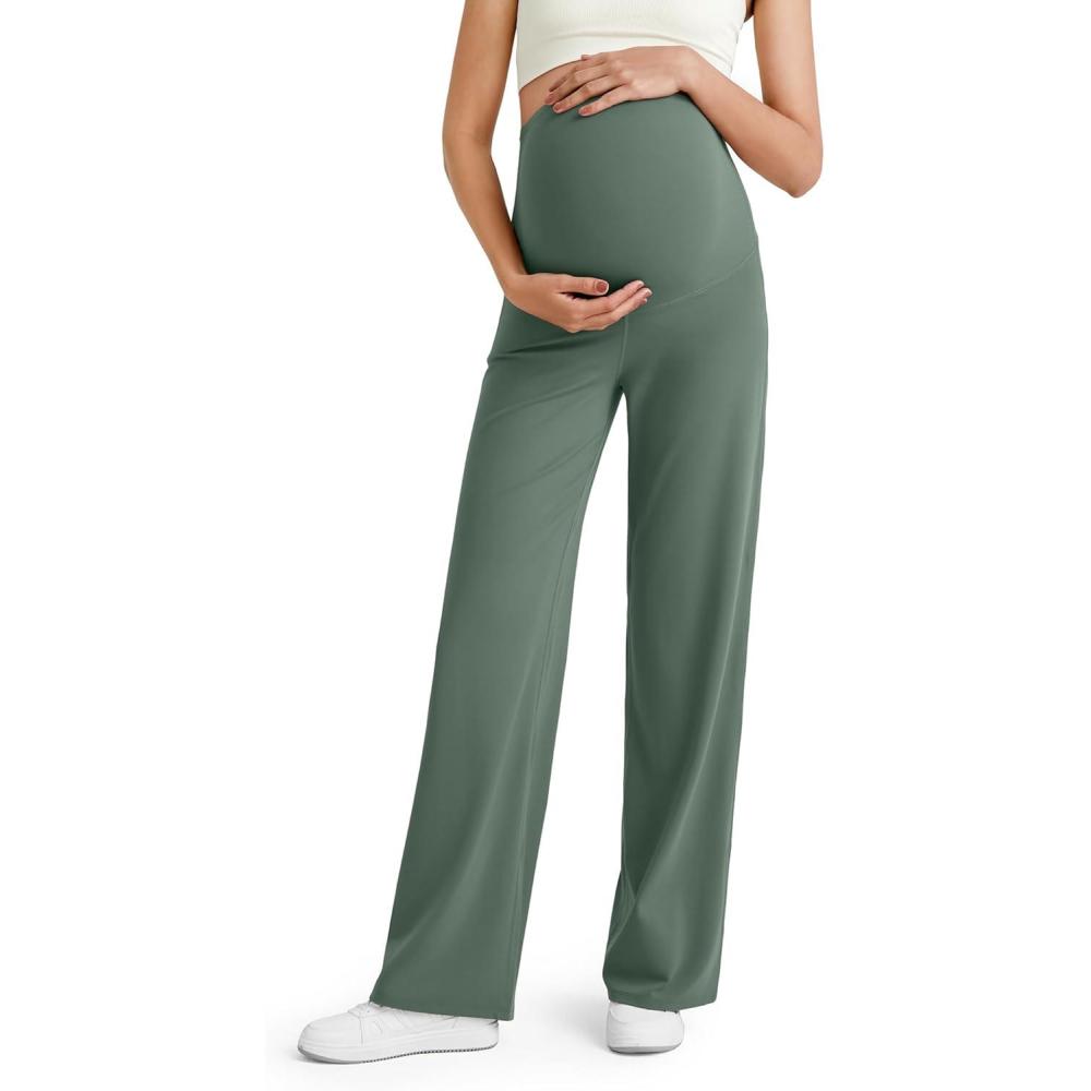 G4Free BareFeel Maternity Dress Yoga Pants Over The Belly Stretchy Work Slack Pregnancy Wide Leg Lounge Trousers(Gray Sage)