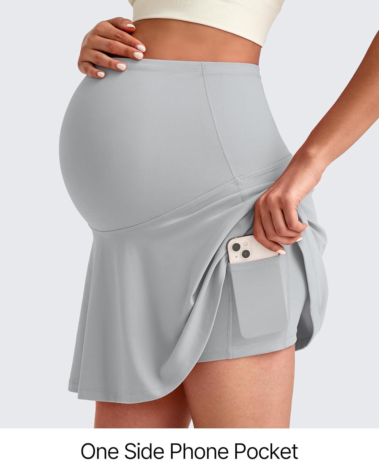 G4Free BareFeel Maternity Tennis Skirt with One Pocket Over The Belly Stretchy Pregnancy Workout Skorts Inner Shorts Golf(Grey)