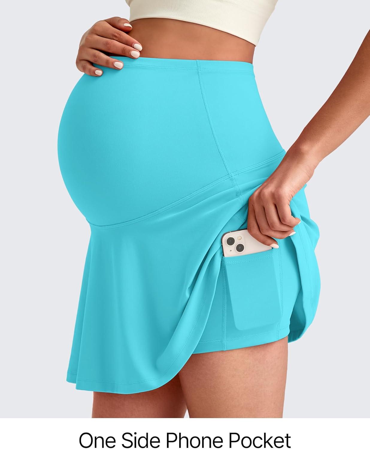 G4Free BareFeel Maternity Tennis Skirt with One Pocket Over The Belly Stretchy Pregnancy Workout Skorts Inner Shorts Golf(Sky Blue)