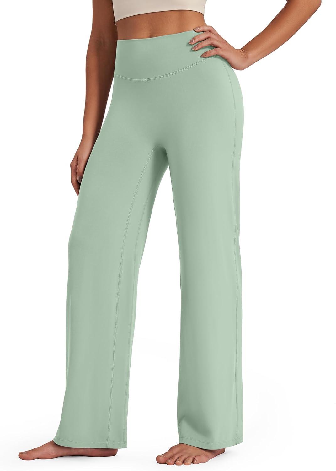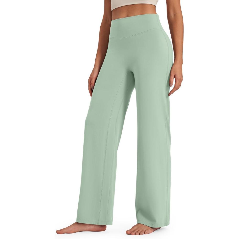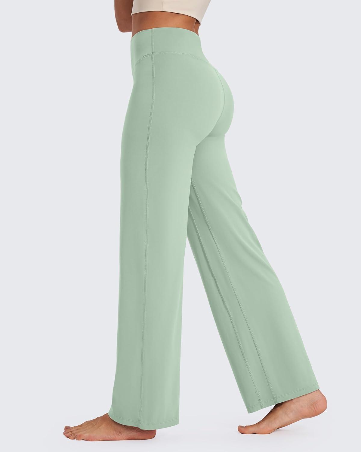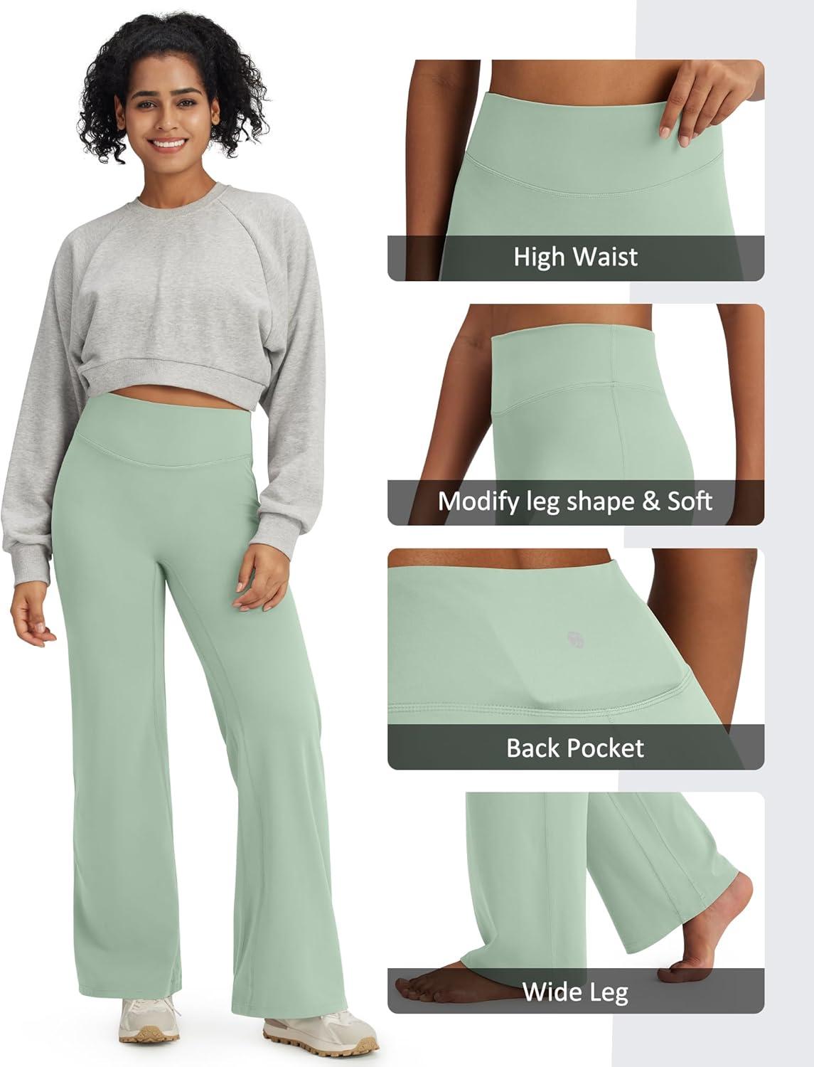 imageG4Free BareFeel No Front Seam Straight Leggings for Women High Waisted Wide Leg Yoga Pants 29quot31quot33quotBean Green