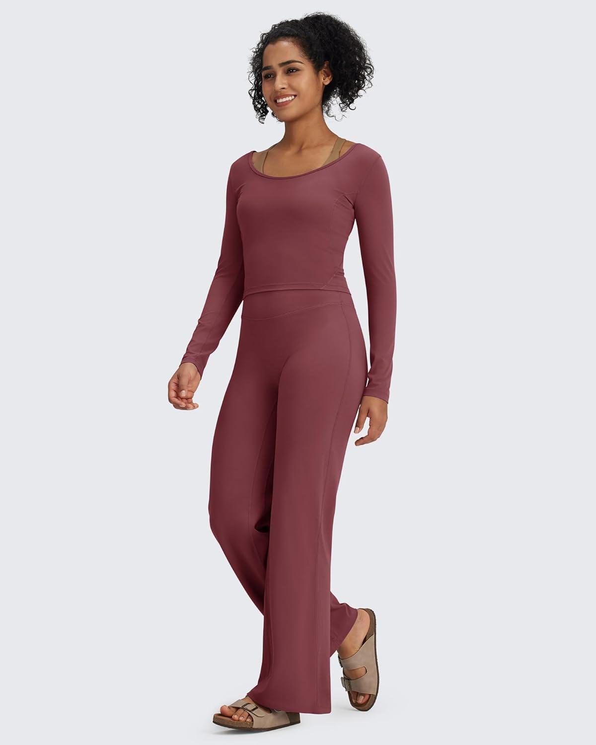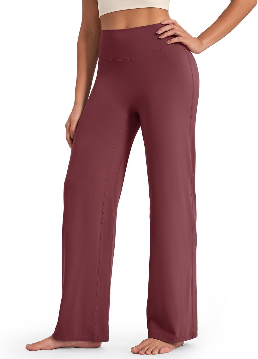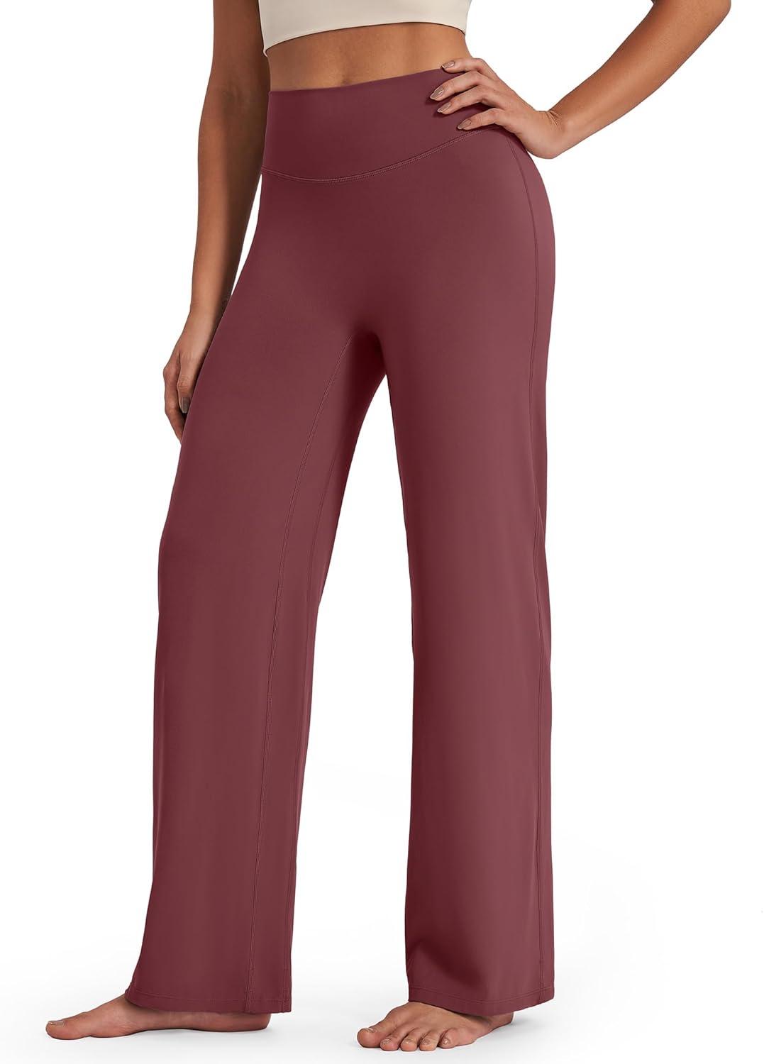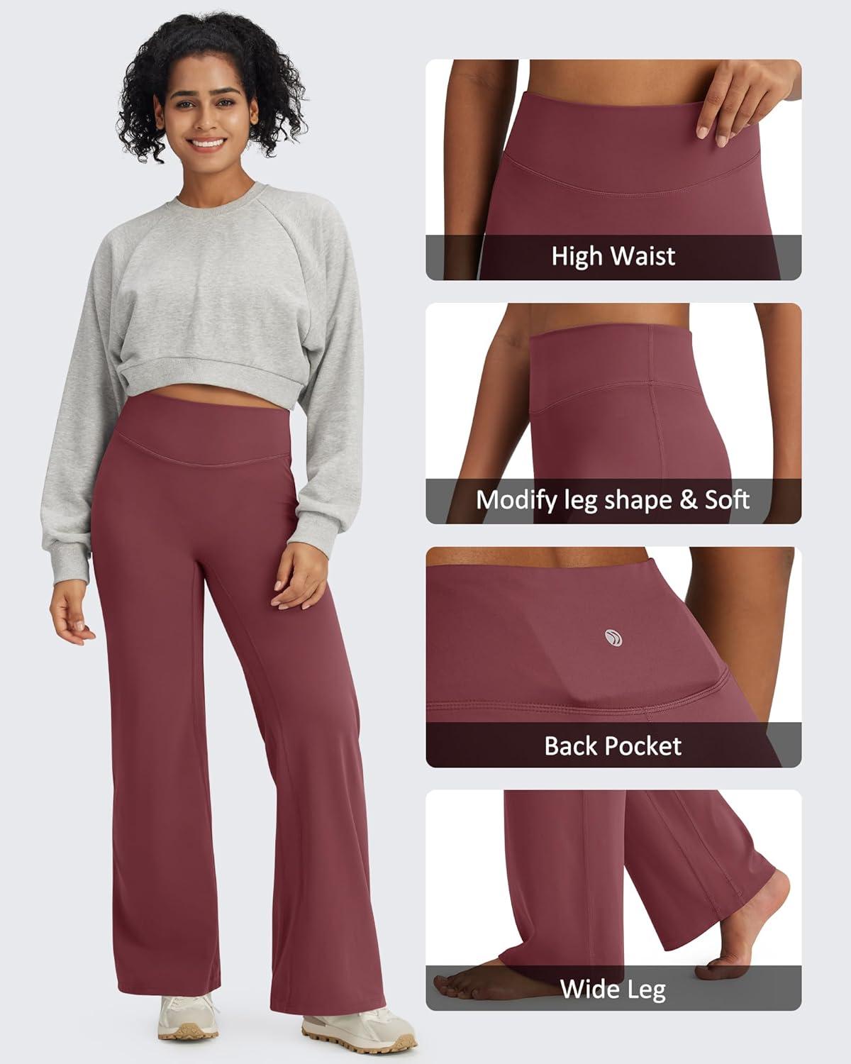 imageG4Free BareFeel No Front Seam Straight Leggings for Women High Waisted Wide Leg Yoga Pants 29quot31quot33quotDark Burgundy
