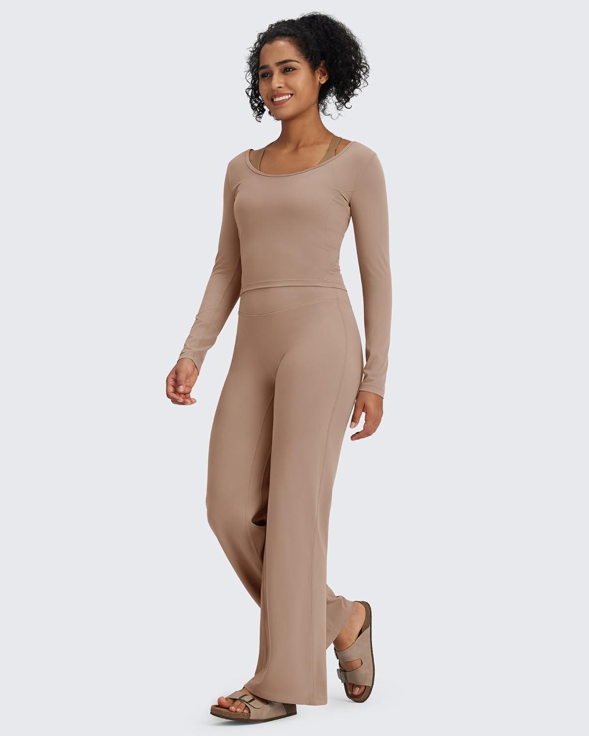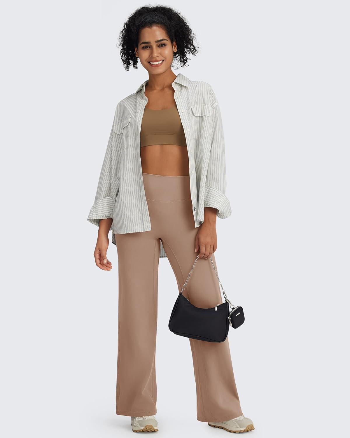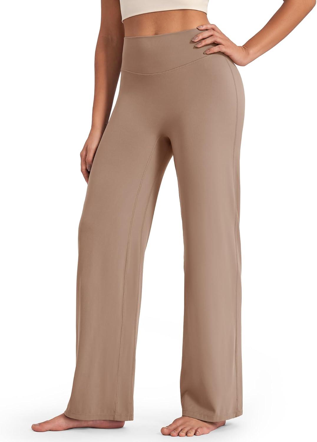 imageG4Free BareFeel No Front Seam Straight Leggings for Women High Waisted Wide Leg Yoga Pants 29quot31quot33quotToffee