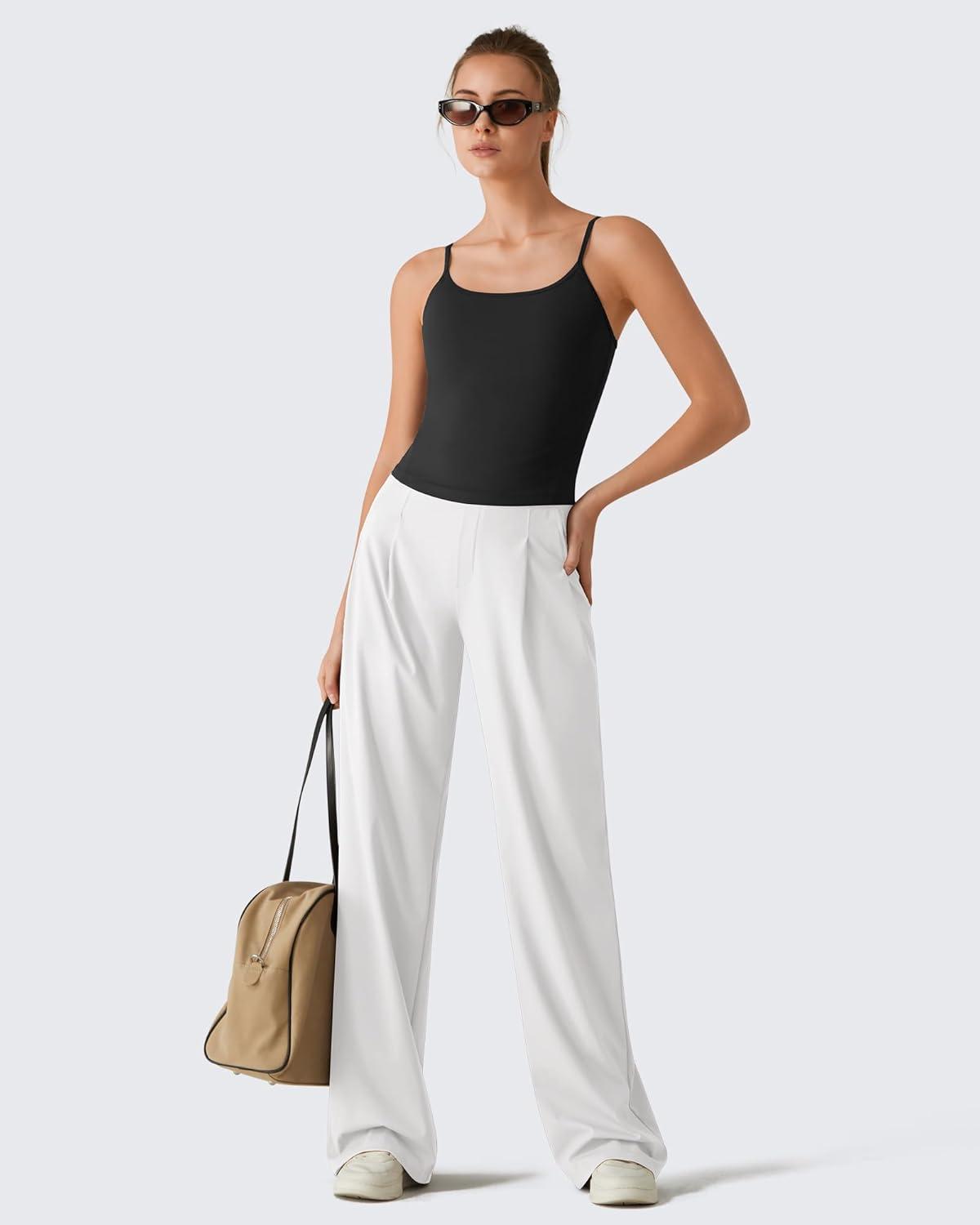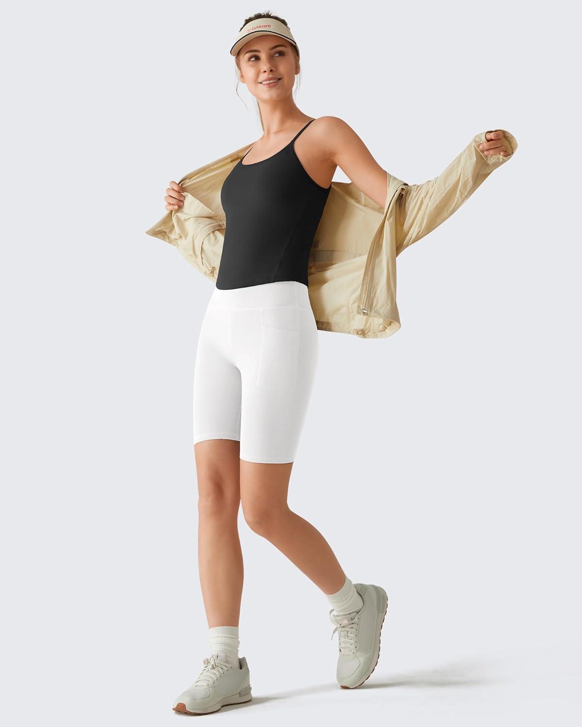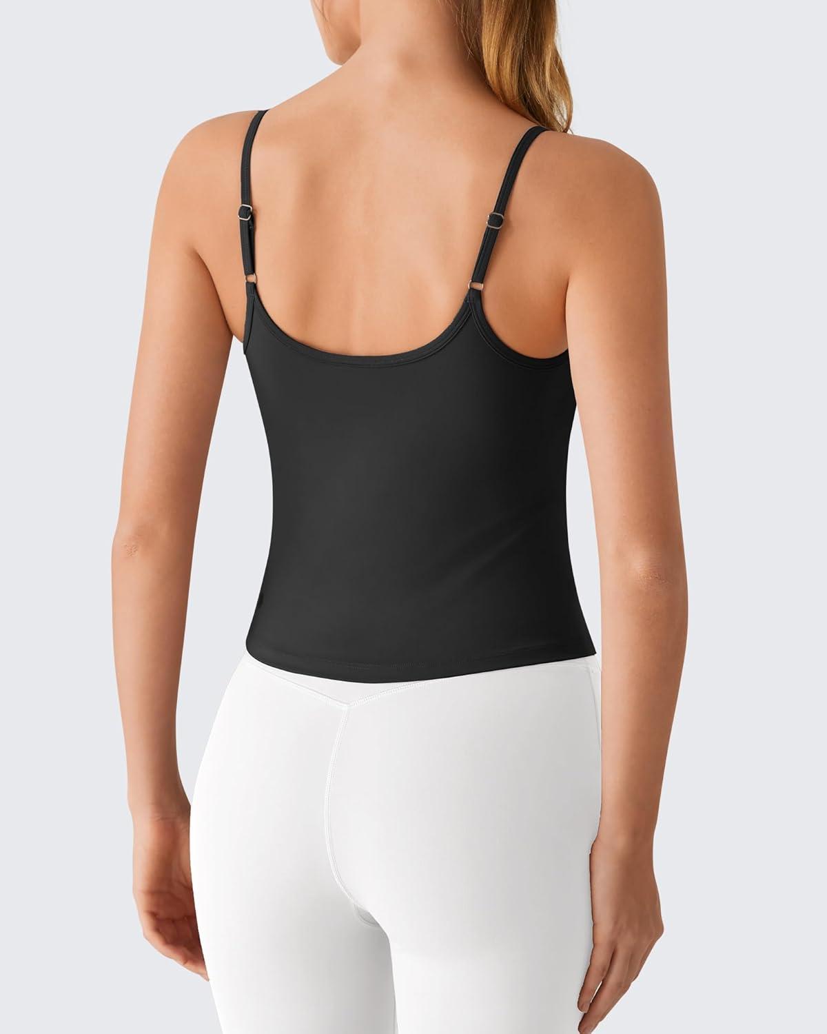 G4Free BareFeel Women's Built in Bra Camisole Tank Tops Removable Padded Spaghetti Strap Square Neck Casual Yoga Pilates Top(Black)