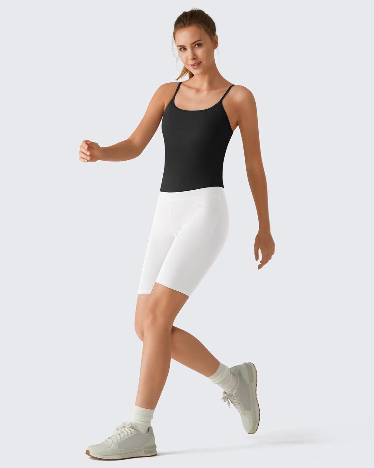 G4Free BareFeel Women’s Built in Bra Camisole Tank Tops Removable Padded Spaghetti Strap Square Neck Casual Yoga Pilates Top(Black)