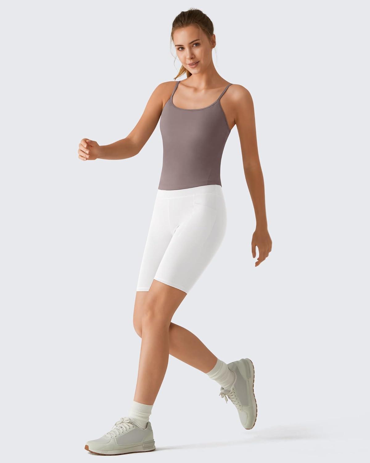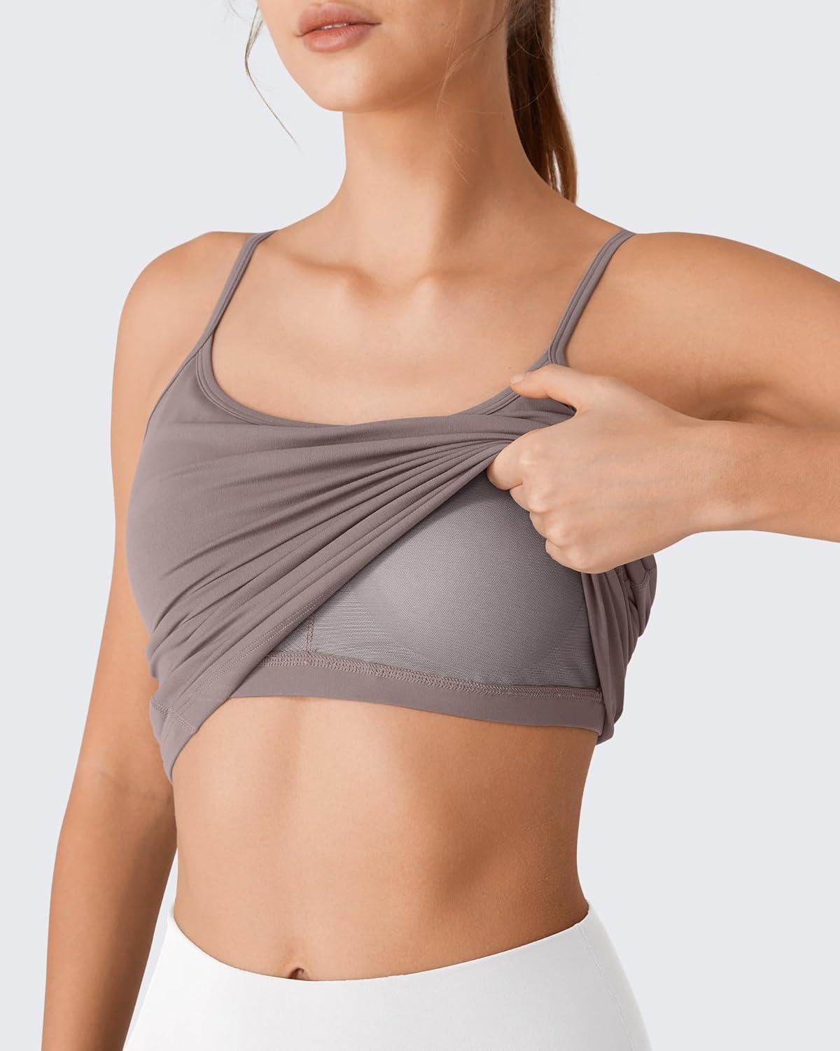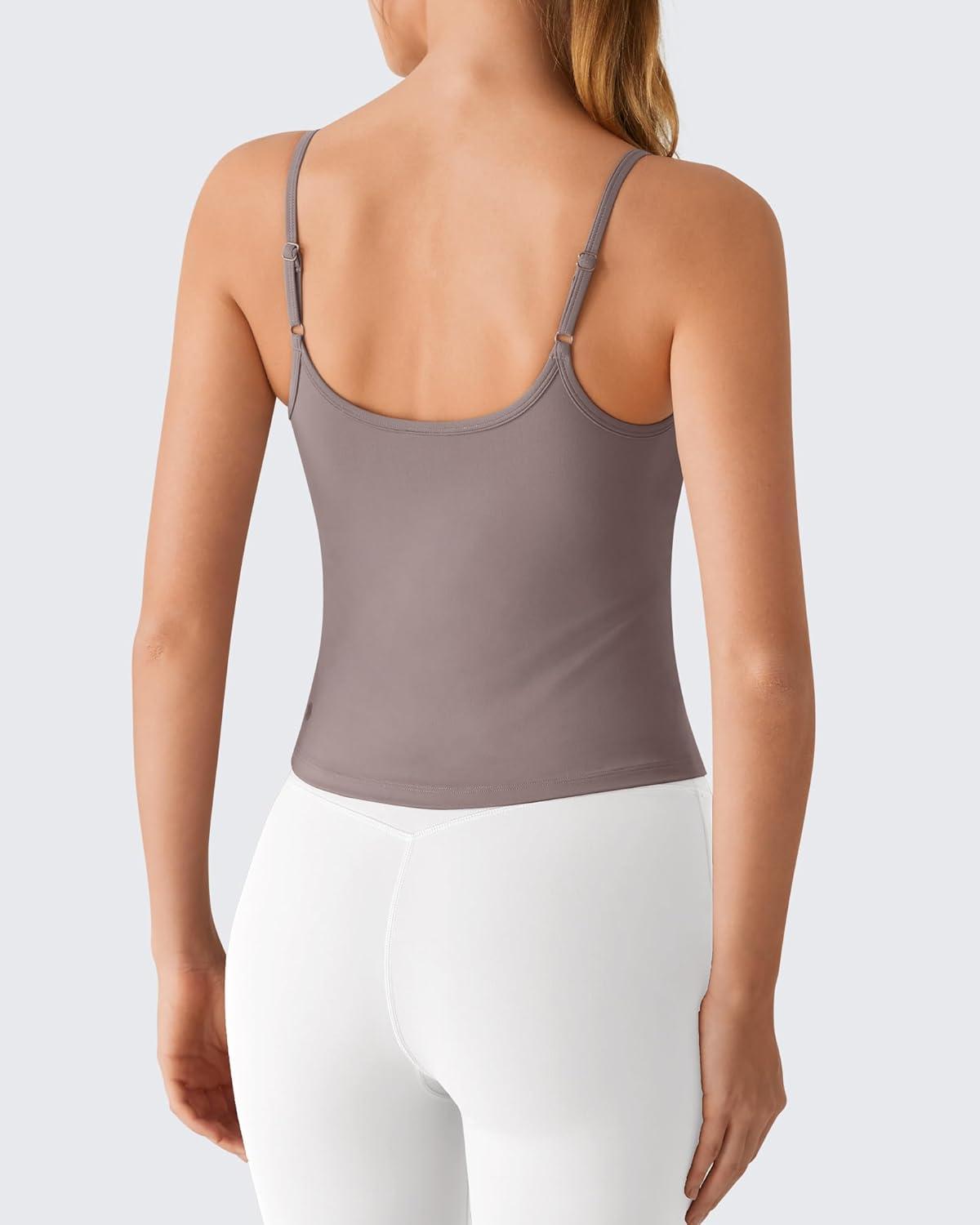G4Free BareFeel Women’s Built in Bra Camisole Tank Tops Removable Padded Spaghetti Strap Square Neck Casual Yoga Pilates Top(Taupe)