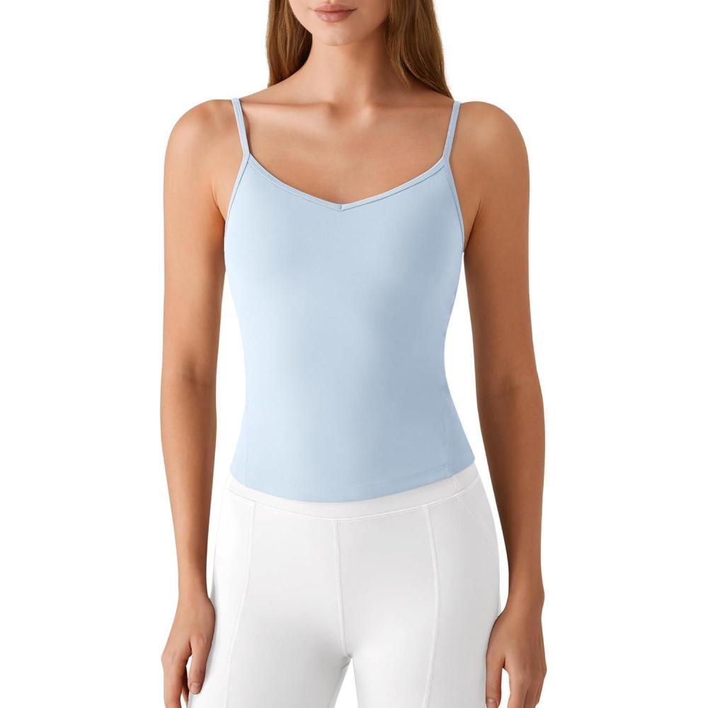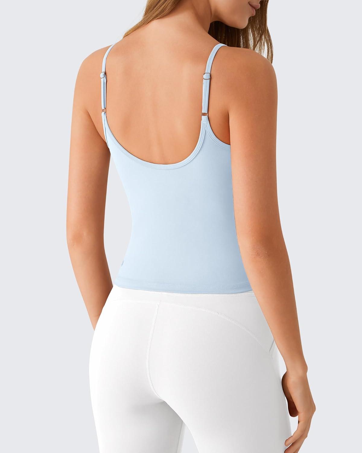 G4Free BareFeel Women's Camisole with Built in Bra Removable Padded Yoga Pilates Tank Tops Spaghetti Straps V Neck Camisoles(Light Denim)
