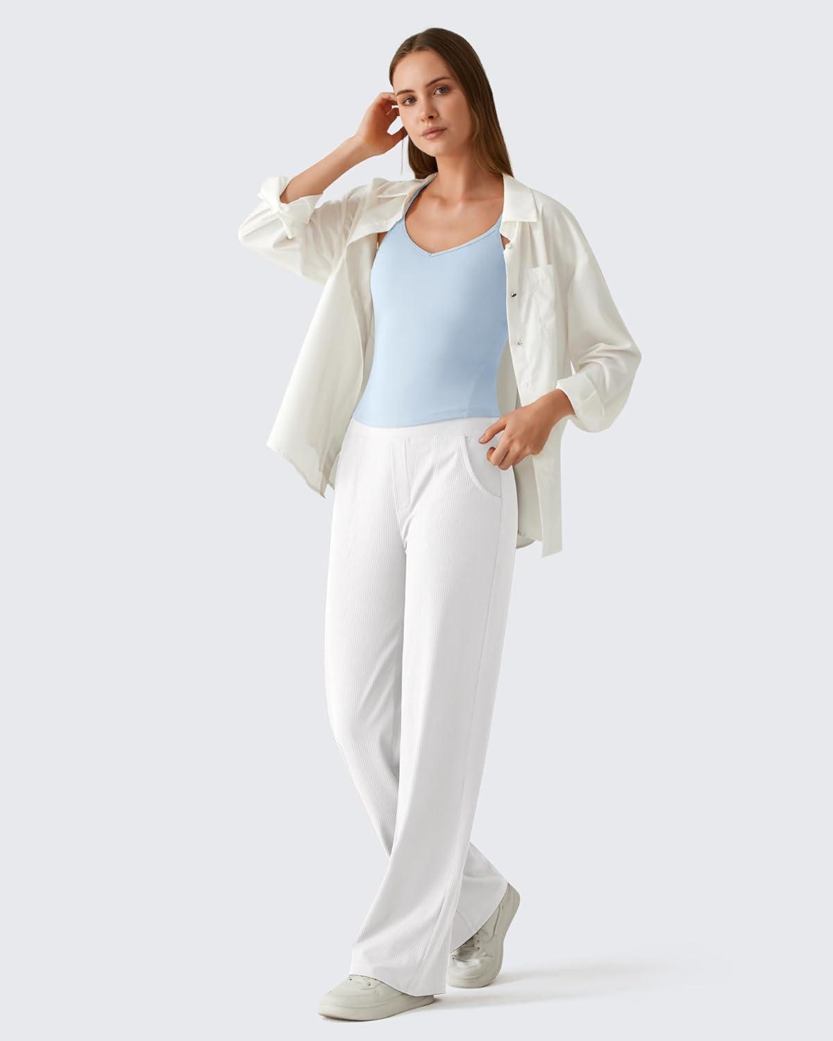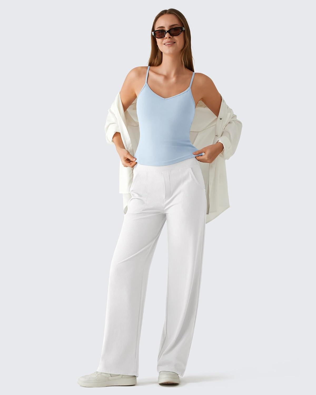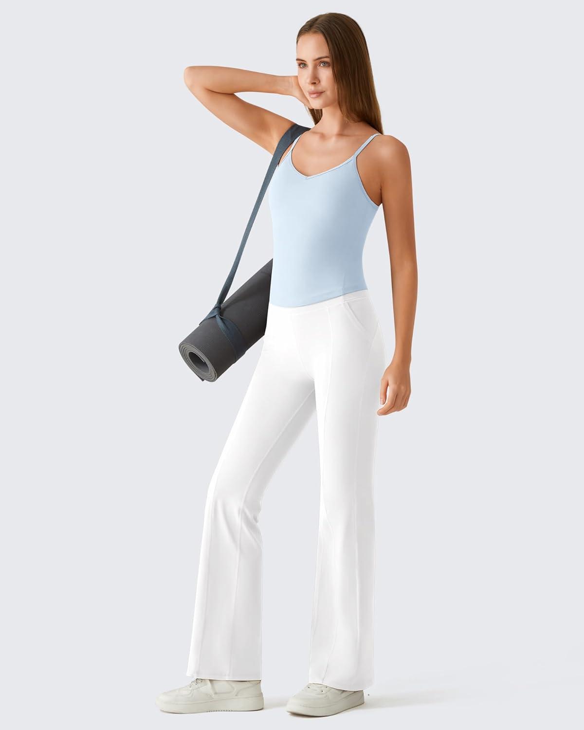 G4Free BareFeel Women’s Camisole with Built in Bra Removable Padded Yoga Pilates Tank Tops Spaghetti Straps V Neck Camisoles(Pure White)