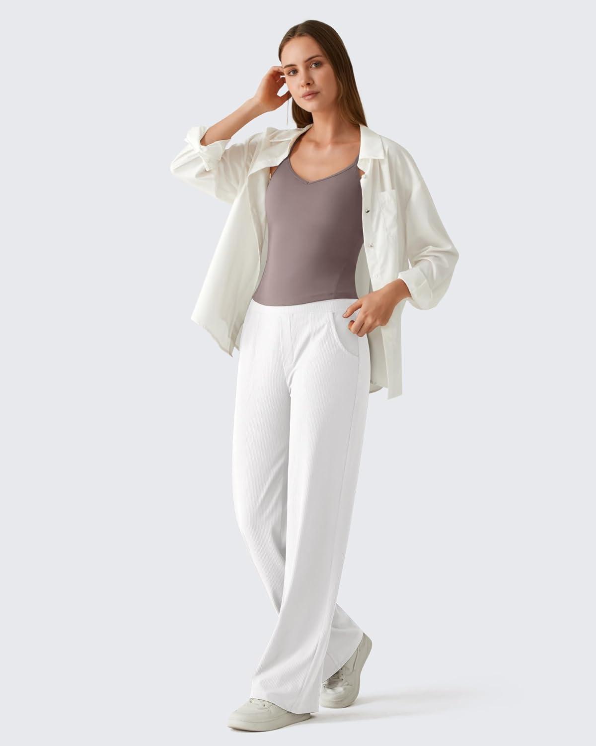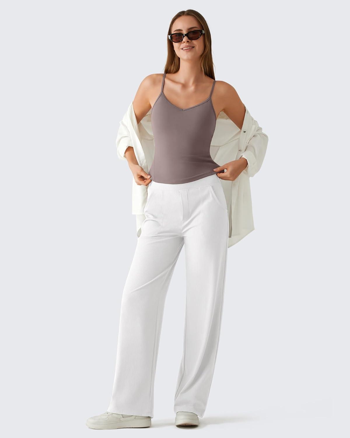 G4Free BareFeel Women’s Camisole with Built in Bra Removable Padded Yoga Pilates Tank Tops Spaghetti Straps V Neck Camisoles(Blush)