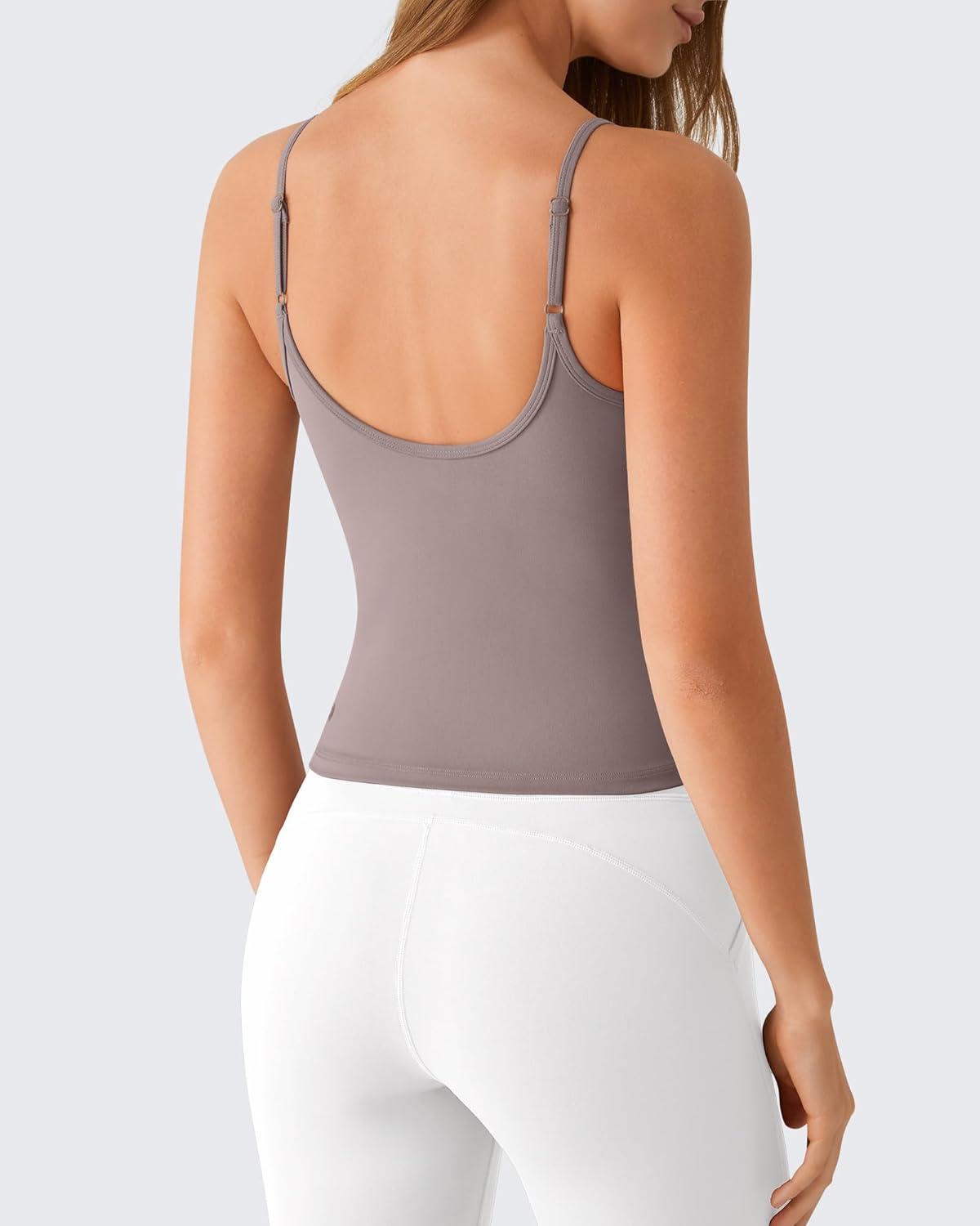 G4Free BareFeel Women's Camisole with Built in Bra Removable Padded Yoga Pilates Tank Tops Spaghetti Straps V Neck Camisoles(Taupe)