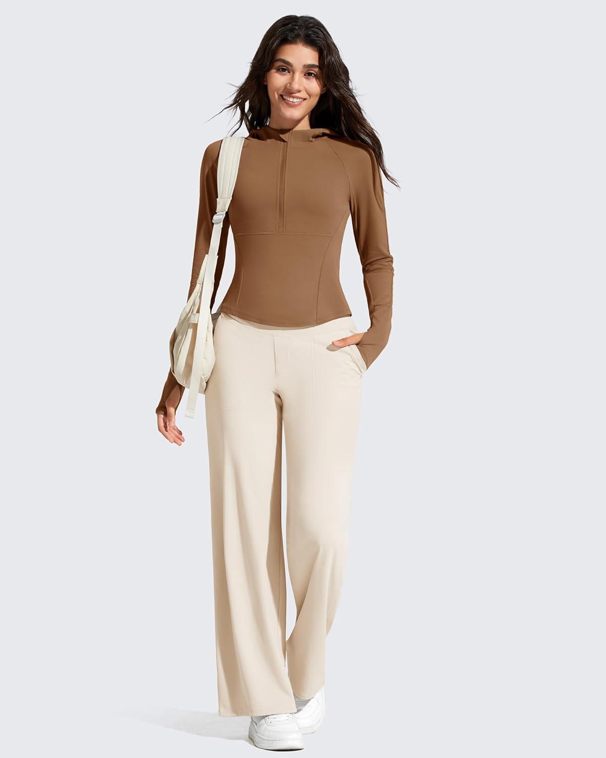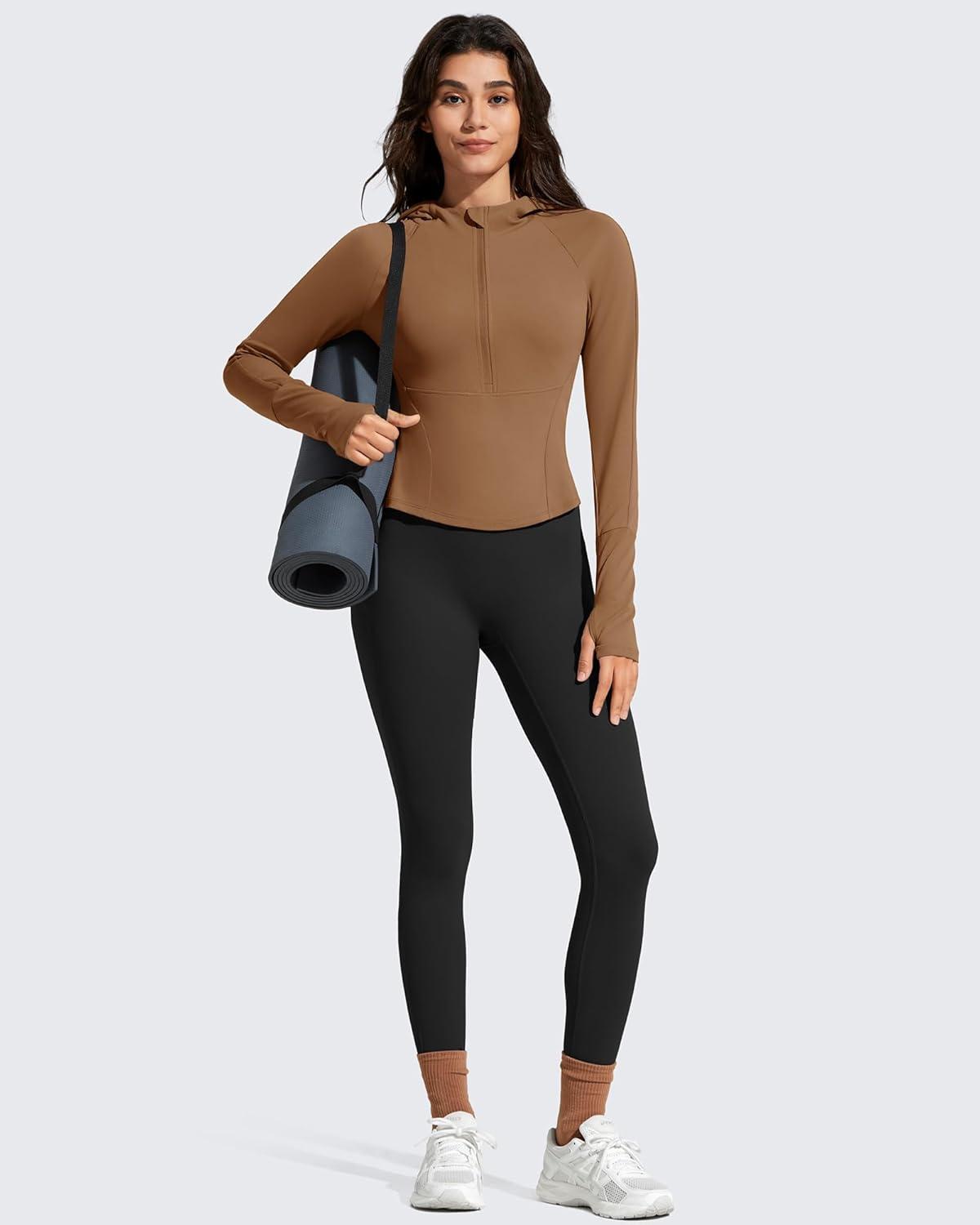 imageG4Free BareFeel Womens Half Zip Pullover Hoodies Slim Fit Yoga Running Long Sleeve Tops with ThumbholesDark Coffee