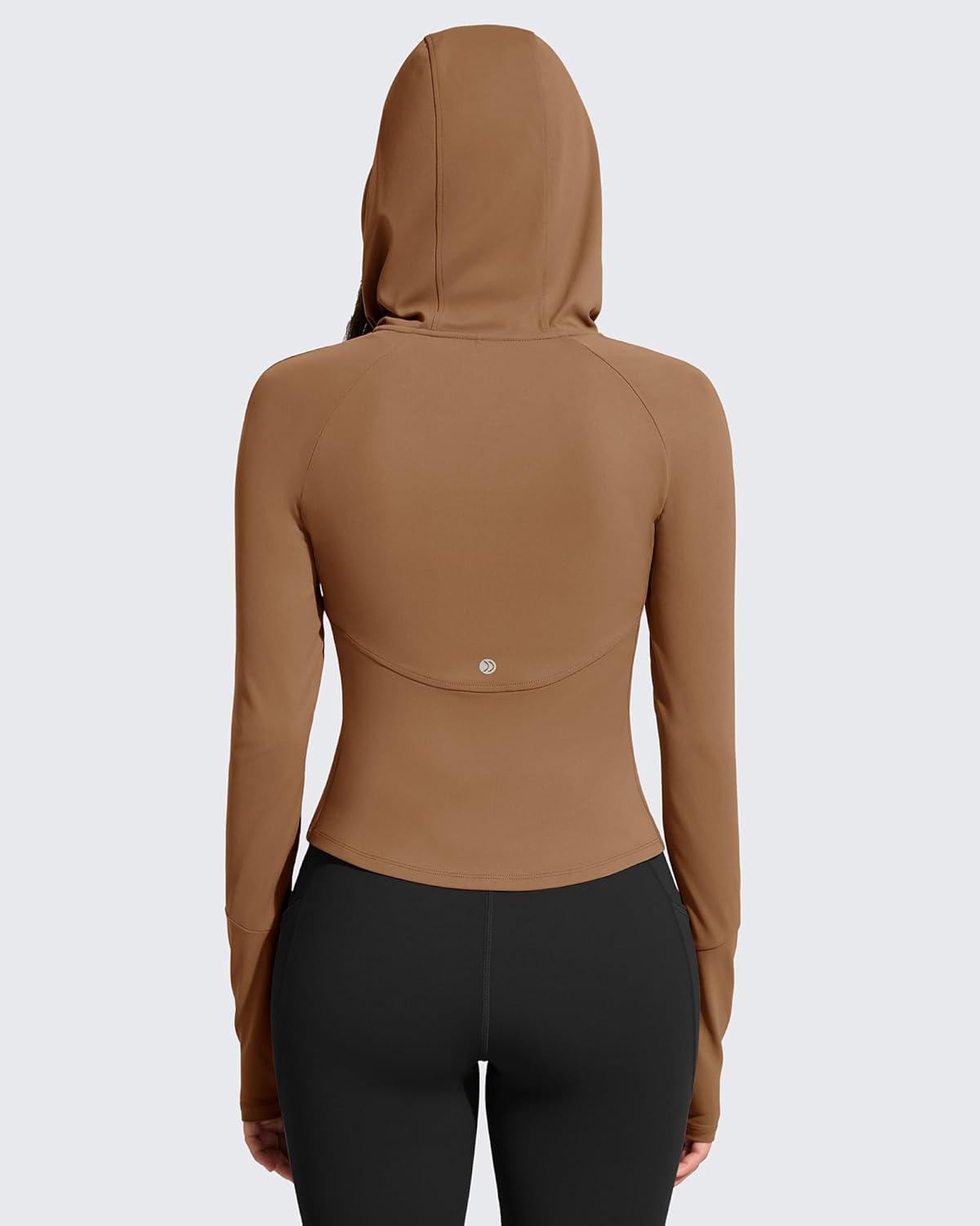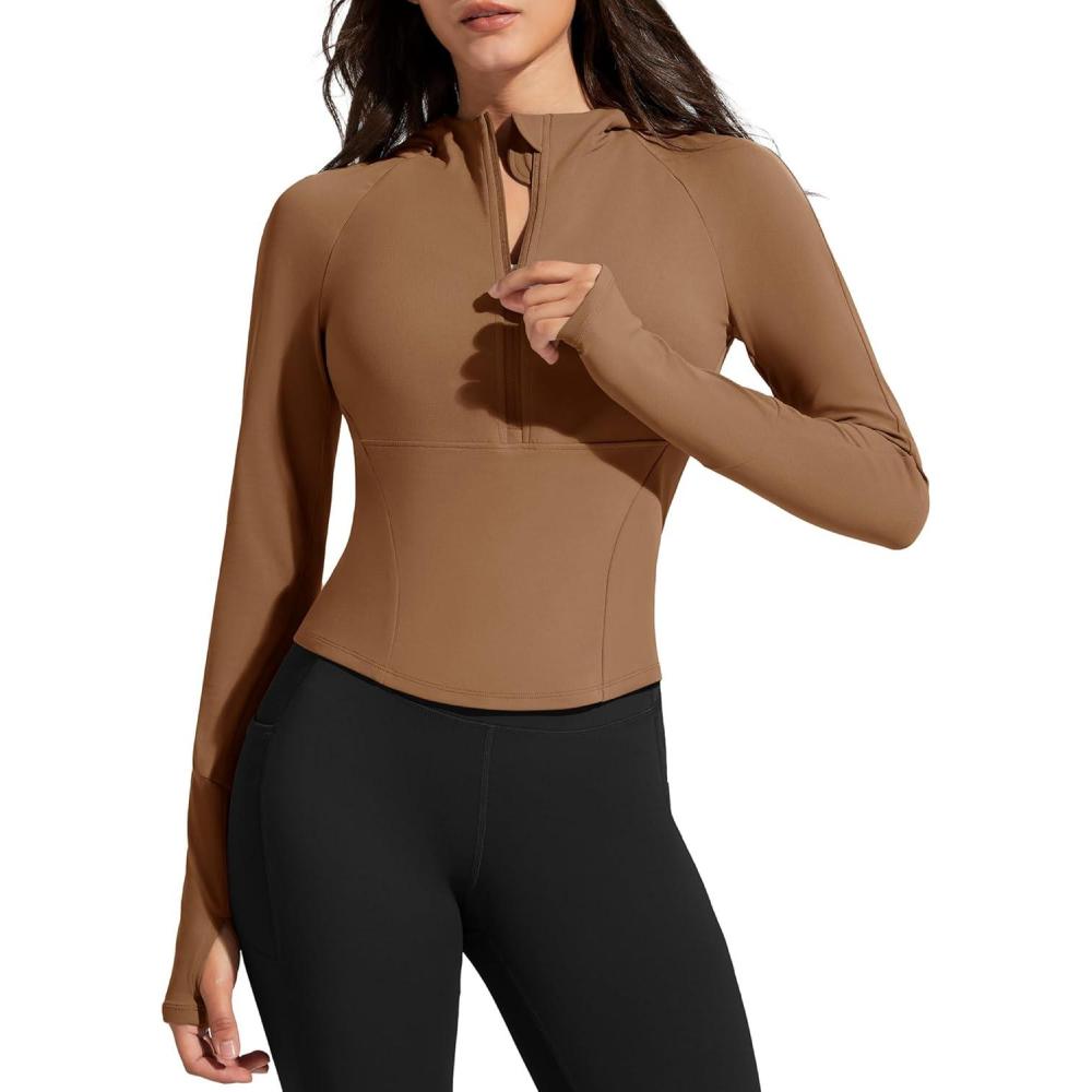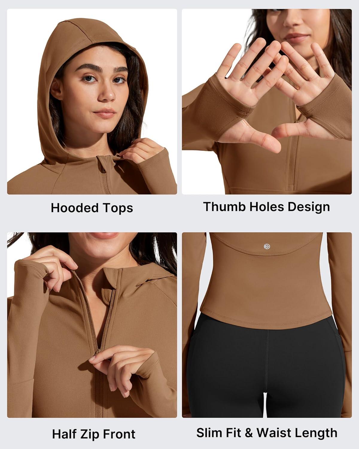 G4Free BareFeel Women's Half Zip Pullover Hoodies Slim Fit Yoga Running Long Sleeve Tops with Thumbholes(Dark Coffee)