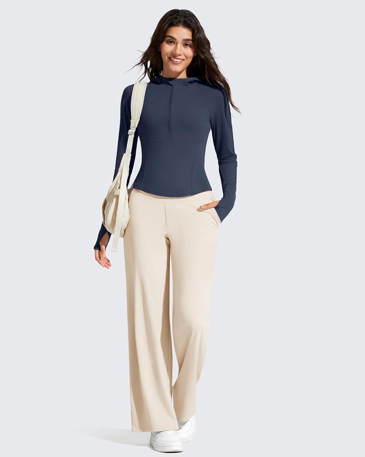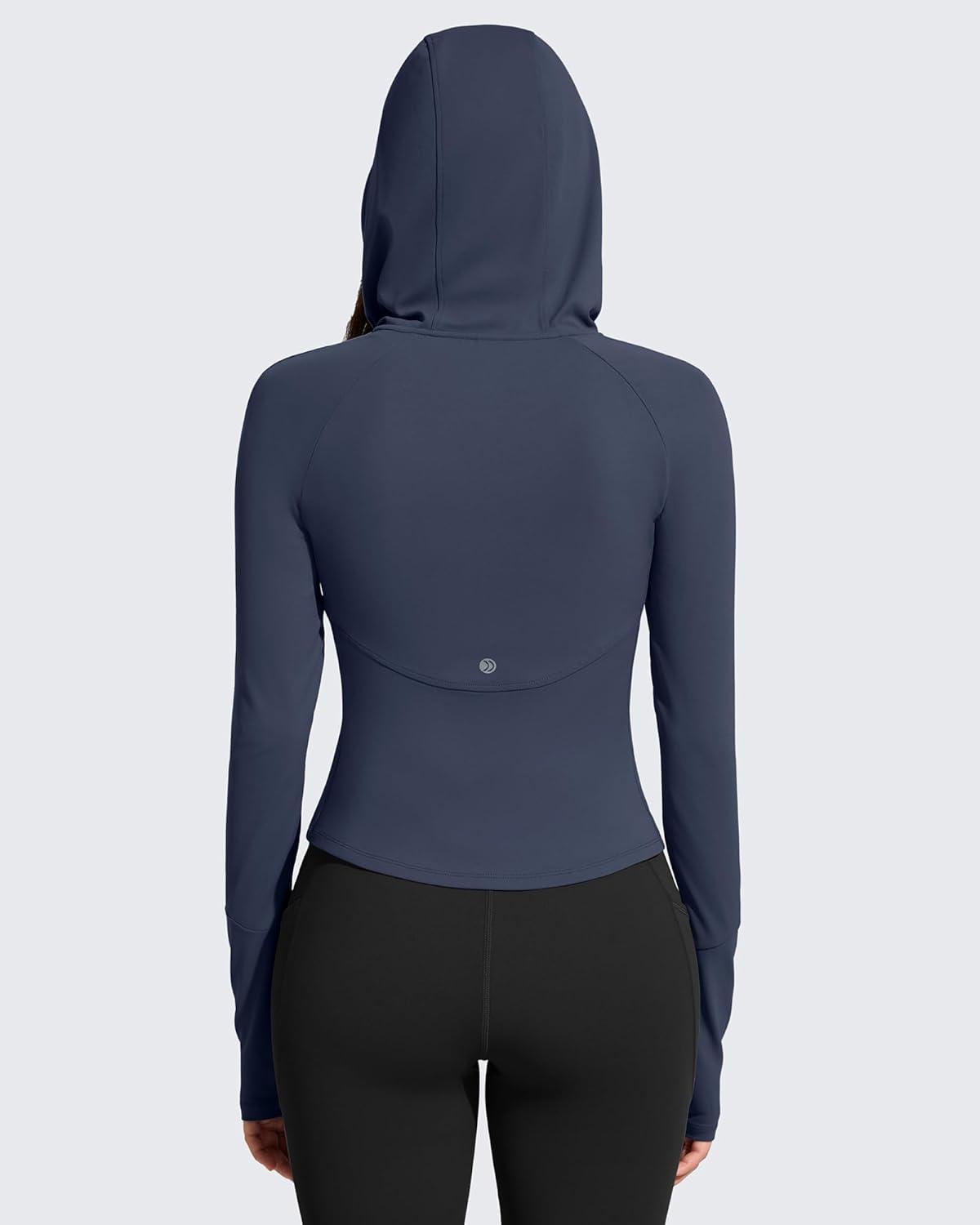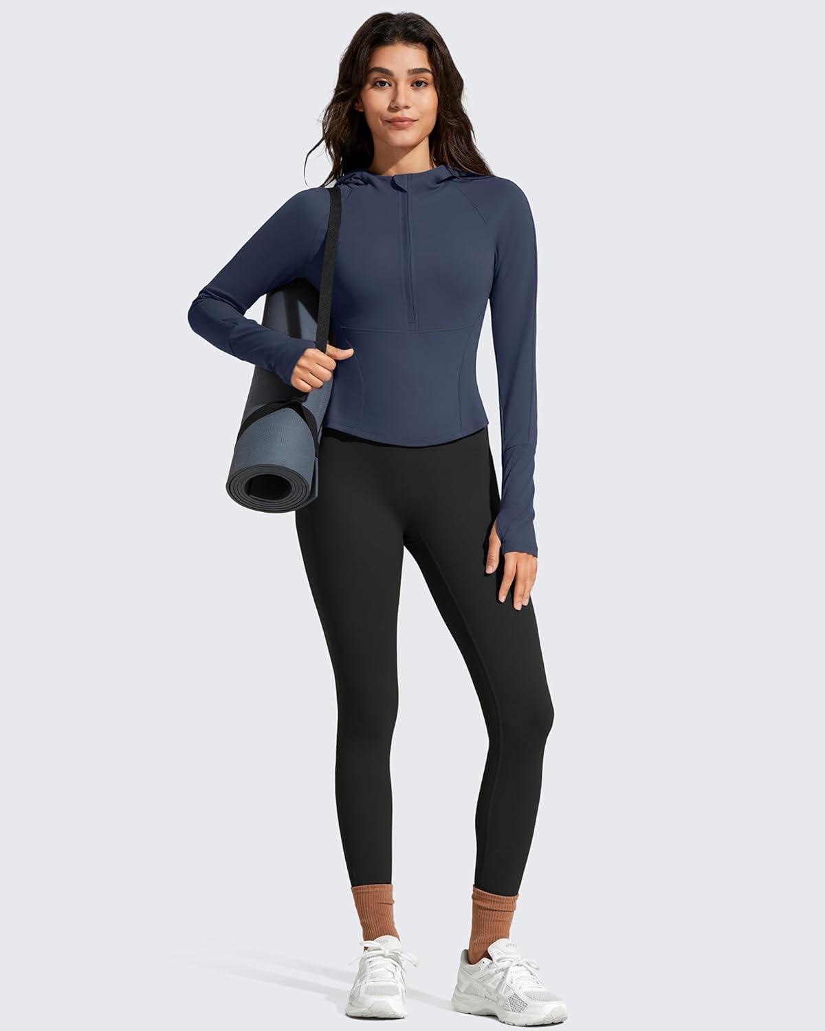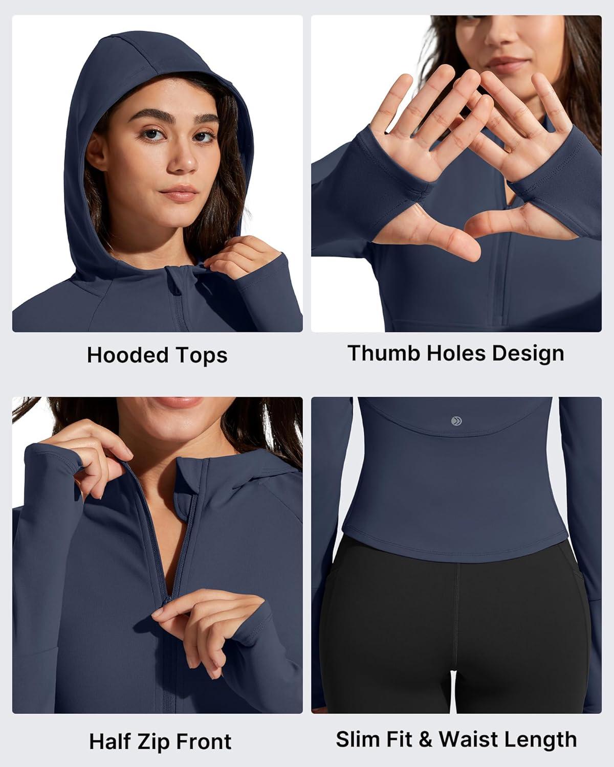 G4Free BareFeel Women’s Half Zip Pullover Hoodies Slim Fit Yoga Running Long Sleeve Tops with Thumbholes(Dark Navy)