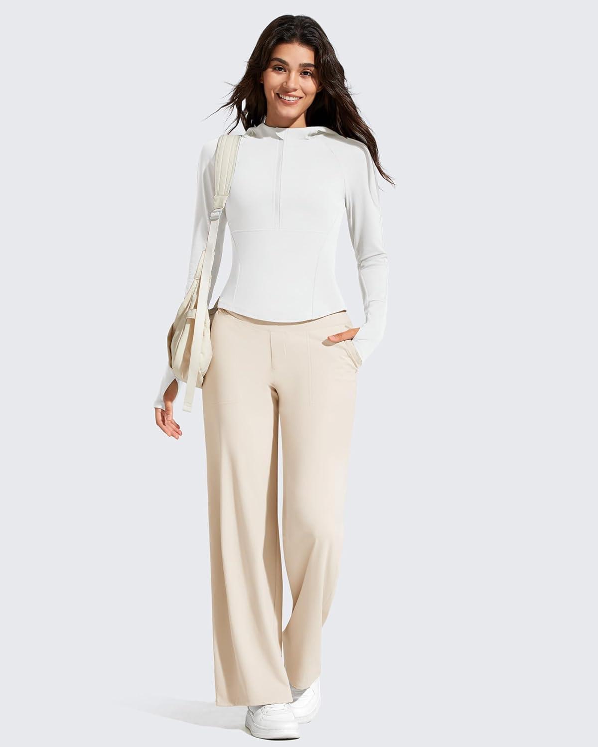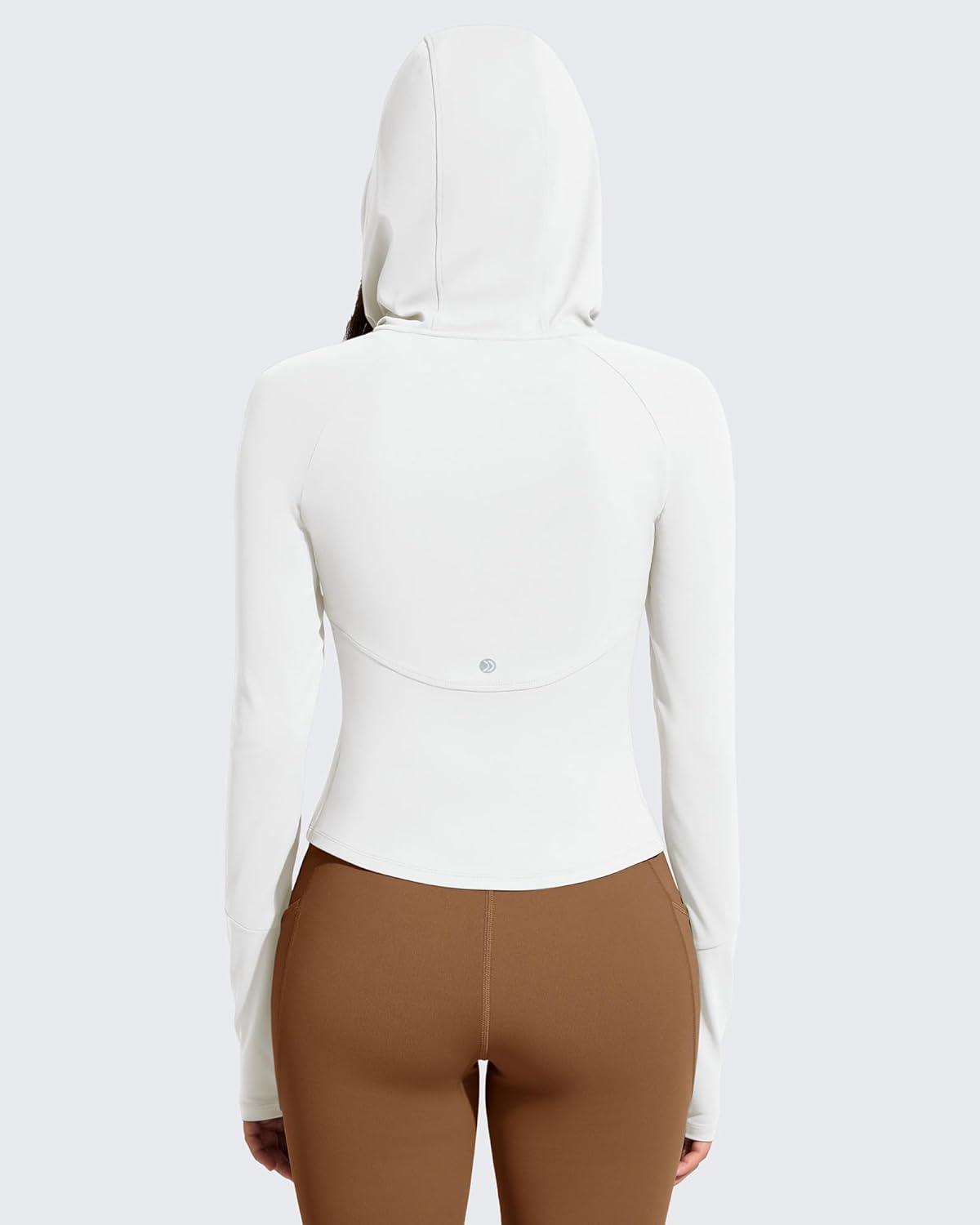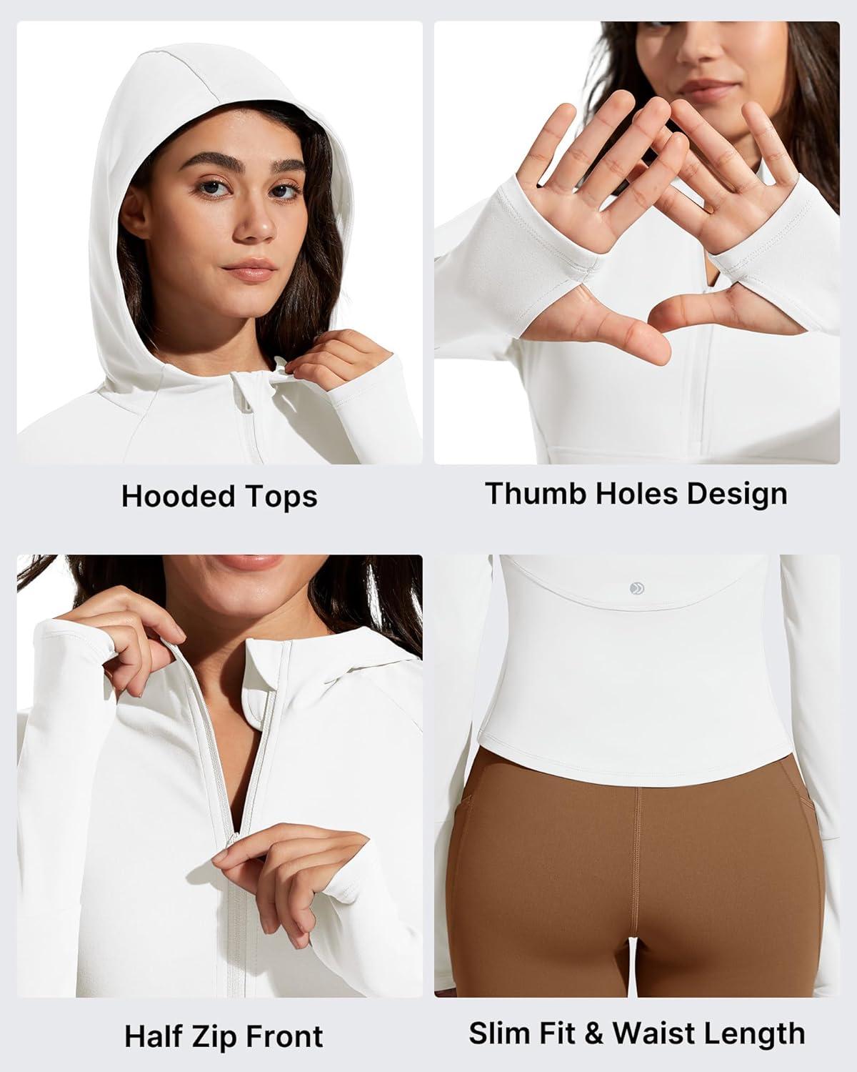 G4Free BareFeel Women's Half Zip Pullover Hoodies Slim Fit Yoga Running Long Sleeve Tops with Thumbholes(Pure White)