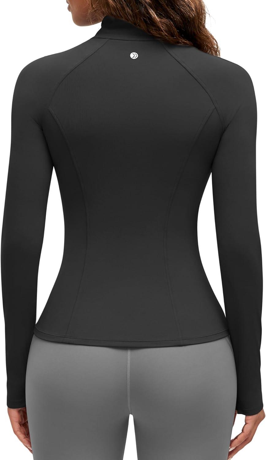 G4Free BareFeel Women's Workout Jacket Full Zip Up Slim Hip Length Yoga Athletic Tops with Thumb Holes(Black)