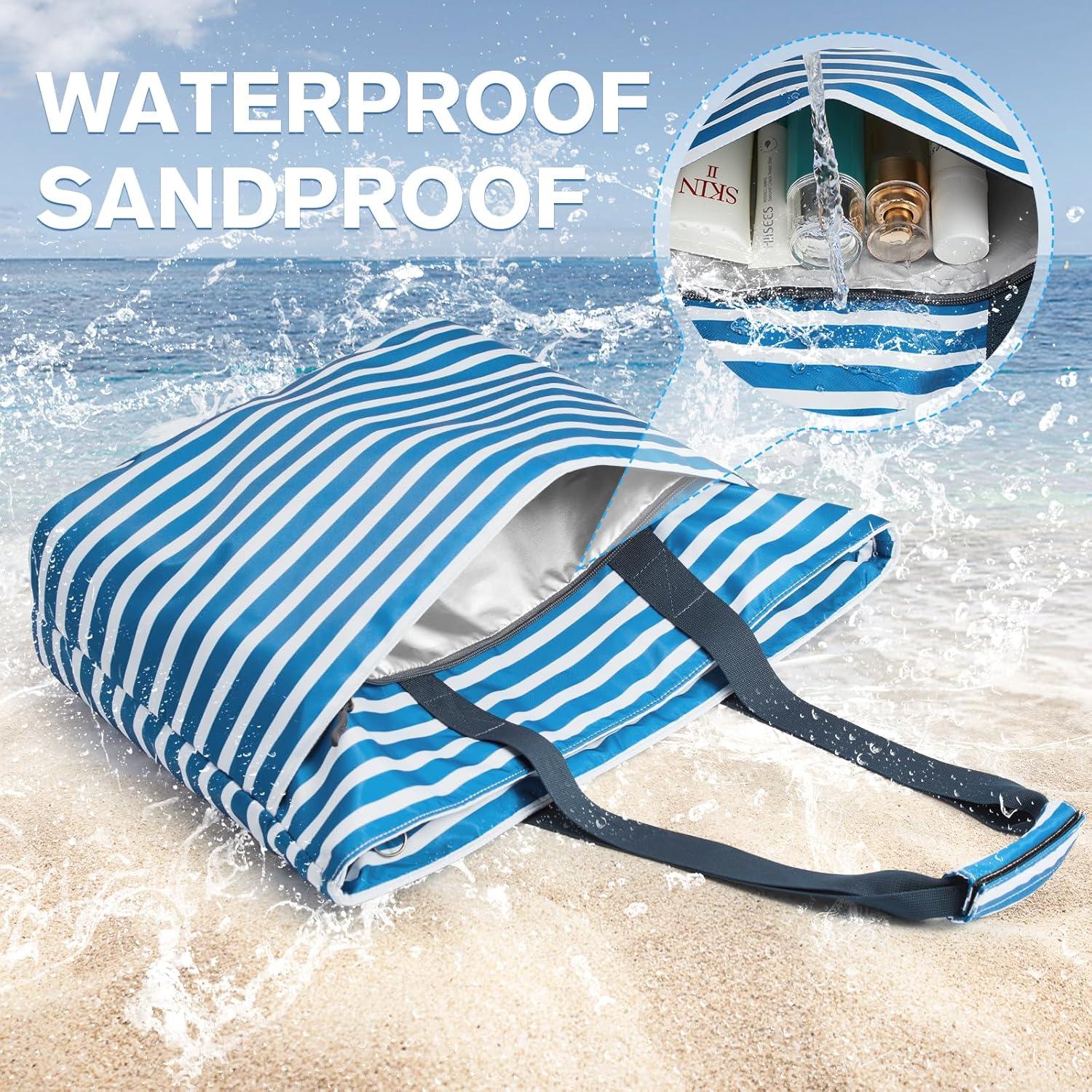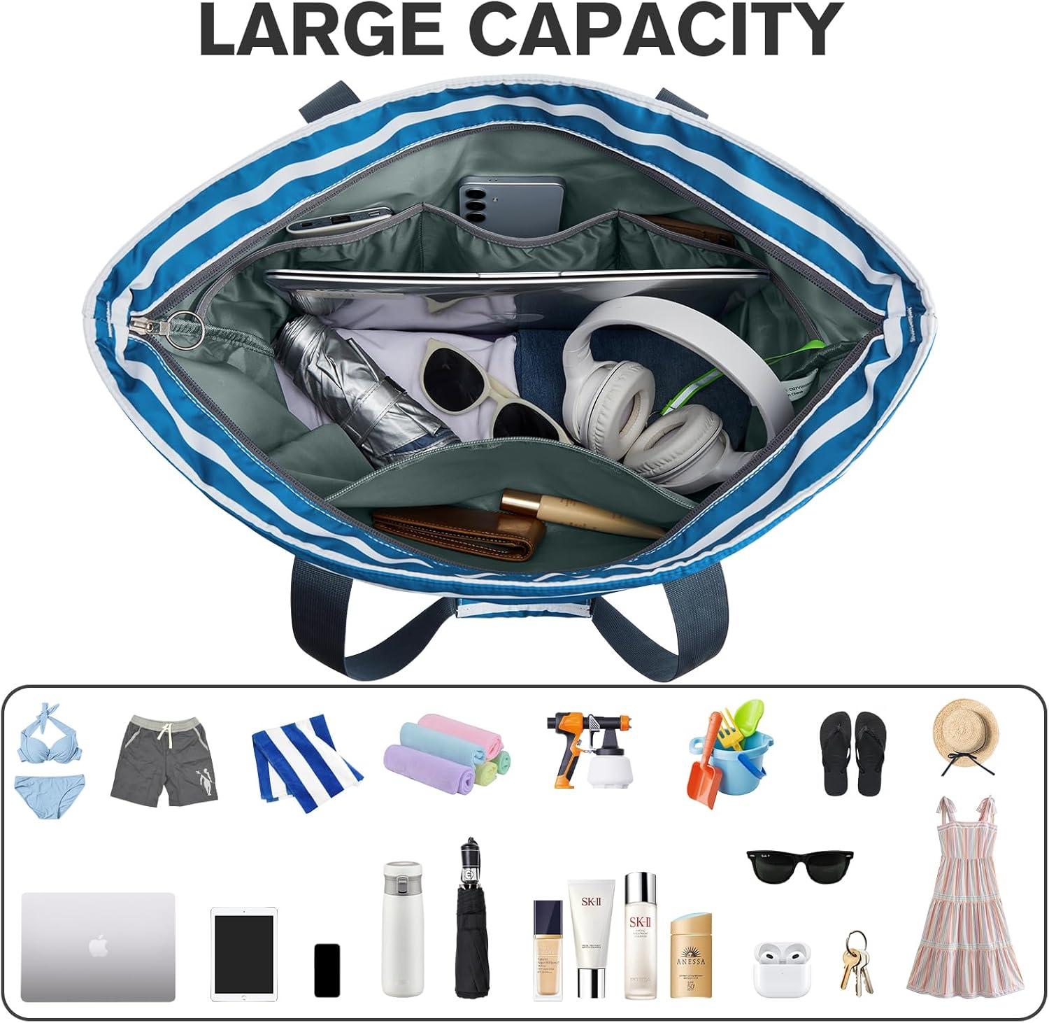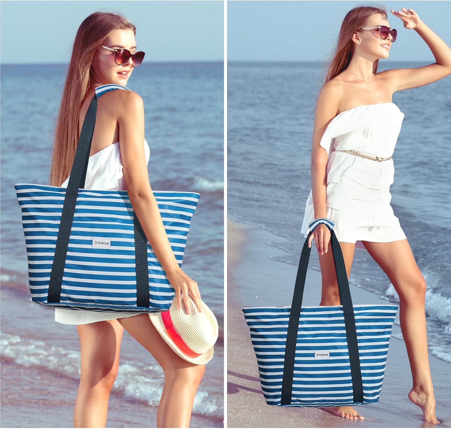 G4Free Beach Bag, Waterproof Beach Bags for Women, Personalized Strap Tote Bag for Women Birthday Gifts(Deep Blue Stripe)