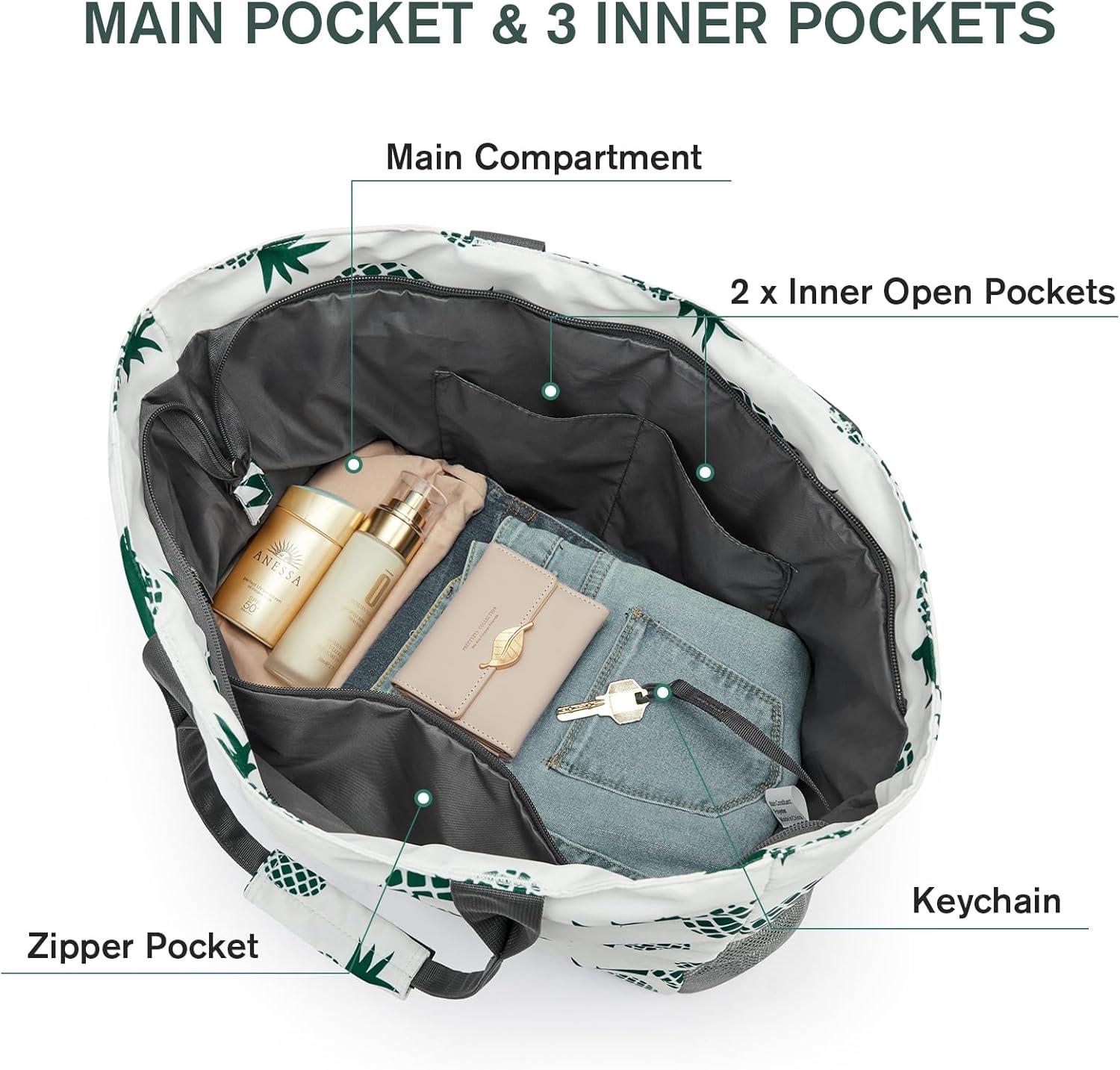 imageG4Free Beach Bag Waterproof Sandproof Beach Tote Bag Large Capacity Foldable for WomenPineapple