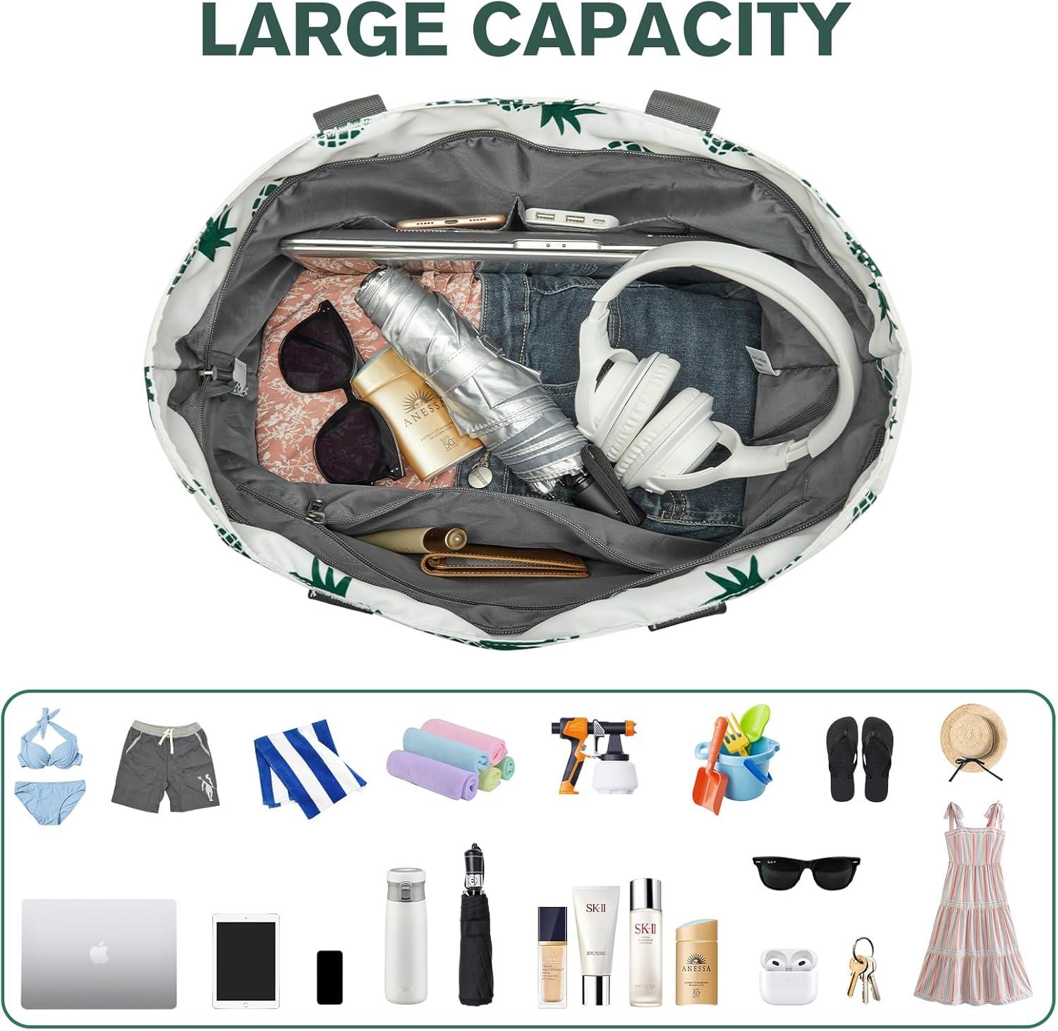 G4Free Beach Bag, Waterproof Sandproof Beach Tote Bag, Large Capacity Foldable for Women(Leaf)