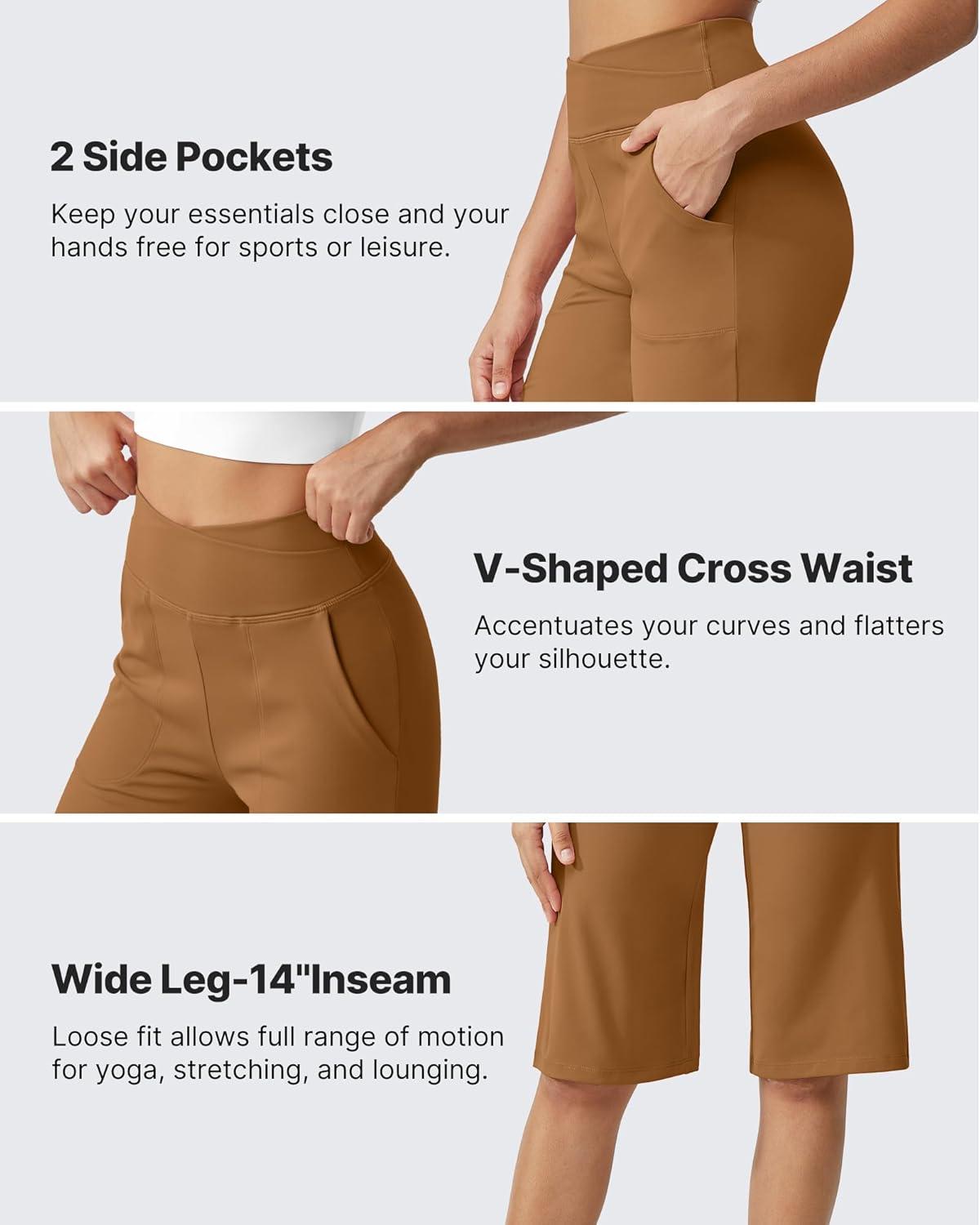 G4Free Capri Pants for Women 14" Knee Length Wide Leg Yoga Capris Dressy Casual Summer Crop Pants with Pockets(Coca Mocha)