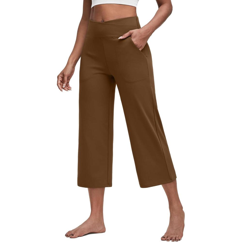 Get the G4Free Capri Pants for Women Wide Leg Yoga Dress Capris with Pockets Cross Loose Casual Work Crop Pants(Dark Coffee) you want at a discounted price during our markdown sale event.