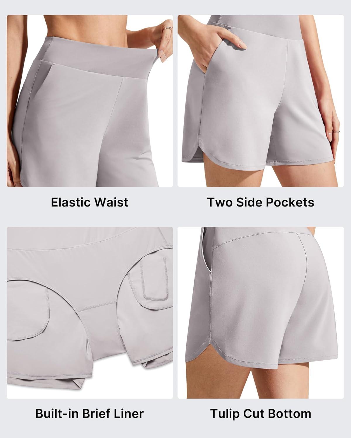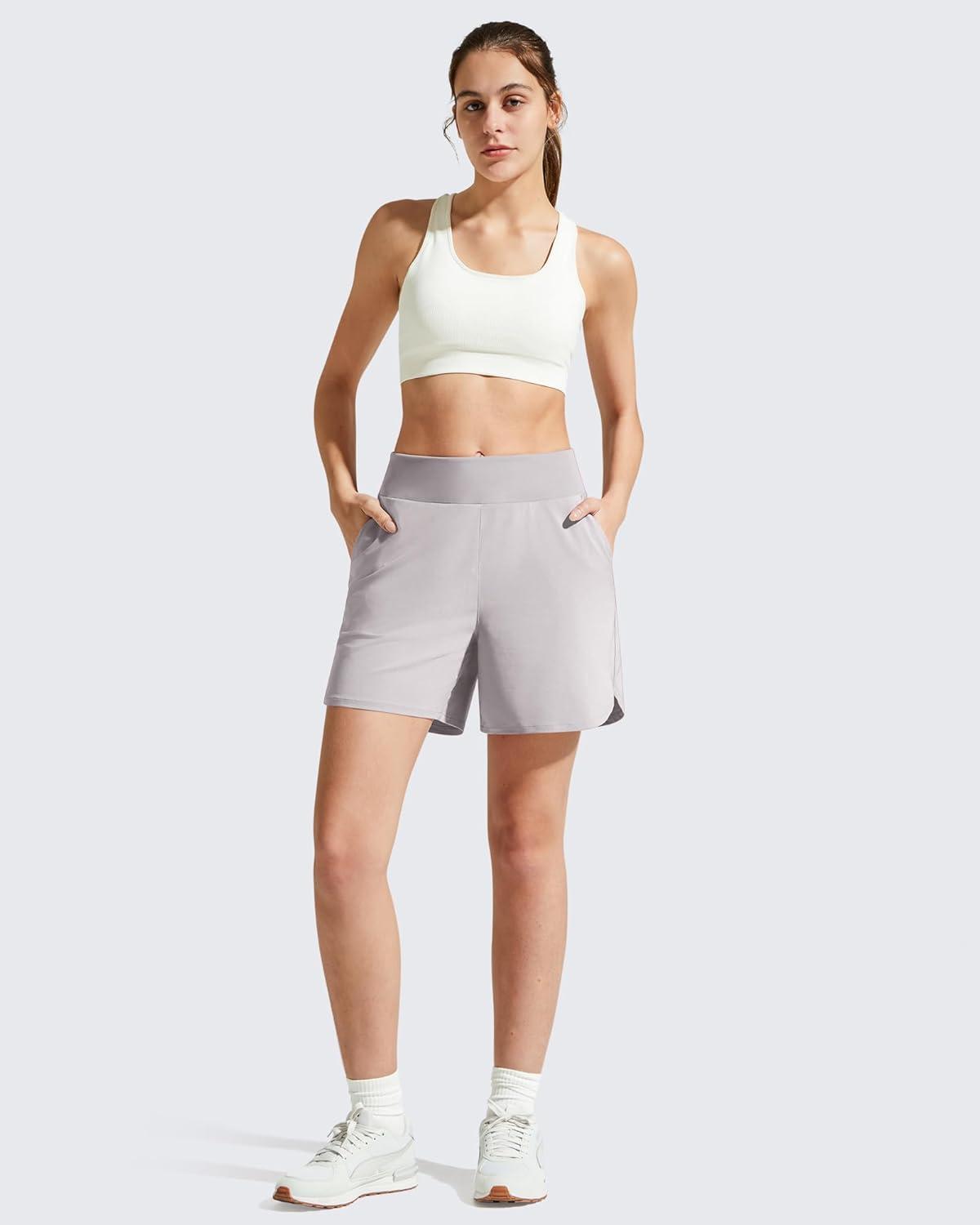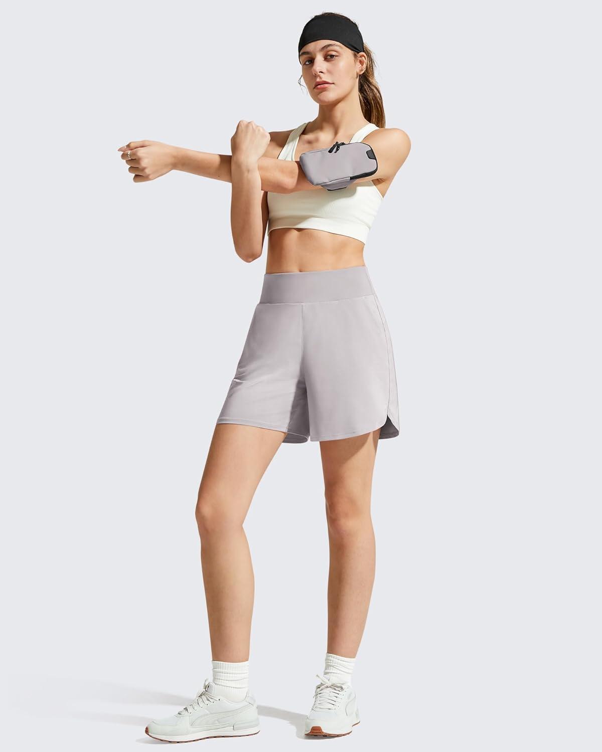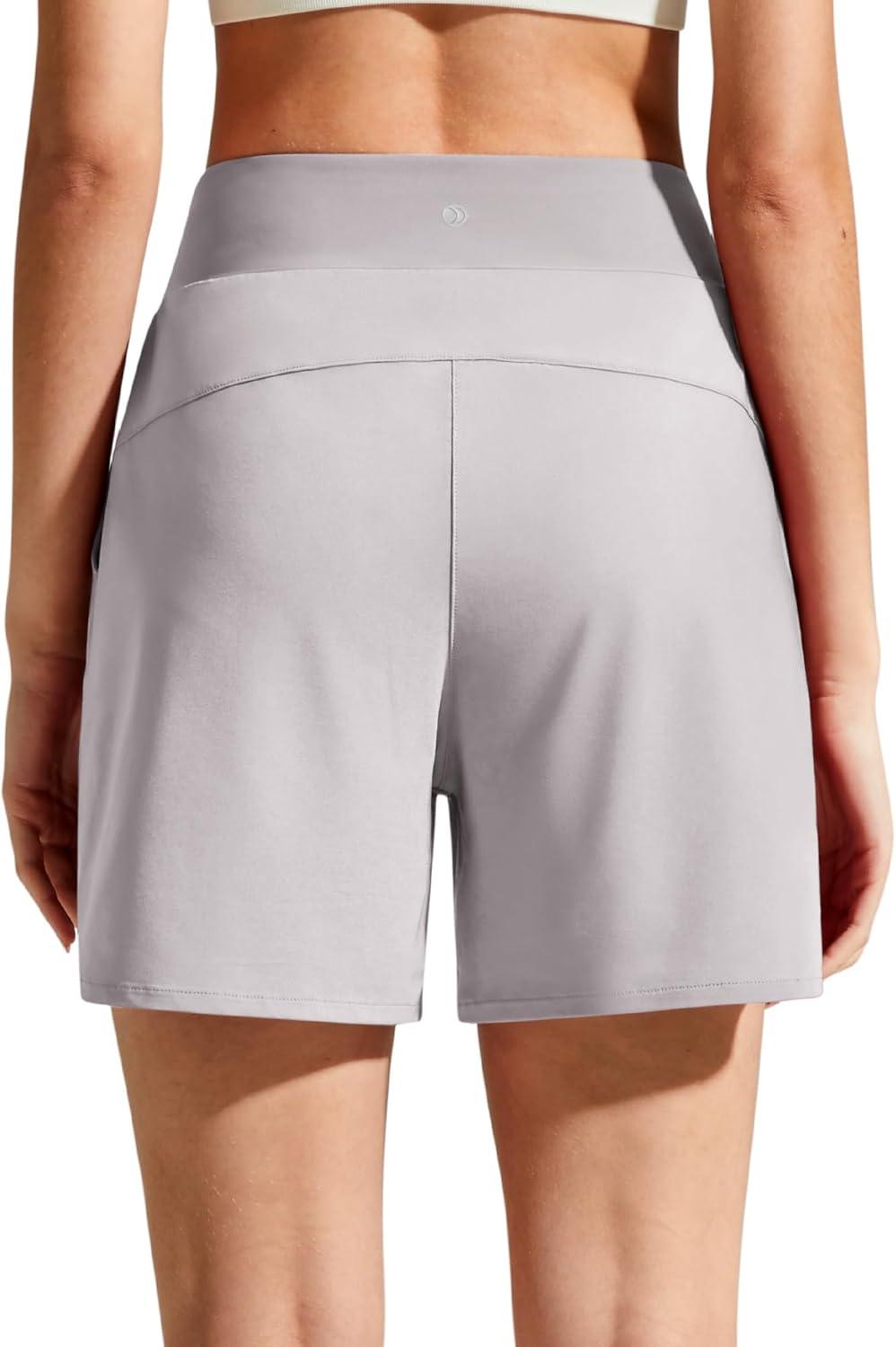 G4Free Chillwhisp Athletic Shorts for Women 4″ – High Waist Lightweight Casual Running Shorts Built-in Liner with Pockets(Chime Gray)