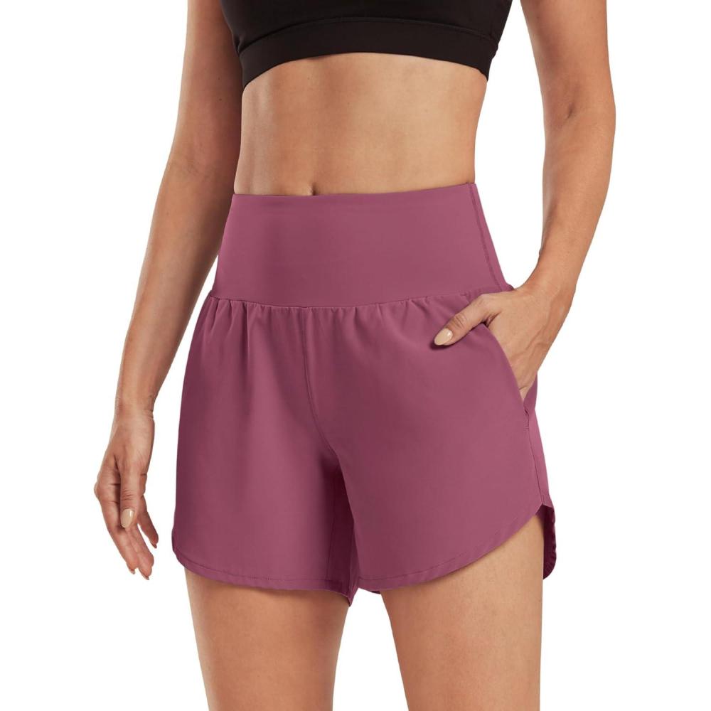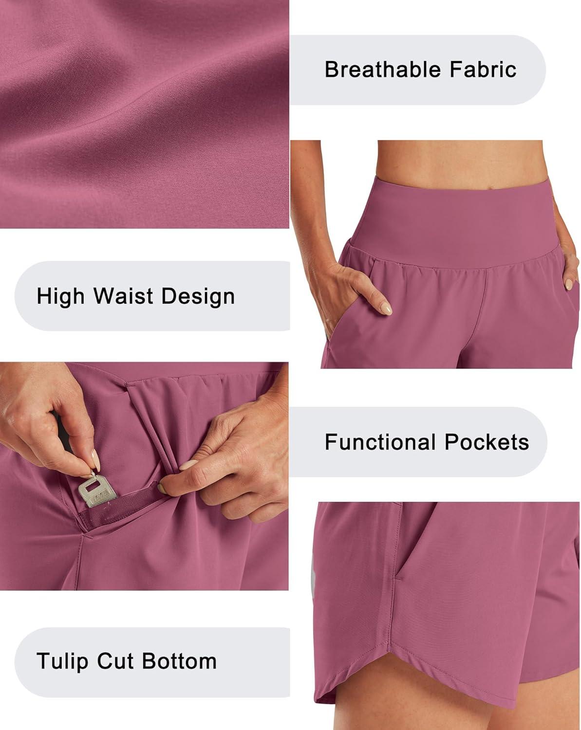 G4Free Chillwhisp Athletic Shorts for Women 4″ – High Waist Lightweight Casual Running Shorts Built-in Liner with Pockets(Dark Burgundy-1)