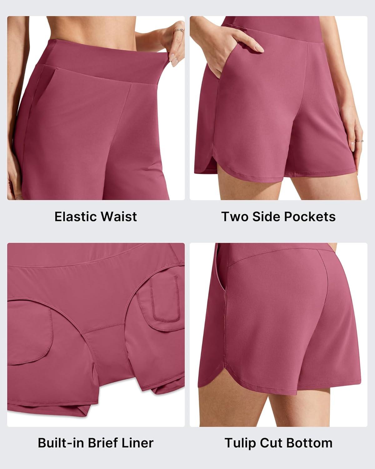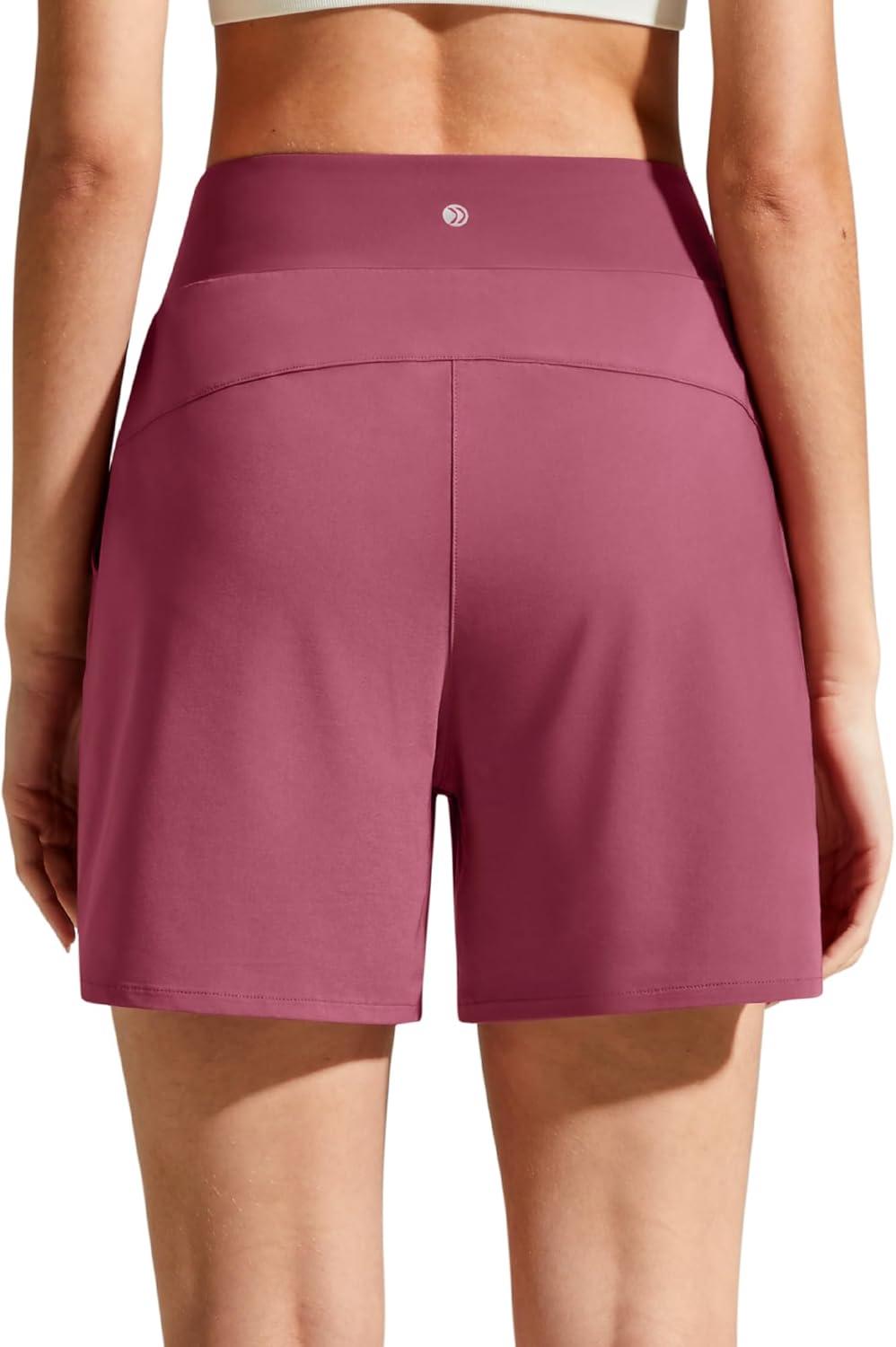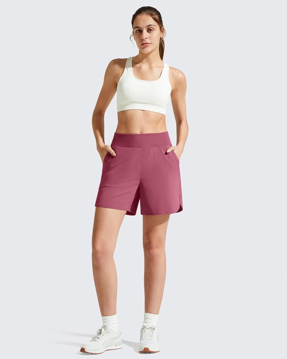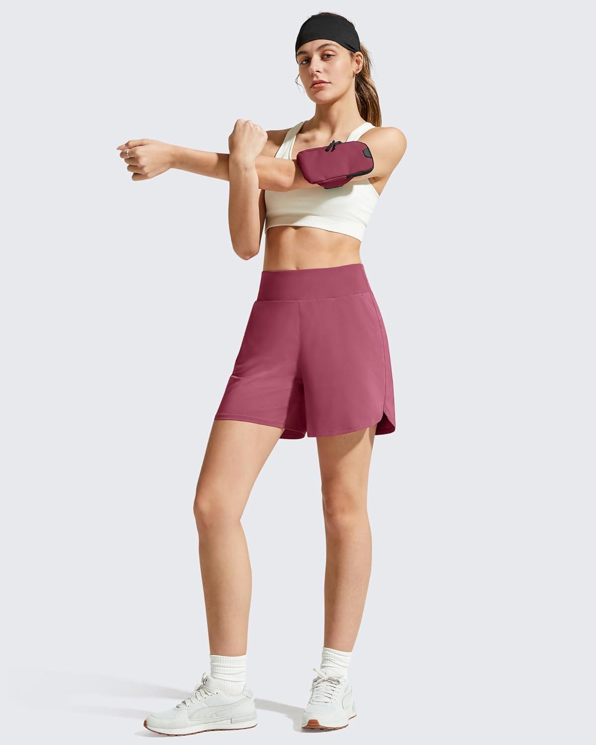 G4Free Chillwhisp Athletic Shorts for Women 4″ – High Waist Lightweight Casual Running Shorts Built-in Liner with Pockets(Dark Burgundy-1)