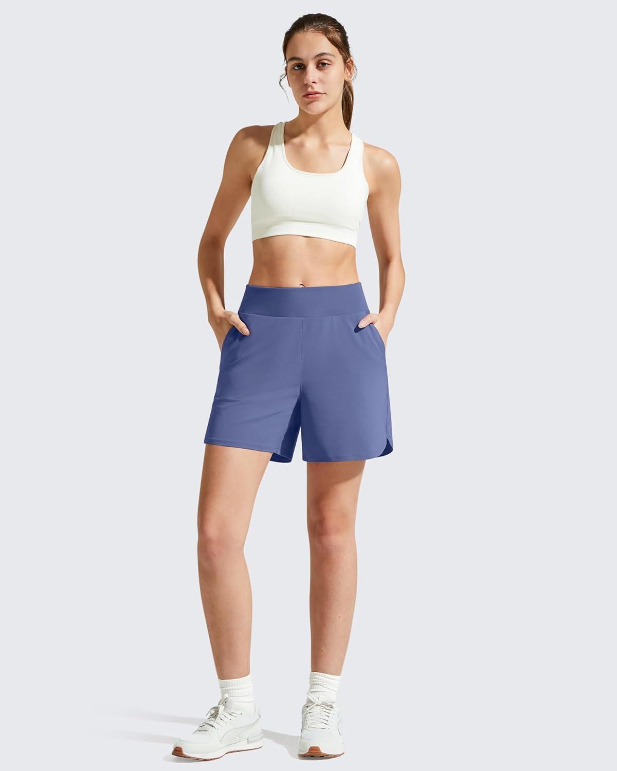 G4Free Chillwhisp Athletic Shorts for Women 4″ – High Waist Lightweight Casual Running Shorts Built-in Liner with Pockets(Dusky Purple-1)