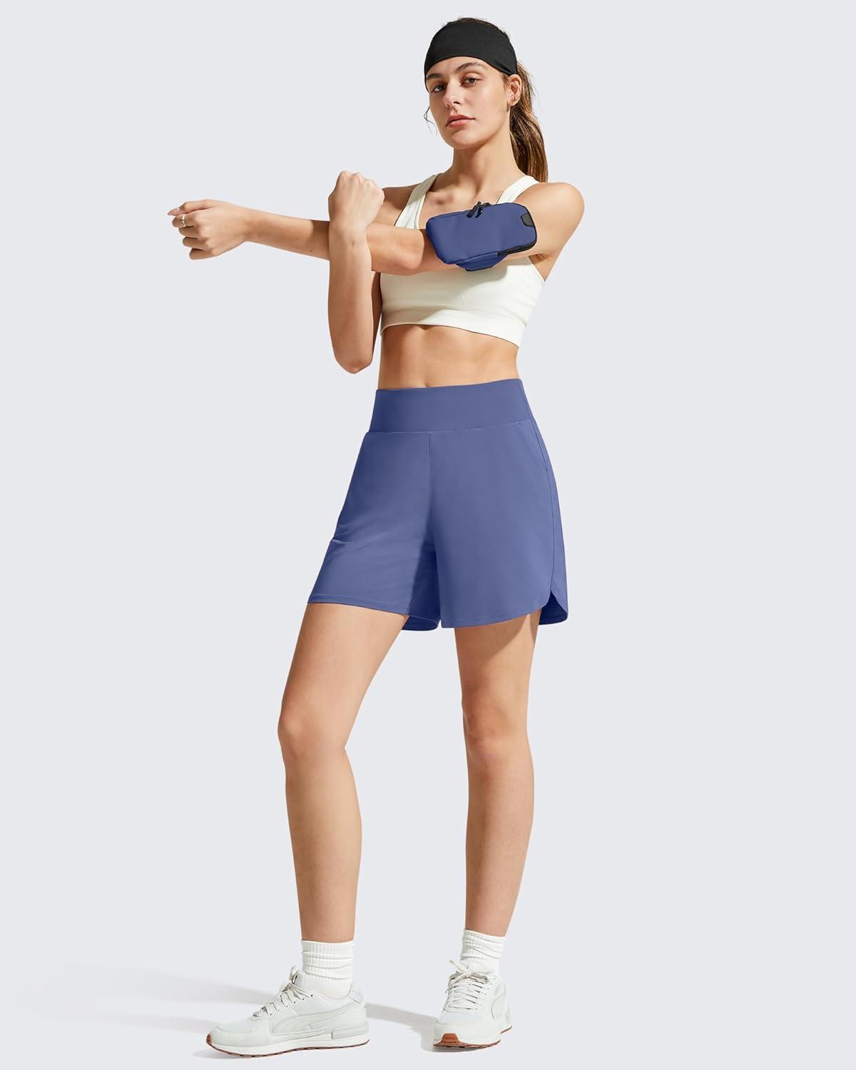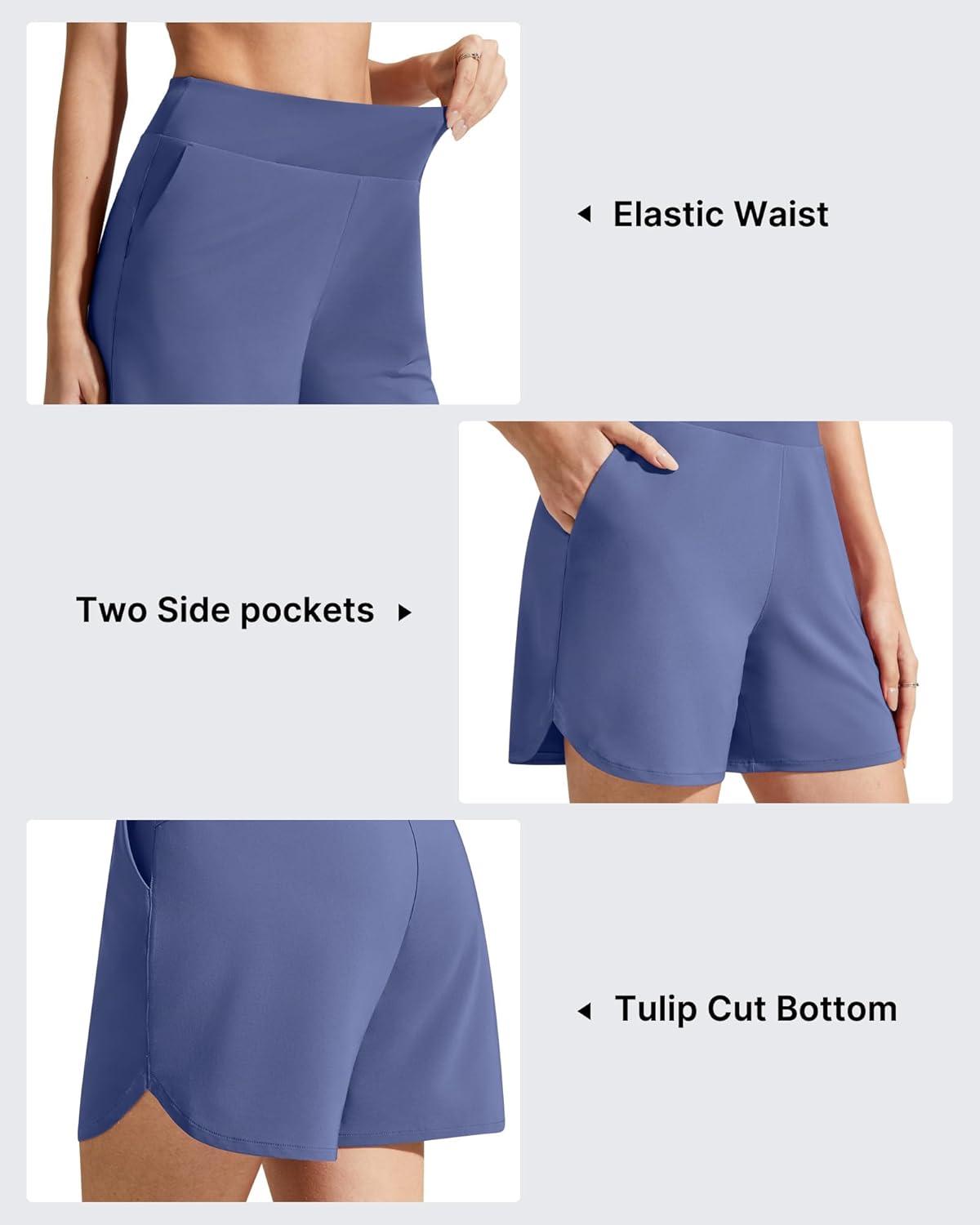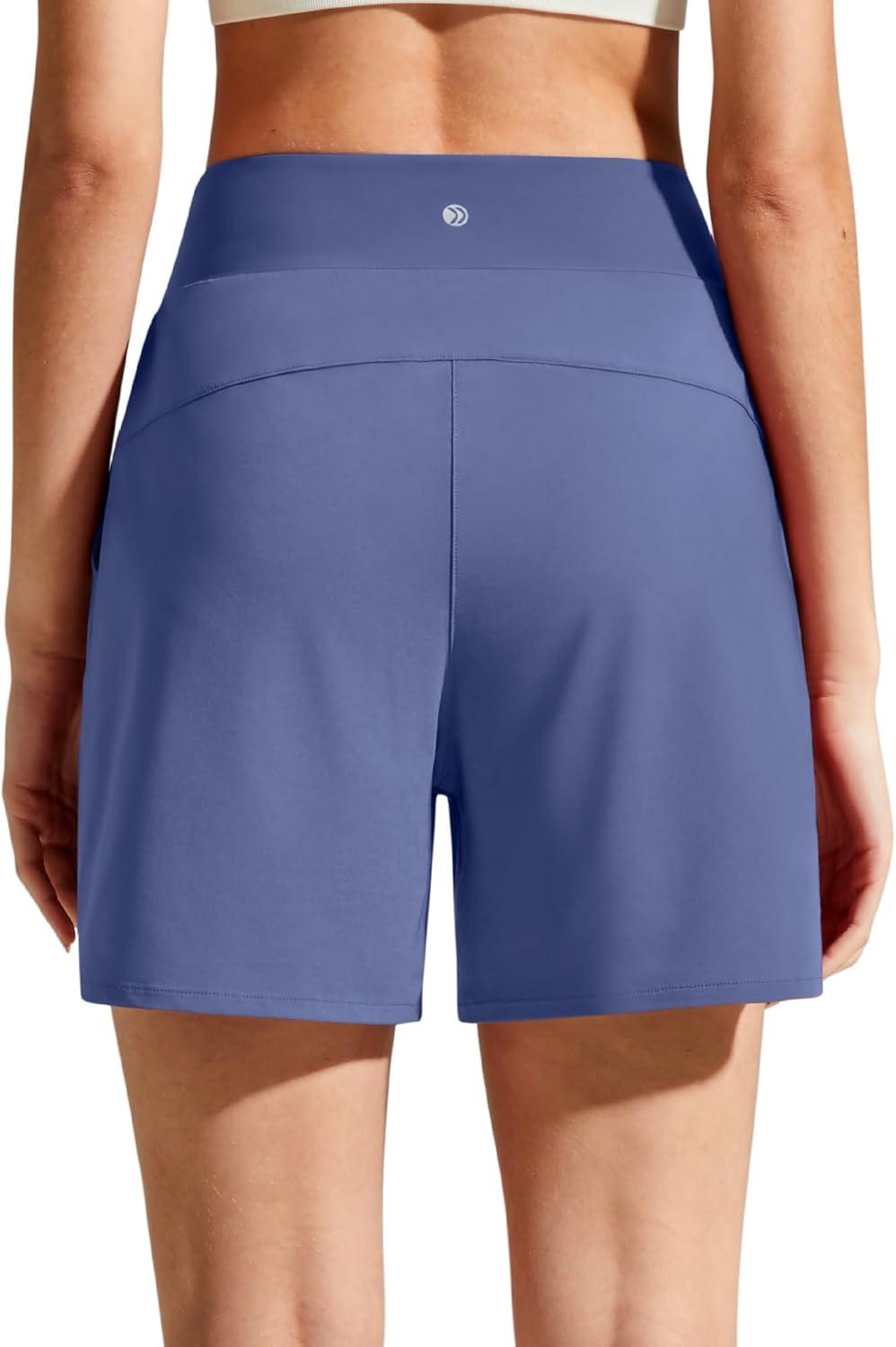 G4Free Chillwhisp Athletic Shorts for Women 4″ – High Waist Lightweight Casual Running Shorts Built-in Liner with Pockets(Dark Navy)