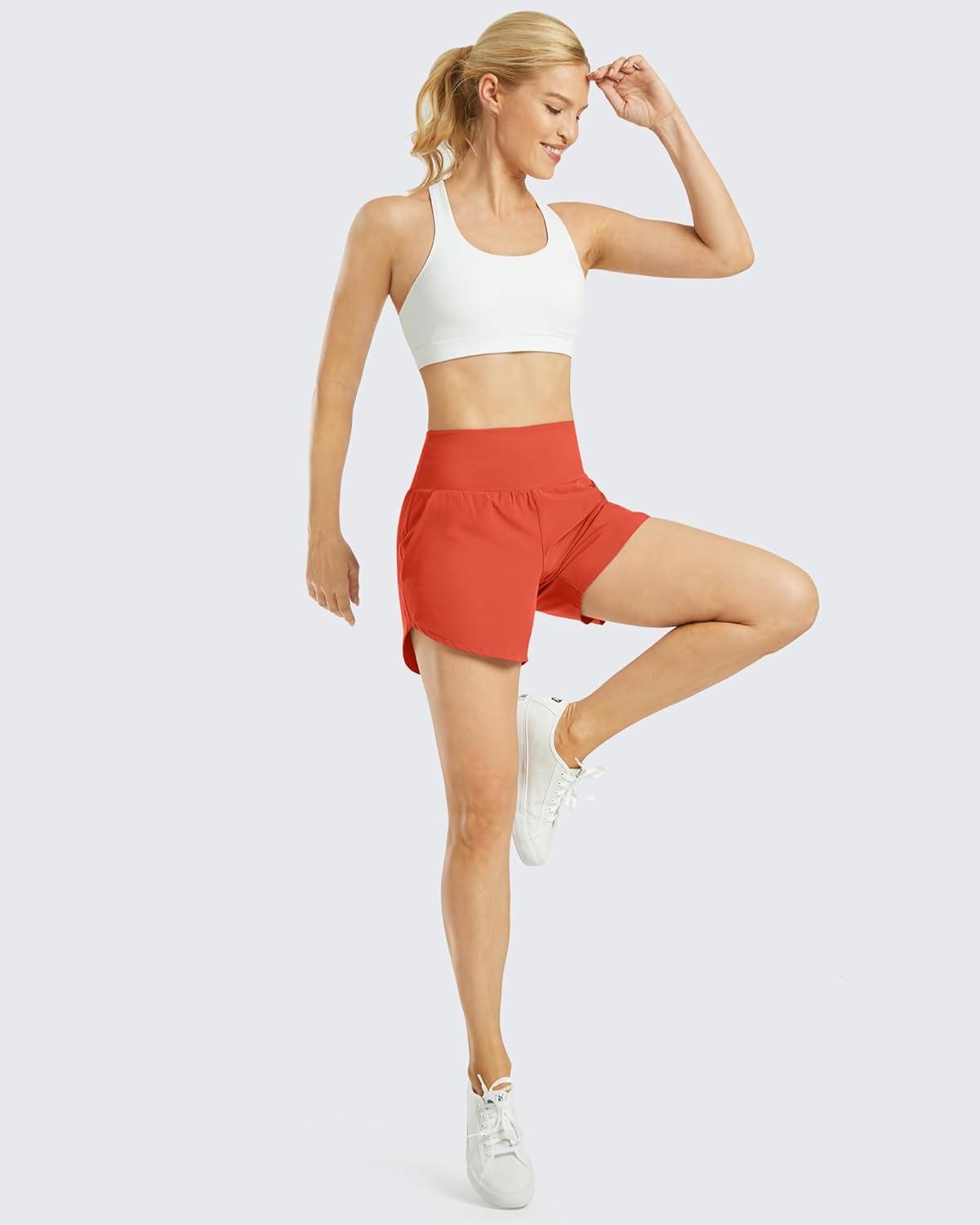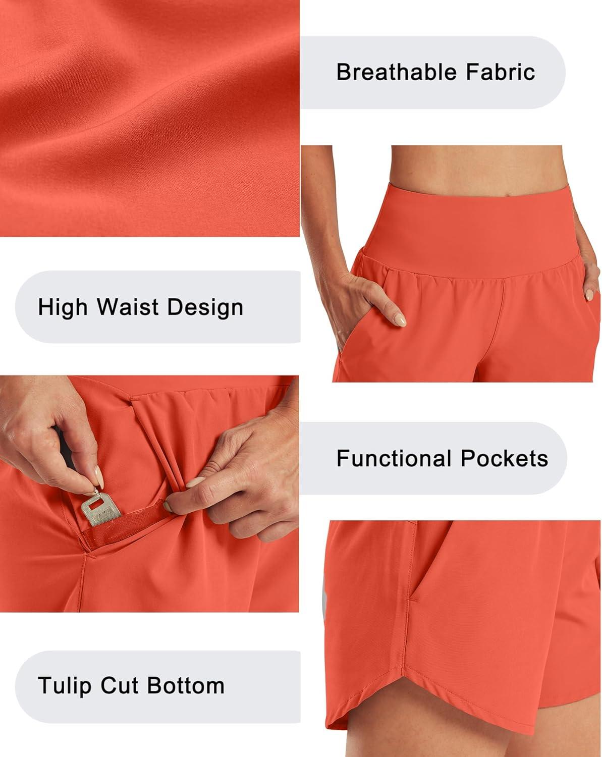 G4Free Chillwhisp Athletic Shorts for Women 4″ – High Waist Lightweight Casual Running Shorts Built-in Liner with Pockets(Rust Orange)
