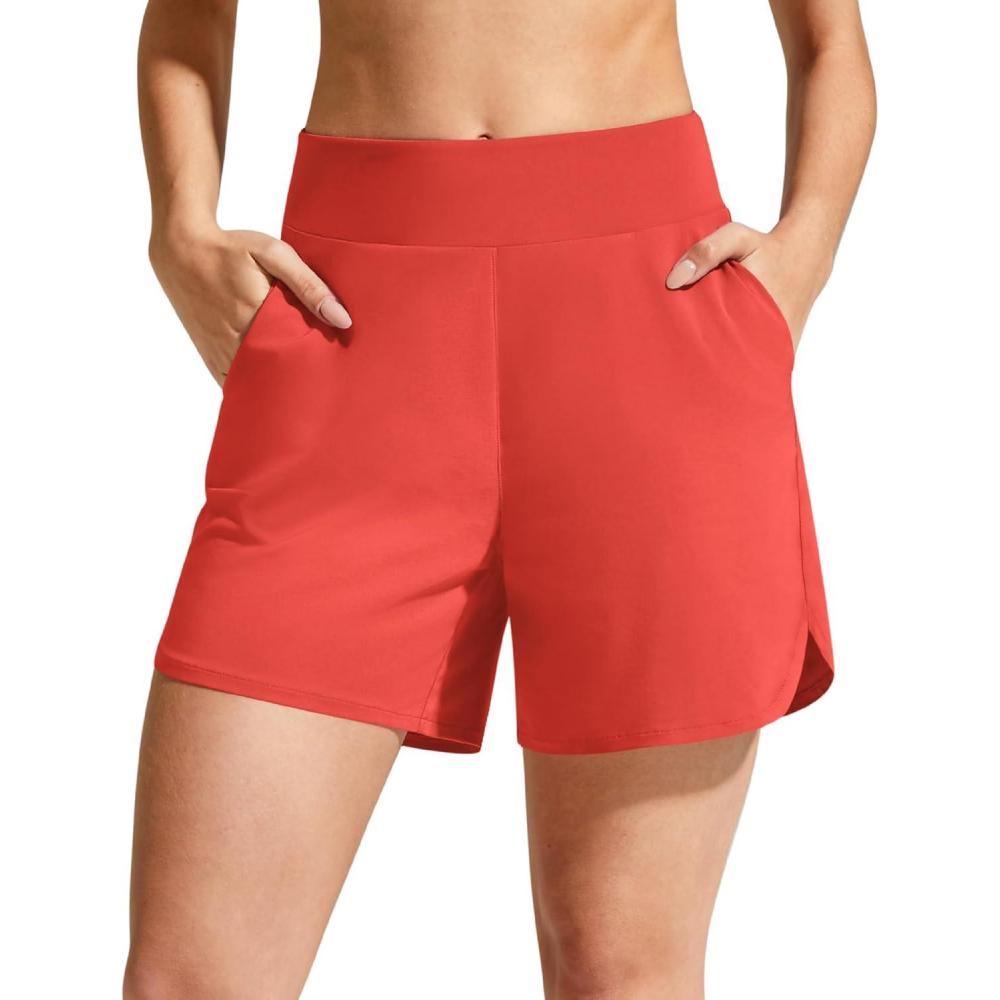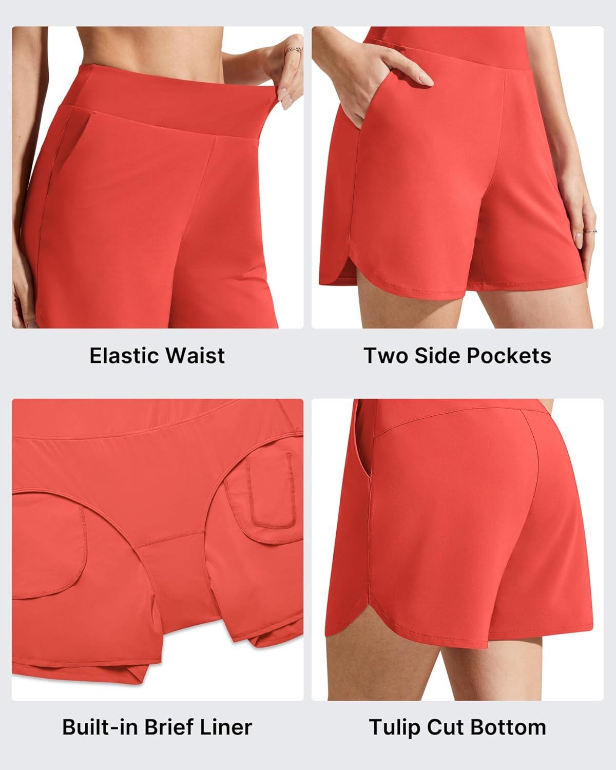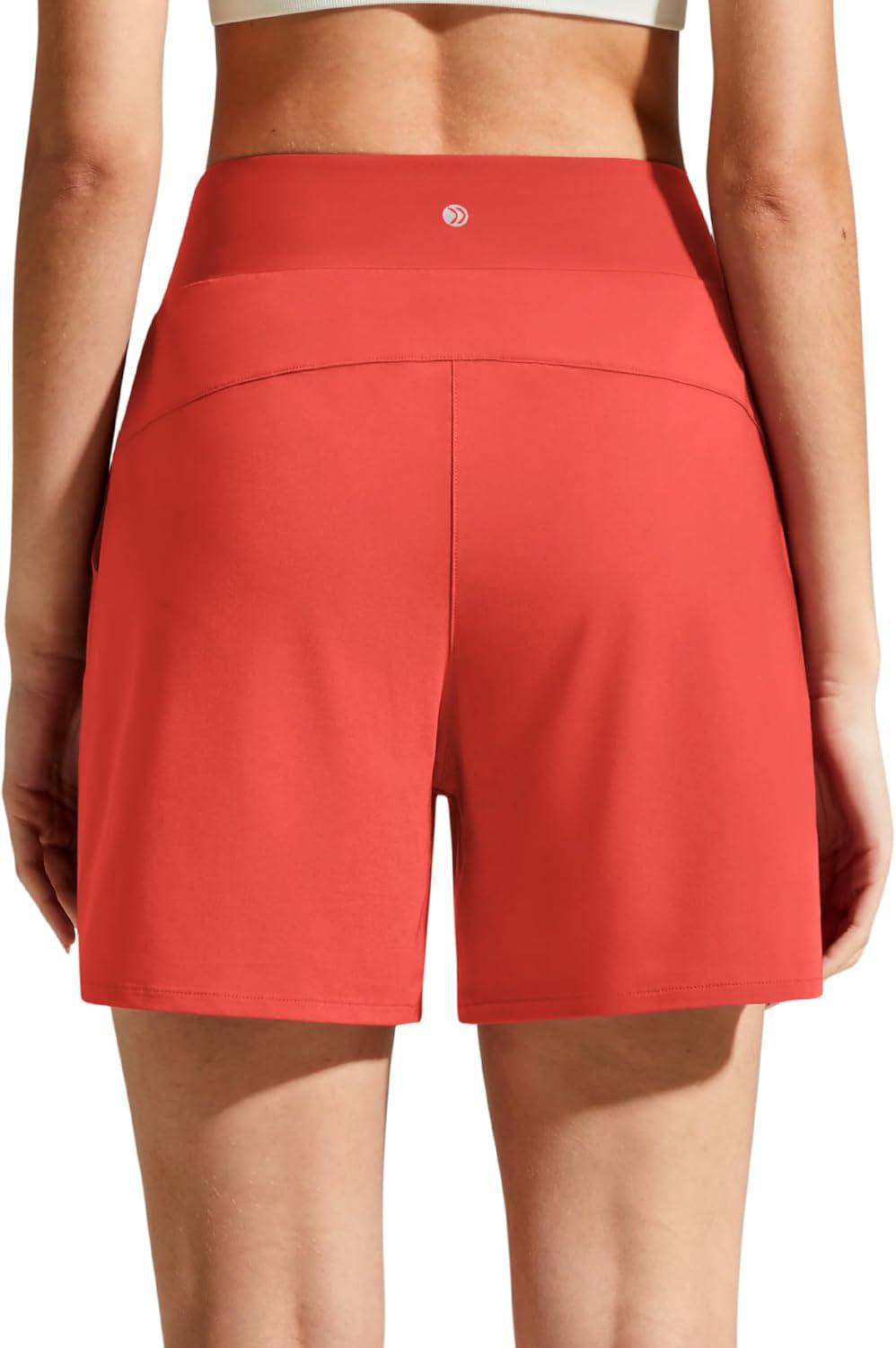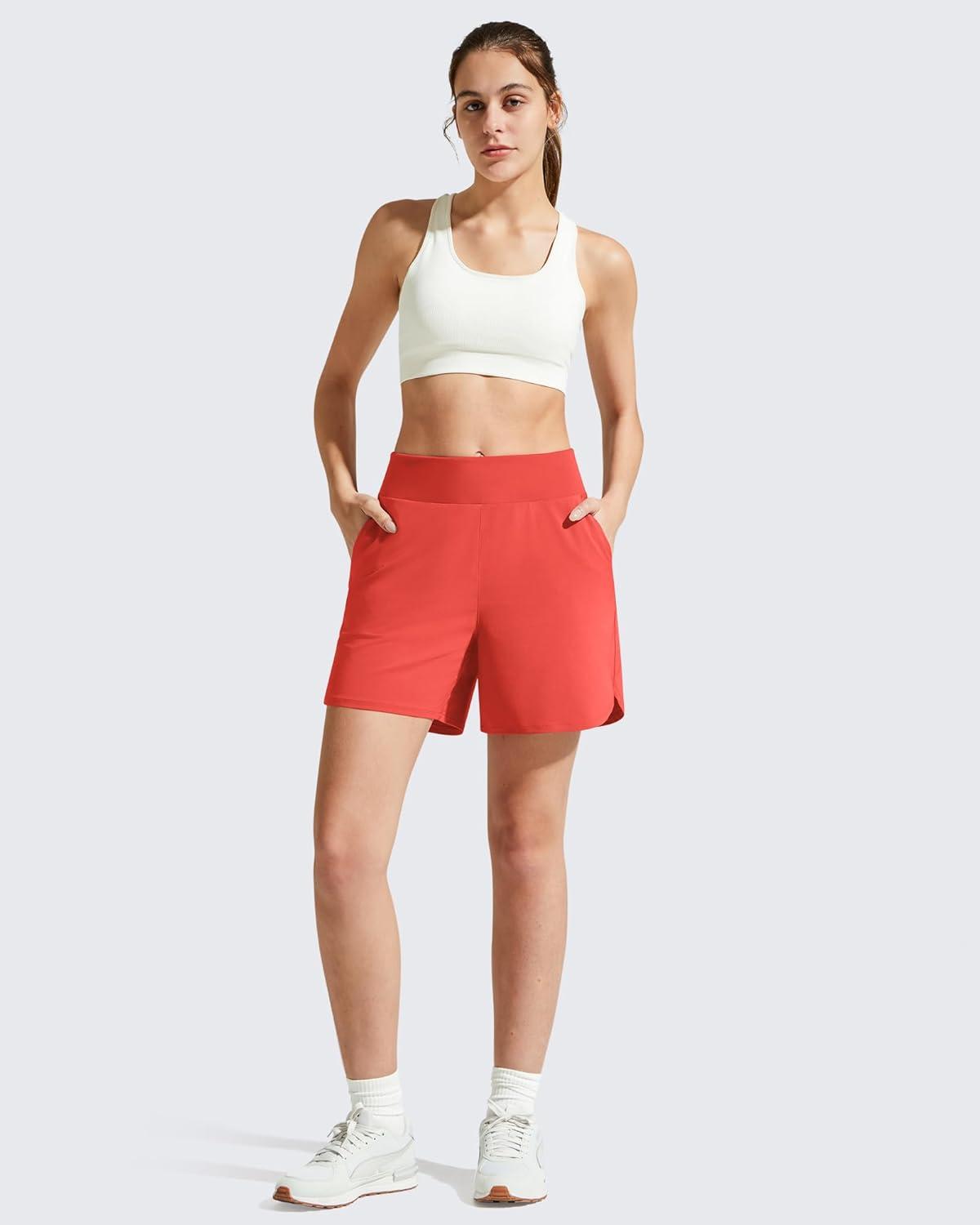 G4Free Chillwhisp Athletic Shorts for Women 4″ – High Waist Lightweight Casual Running Shorts Built-in Liner with Pockets(Rust Orange-1)
