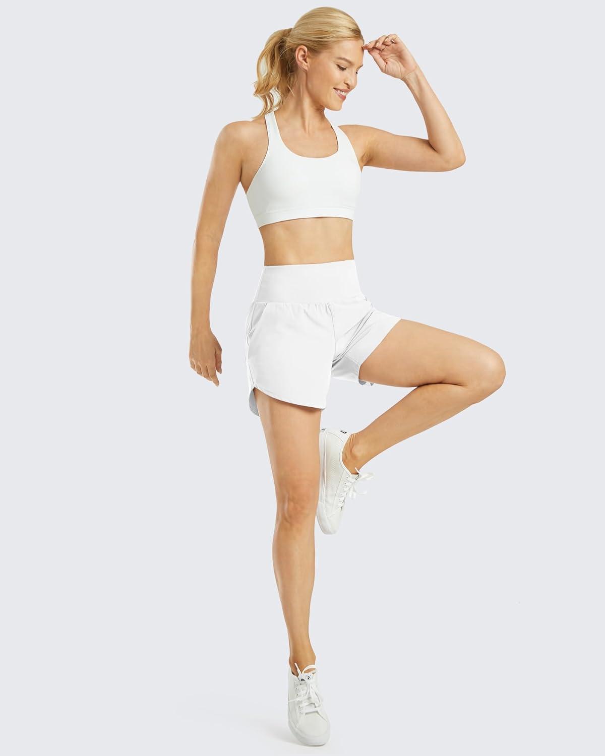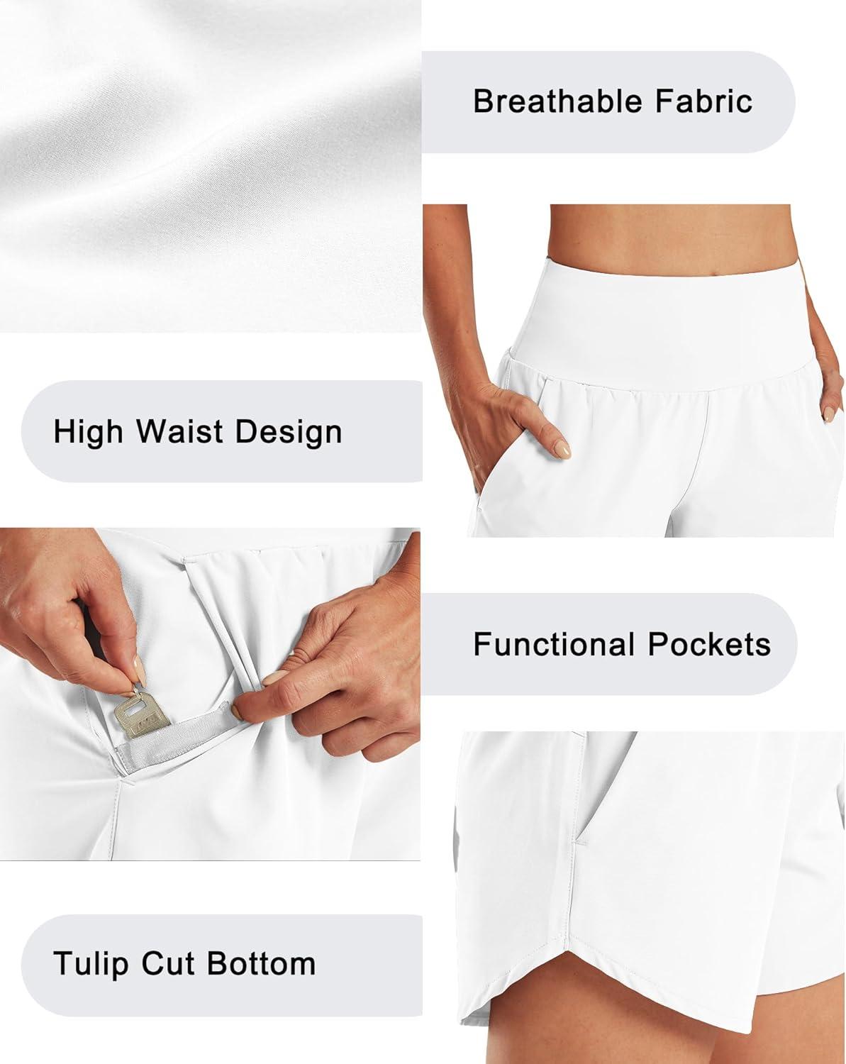G4Free Chillwhisp Athletic Shorts for Women 4″ – High Waist Lightweight Casual Running Shorts Built-in Liner with Pockets(White)