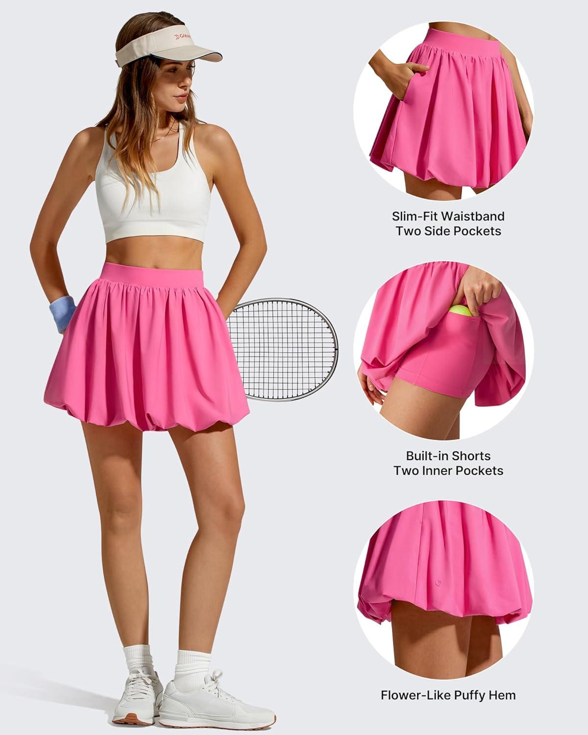 imageG4Free Chillwhisp Bubble Tennis Skirts for Women  14 Mini Athletic Ruffled Hem Casual Skorts Inner Shorts with 4 PocketsRose Pink