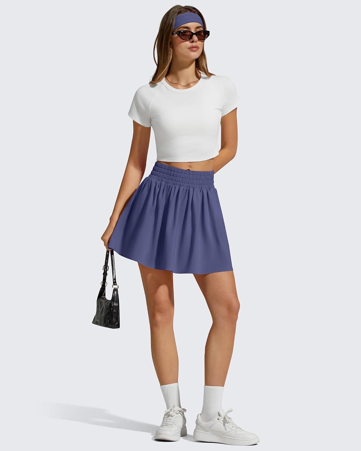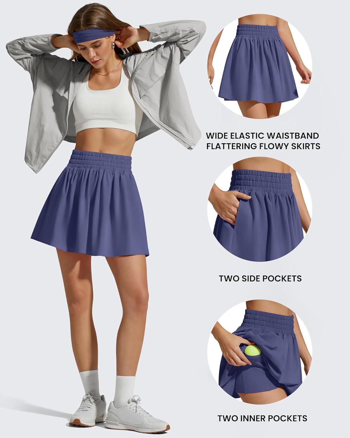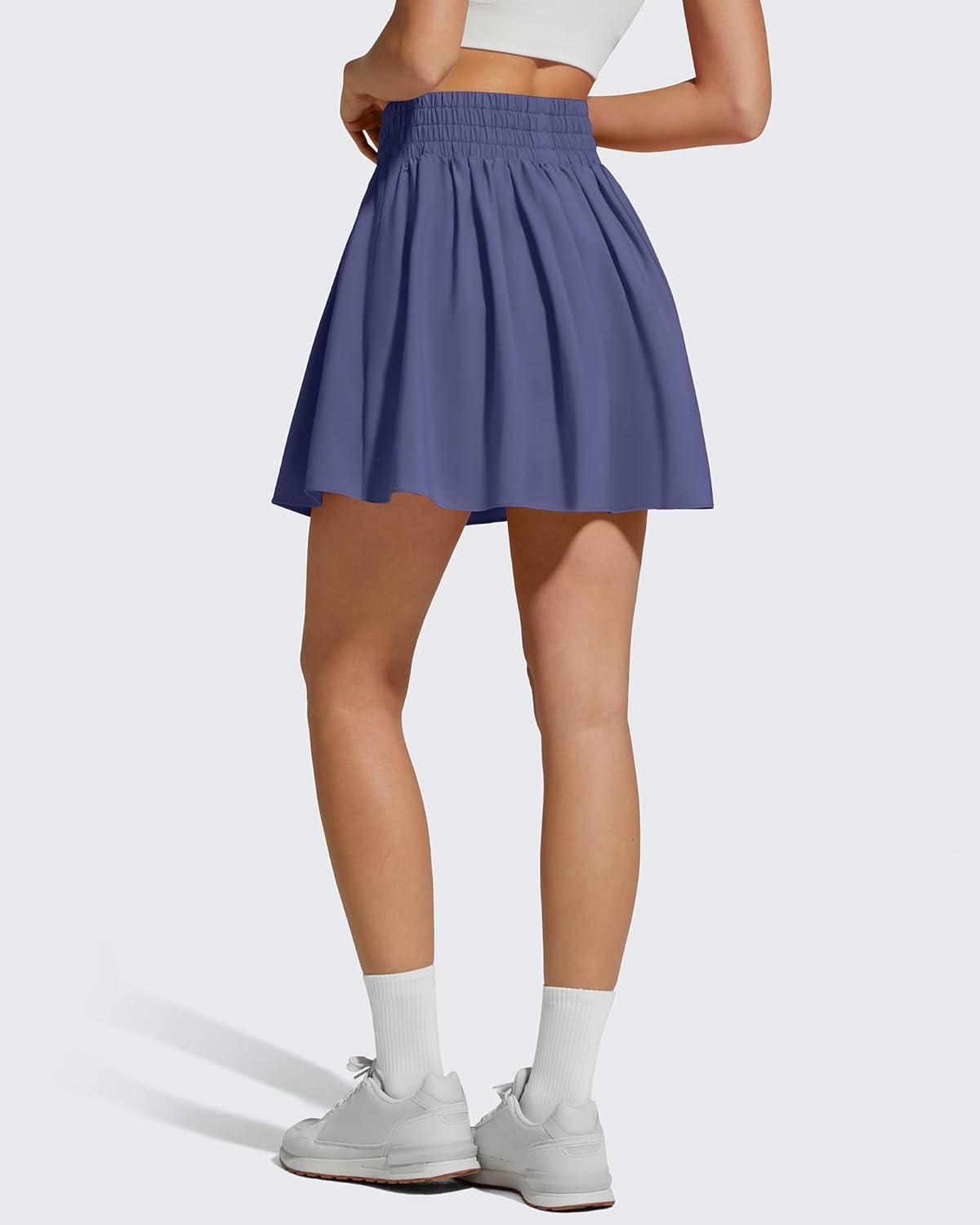G4Free Chillwhisp High Waisted Tennis Skirts for Women – 15″ Flowy Golf Skort Athletic Inner Shorts with 4 Pockets(Dusky Purple)