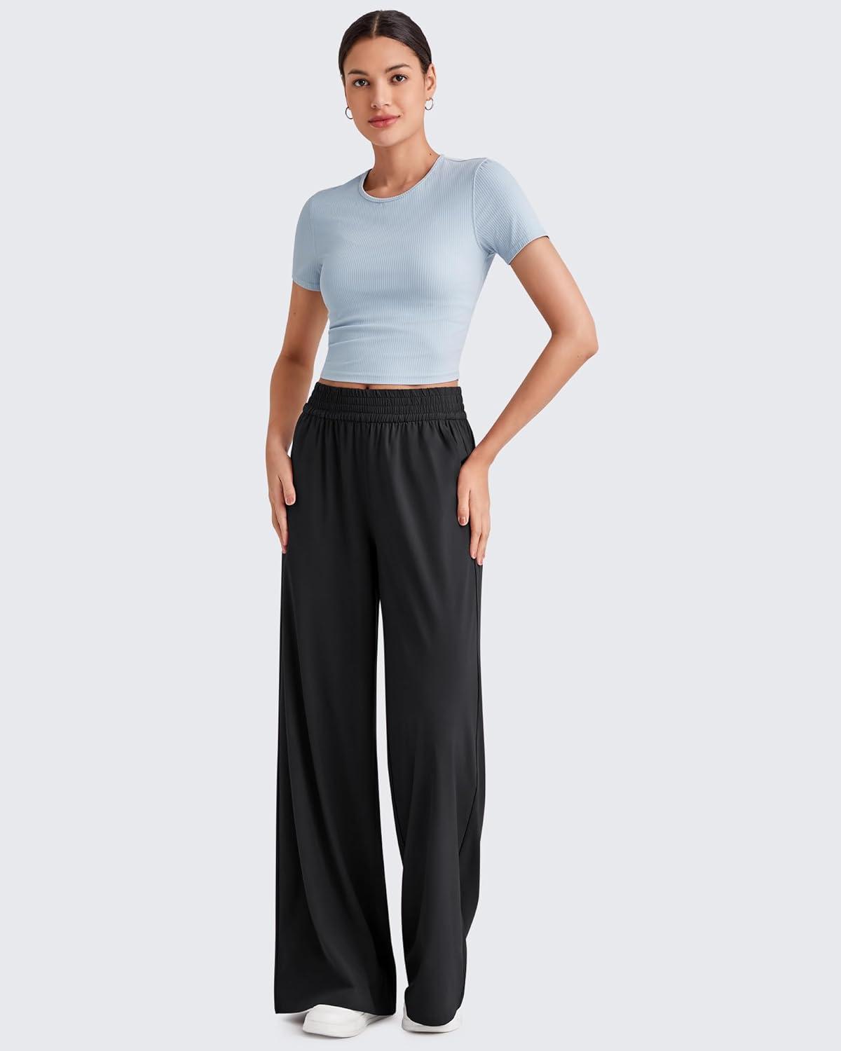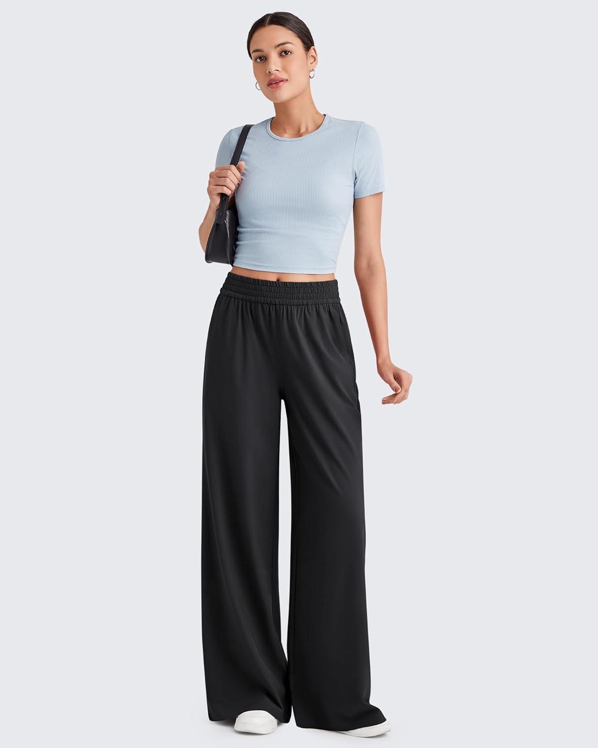 G4Free Chillwhisp Lightweight Flowy Wide Leg Pants Women Elastic Waist Drapey Casual Pants with Pockets(Black)