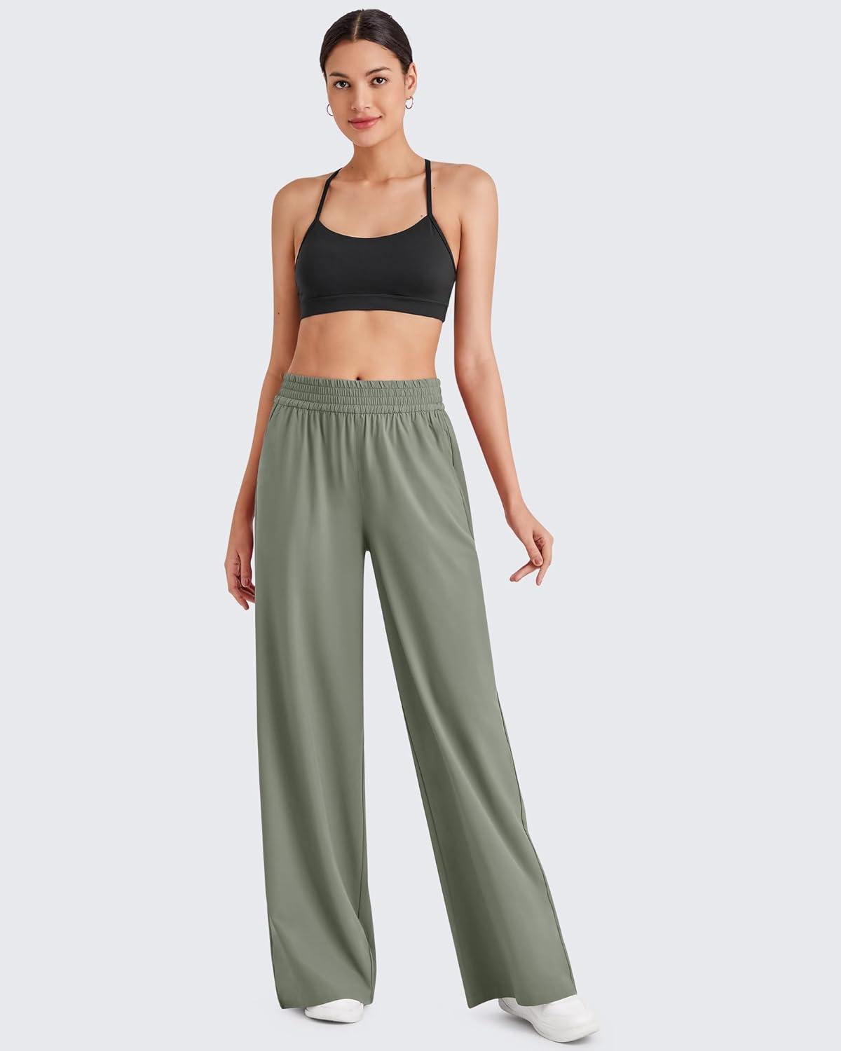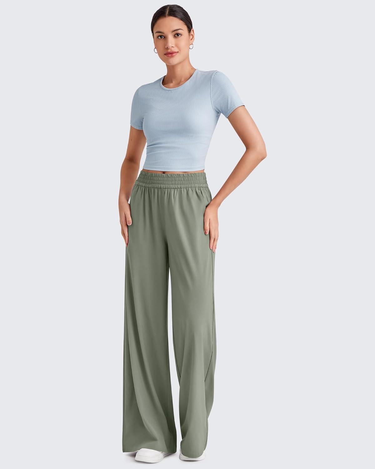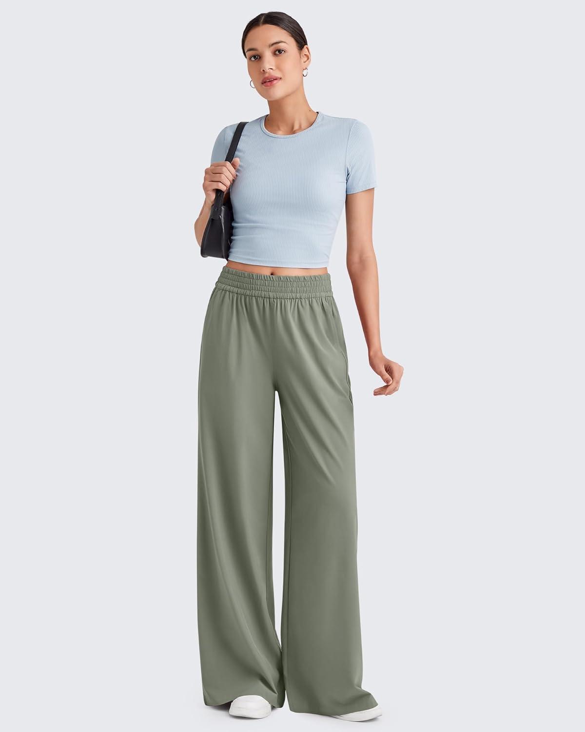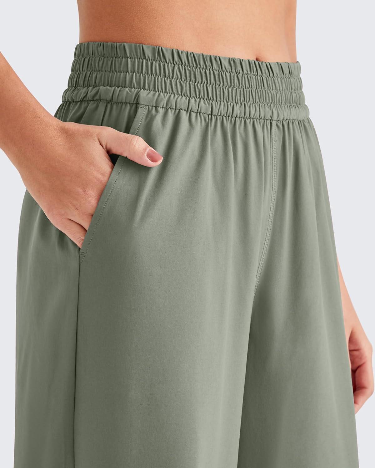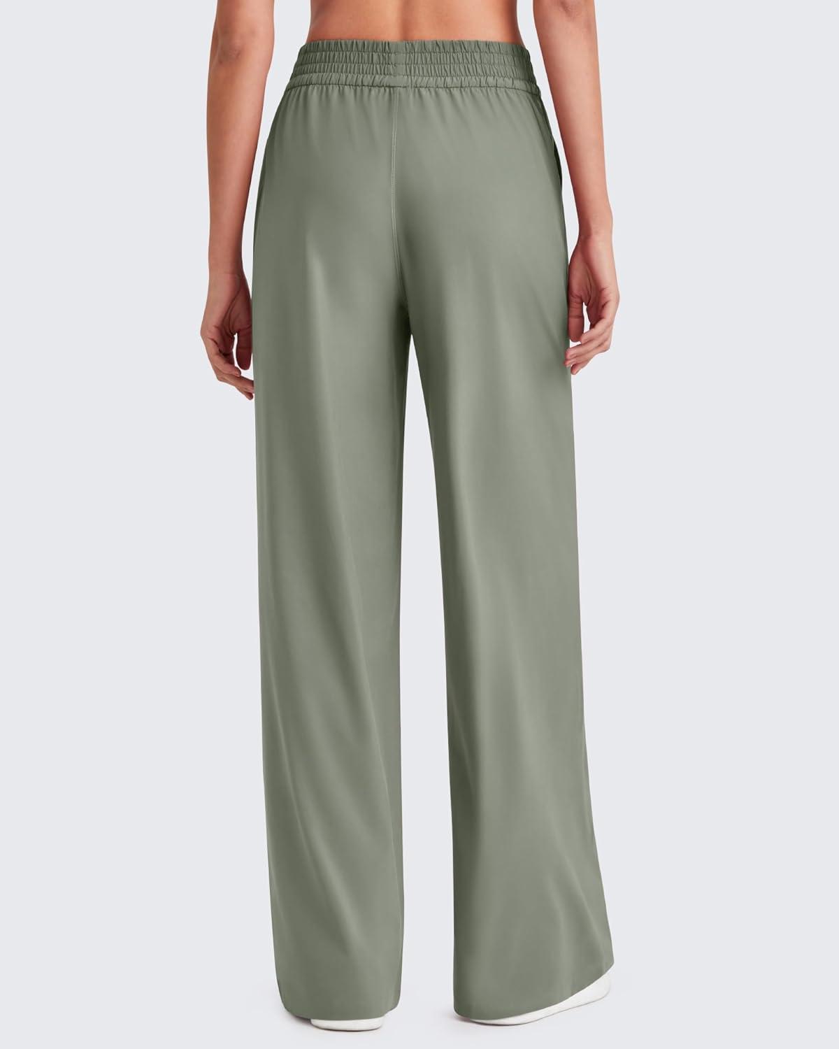 G4Free Chillwhisp Lightweight Flowy Wide Leg Pants Women Elastic Waist Drapey Casual Pants with Pockets(Gray Olive)